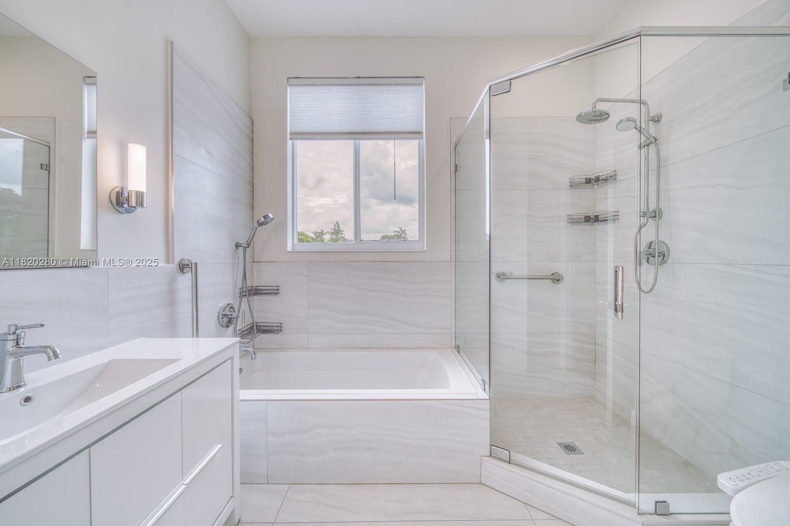 Modern custom-built 4-bed, 3-bath corner-lot home in the tranquil Cherry Grove neighborhood. Spacious layout with 2 beds/1 bath downstairs, 2 beds/2 baths upstairs, and dedicated office nook. Enjoy a remodeled kitchen with quartz countertops, induction cooktop, and stainless appliances, plus marble/wood floors, a fireplace, and double-height ceilings. Features a new roof (2021), impact windows, and parking for 6 cars. Relax on the lanai-covered patio, upstairs balcony, or private backyard with room for a pool (existing exterior-access bath). Beautifully landscaped lot. Minutes from Dadeland Mall, top schools, hospitals and highways. 3D/virtual tour available—schedule a showing today!