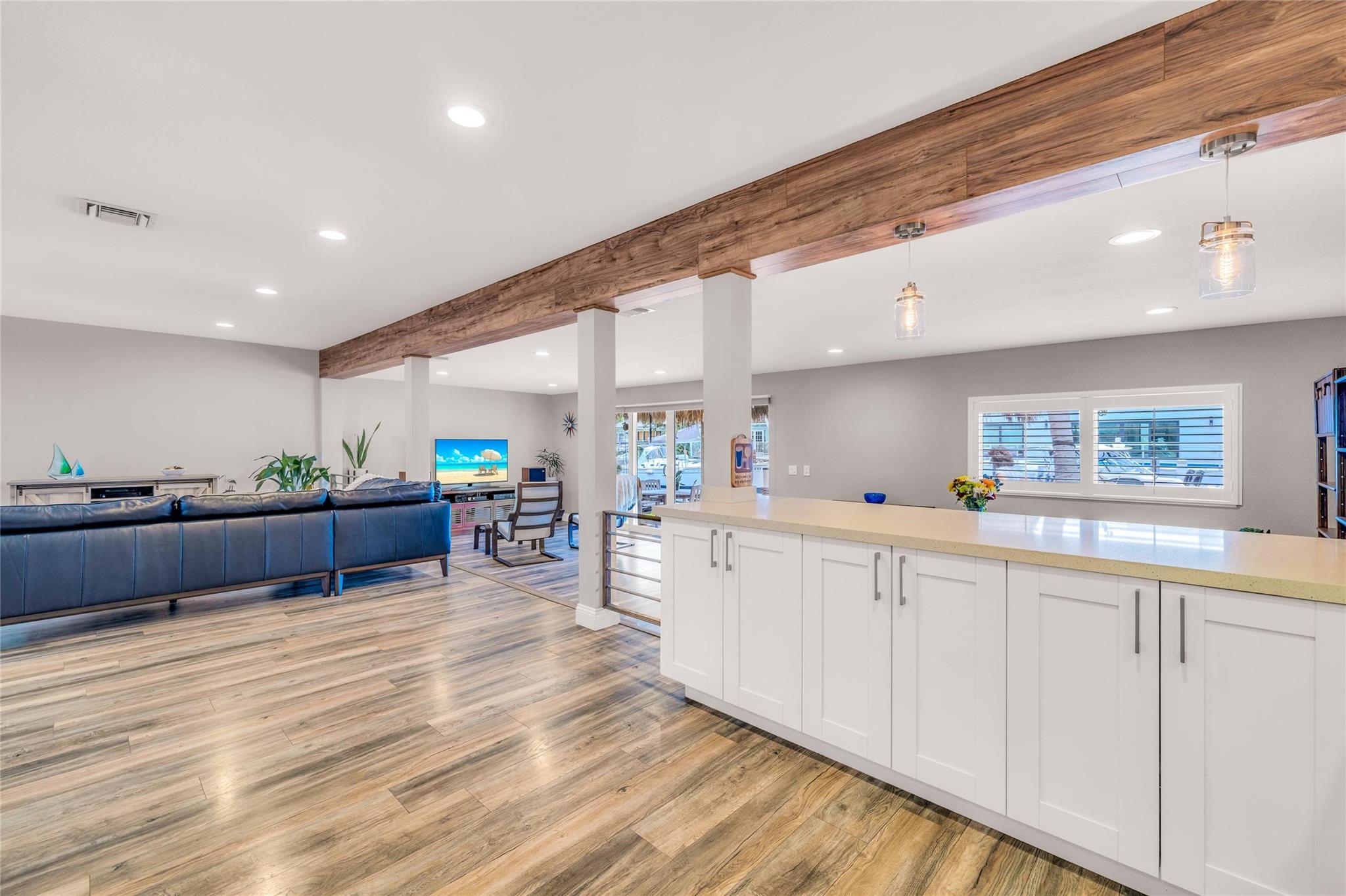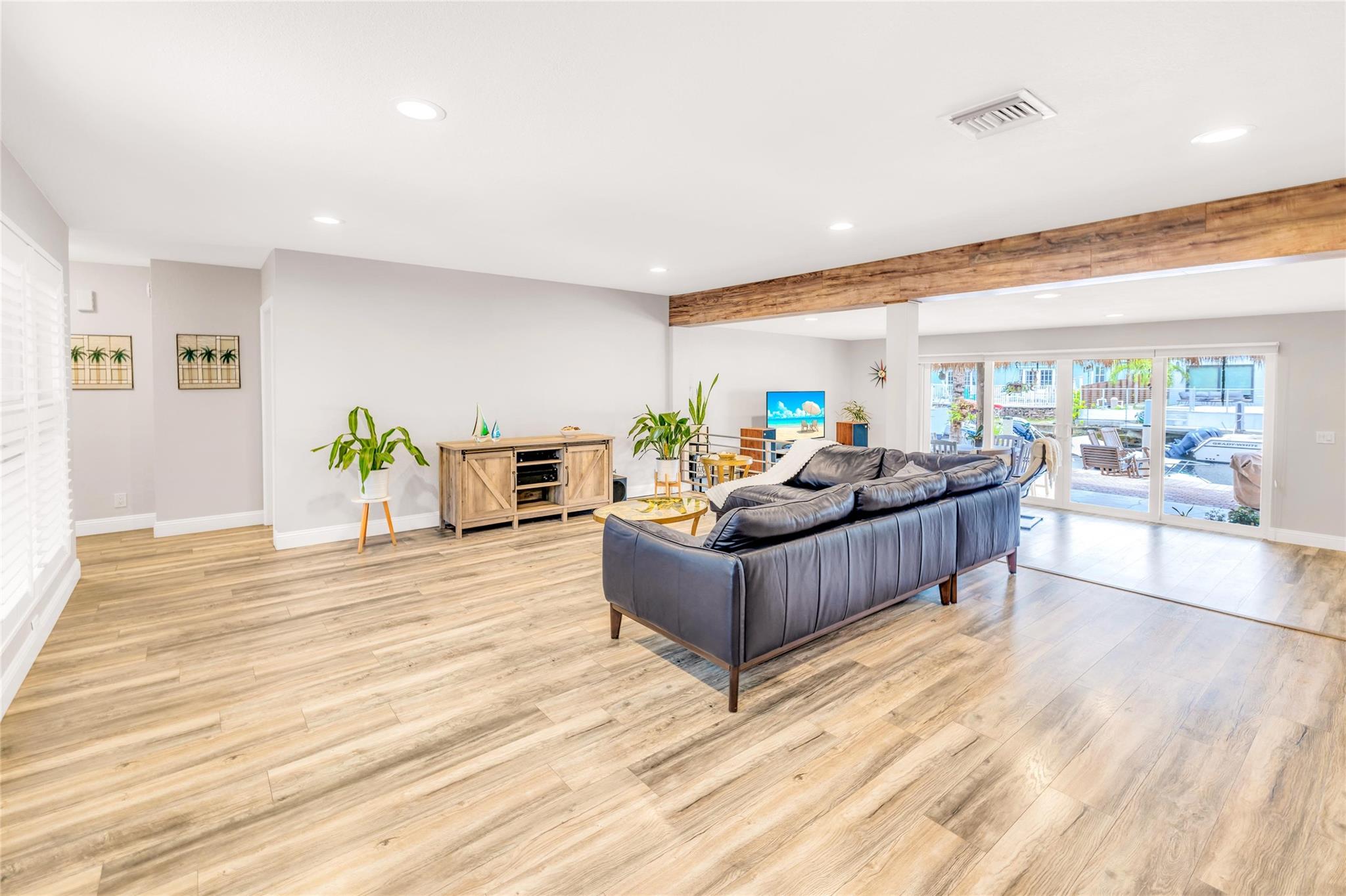 Beautifully remodeled mid-century home with 65 feet of unrestricted deepwater frontage—no fixed bridges to the ocean. Features a spacious open floor plan, gourmet kitchen, and luxurious primary suite with dual vanities. Upgrades include impact-resistant windows and doors, a new metal roof, premium flooring, and designer finishes throughout the property. Enjoy waterfront living with a tiki hut and private dock, just minutes to Las Olas, downtown, beaches, FLL Airport, and the hospital. Boater’s dream in an excellent Fort Lauderdale location! No HOA. MAJOR UPGRADES: Metal Roof 2021, Flat Roof 2017, HVAC 2016, Tiki Hut 2019, Fence 2019, All Impact Windows and Doors 2017, Concrete Driveway and Paver Front Patio 2019, Fence 2020, Natural Gas 2017.