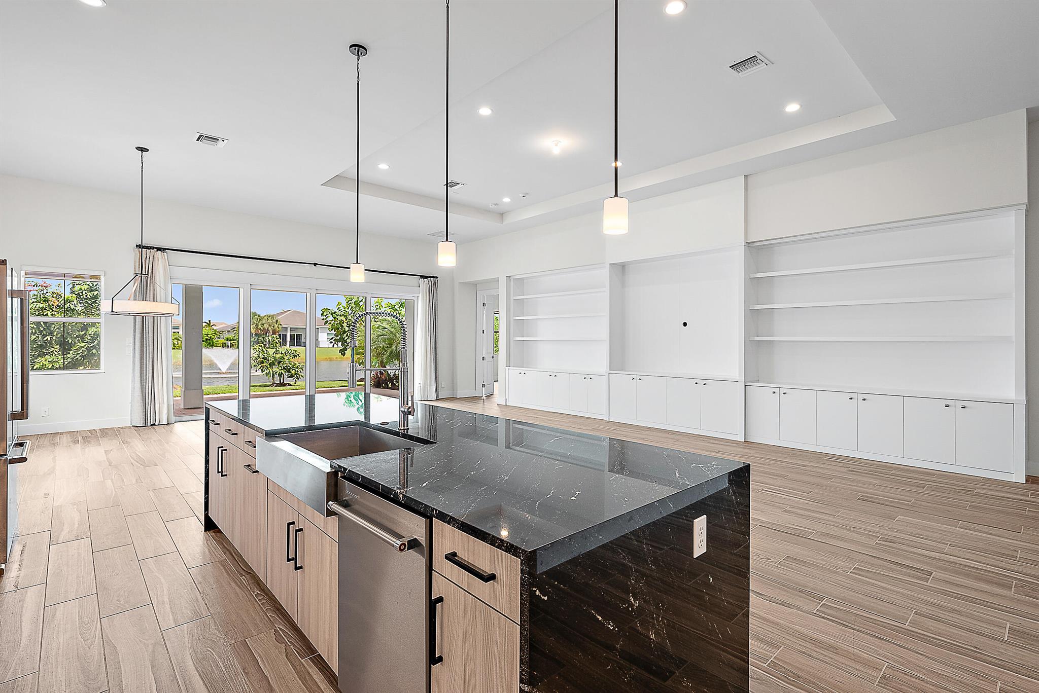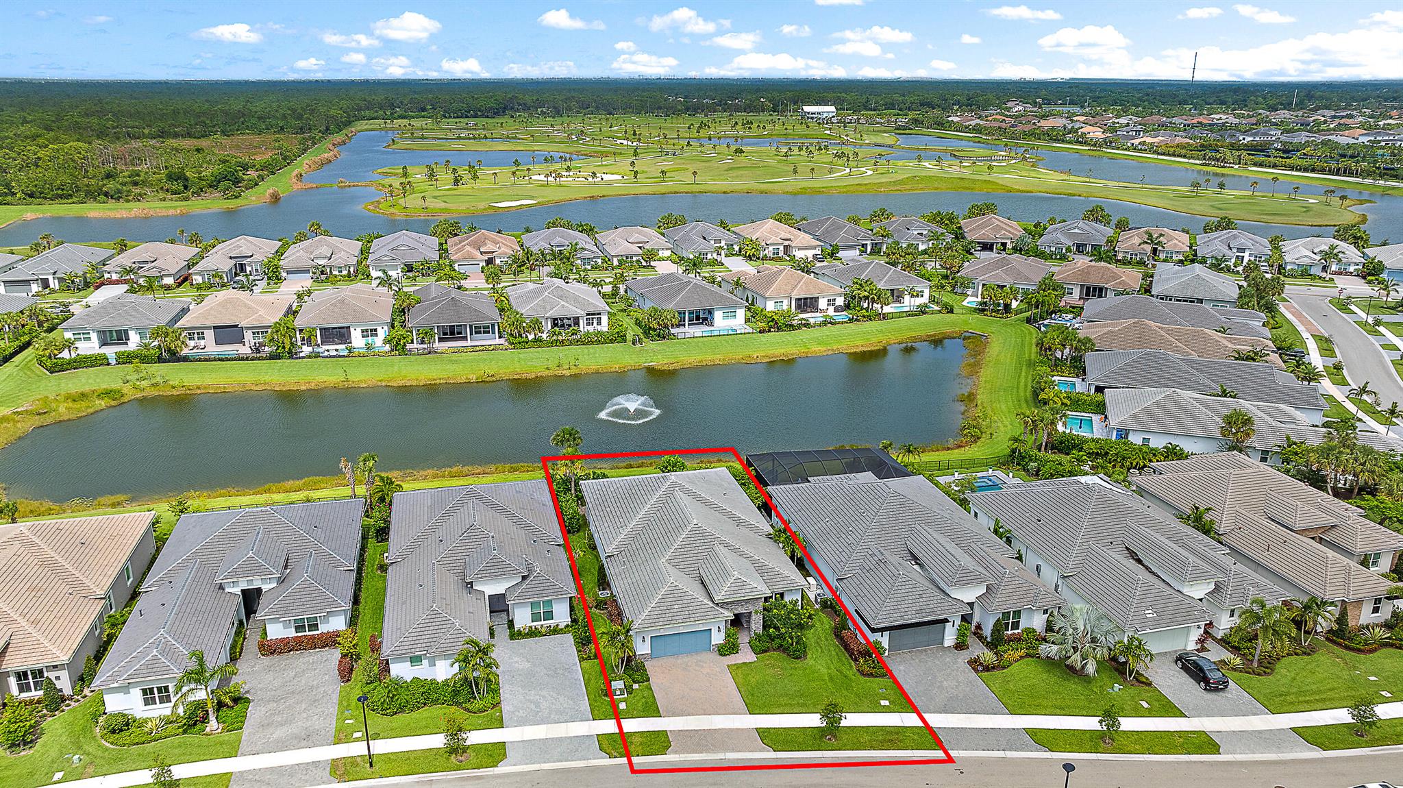 Located in the Tradewinds section of Regency at Avenir, this single-story Isabella model with contemporary elevation blends refined finishes with serene lakefront living. Enjoy panoramic water views from the great room, dining area, primary suite, and expanded covered lanai. Inside, 12' ceilings enhance the open layout featuring a gourmet kitchen with walk-in pantry, a spacious primary suite with dual closets and spa-inspired bath, and a versatile flex room perfect for a den, office, or hobby space. Live the lifestyle in this 55+ gated Palm Beach Gardens community offering resort-style amenities and a vibrant social scene.