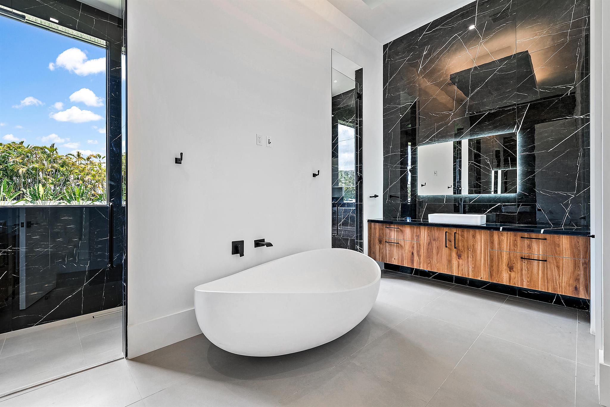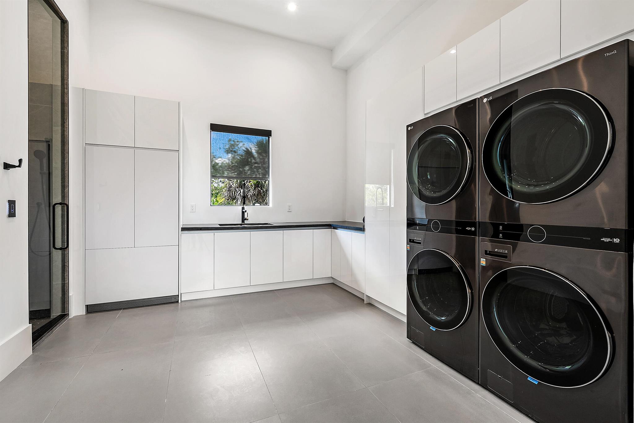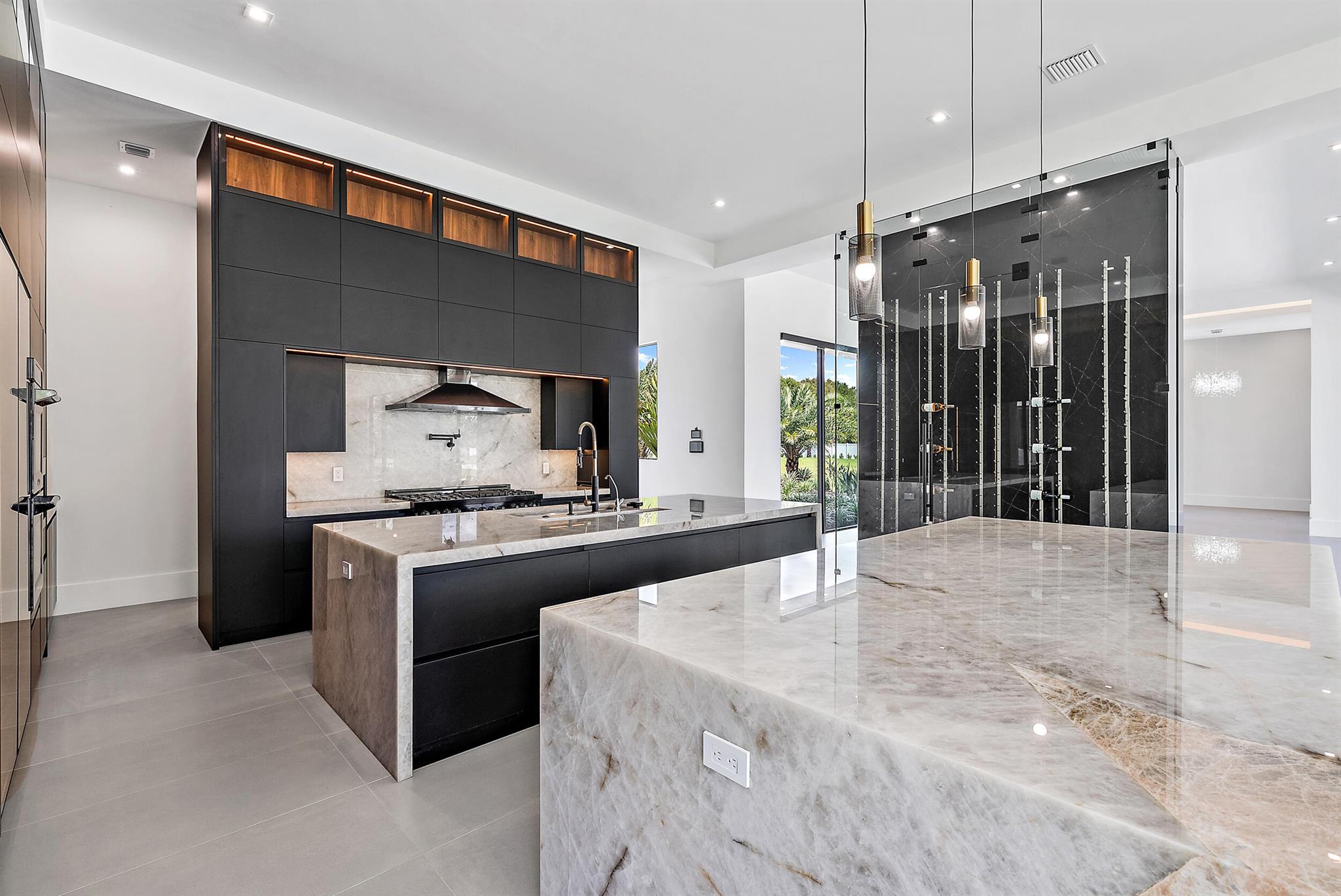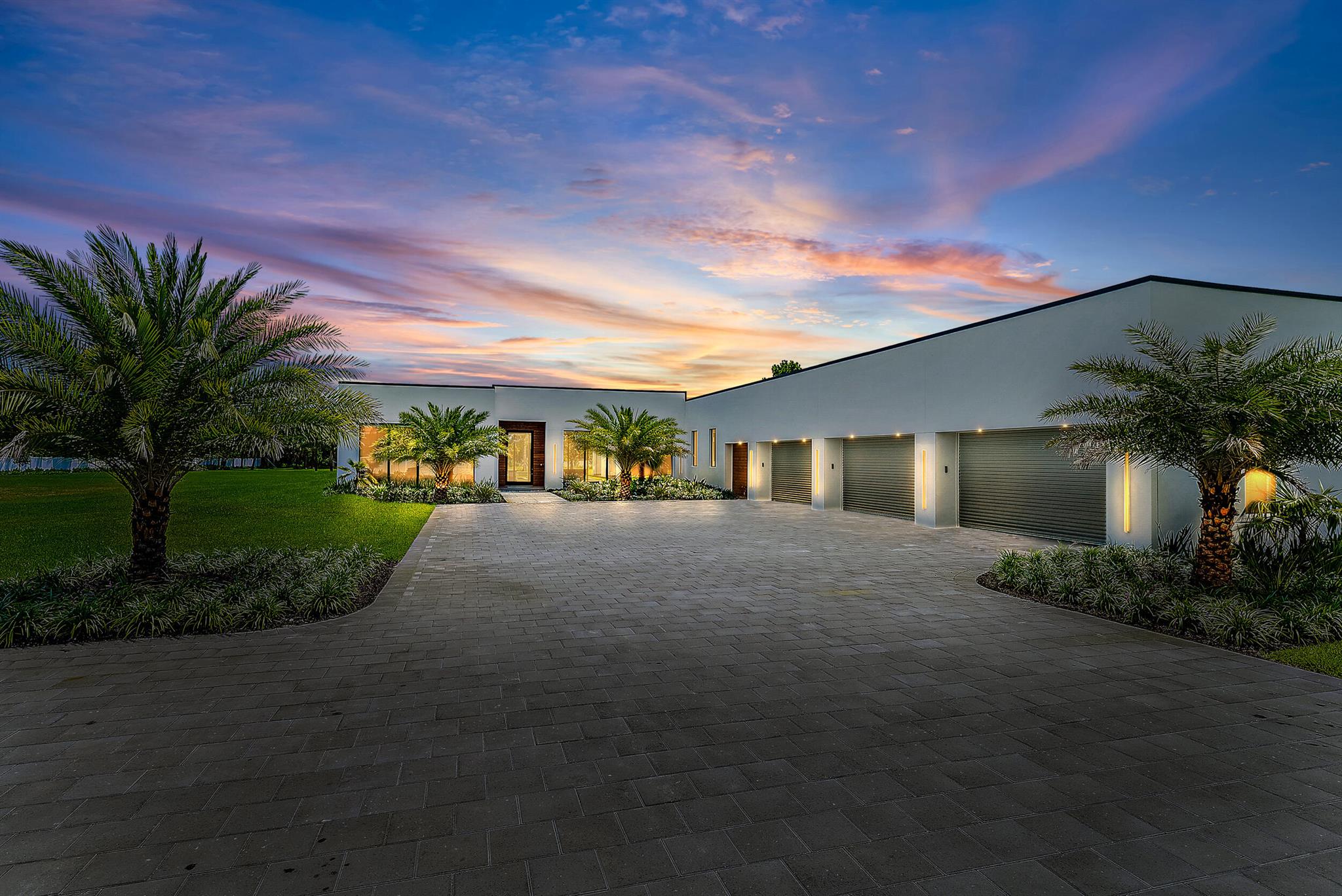 Built in 2022 on over 4 acres, this exceptional property is a dream for car collectors and boaters alike, offering 8 garages (with room for lifts) and direct Intracoastal access. Sleek lines and floor-to-ceiling windows showcase the estate's expansive grounds and resort-style pool. The main house features, eye catching design, a media room/theater, office/exercise room, and other amenities making it perfect for hosting or working from home. The detached guest house offers a full bath, kitchen, and laundry. The vacant lot is potentially available for purchase upon inquiry. The luxurious owner's retreat includes wood floors, a cozy fireplace, a marble bath with dual sinks and water closets, and a walk-in boutique-style closet. The state-of-the-art kitchen is equipped with dual wall ovens, a