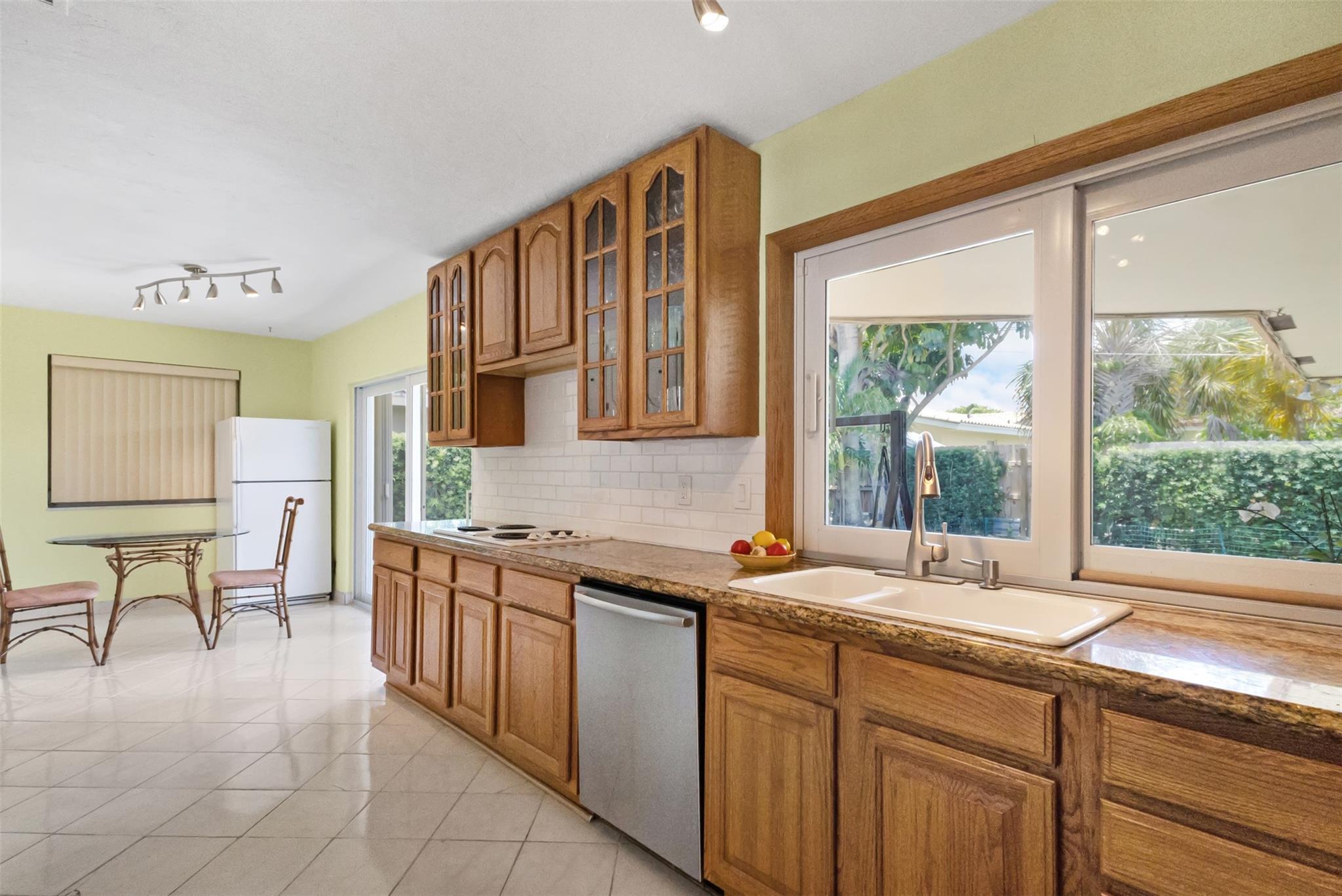 Located in the coveted Imperial Point neighborhood, this classic 3-bedroom, 2-bathroom home offers timeless Florida living. With 2,094 sqft of living space, the home offers a huge family room overlooking the patio and garden. The kitchen has wood cabinetry (can be painted), granite countertops, the refrigerator and oven are two years old. Impact windows & doors (except 4 windows). Accordion shutters throughout. Concrete tile roof, electric panel replaced in 2020. Two car garage, generator hook up and a new Water Heater. Terrazzo flooring underneath carpeting in bedrooms. Easy access to the beach (under 3 miles), major highways and shopping. A perfect fit for buyers seeking a classic home with a solid foundation to put their personal touch on and create their dream space.