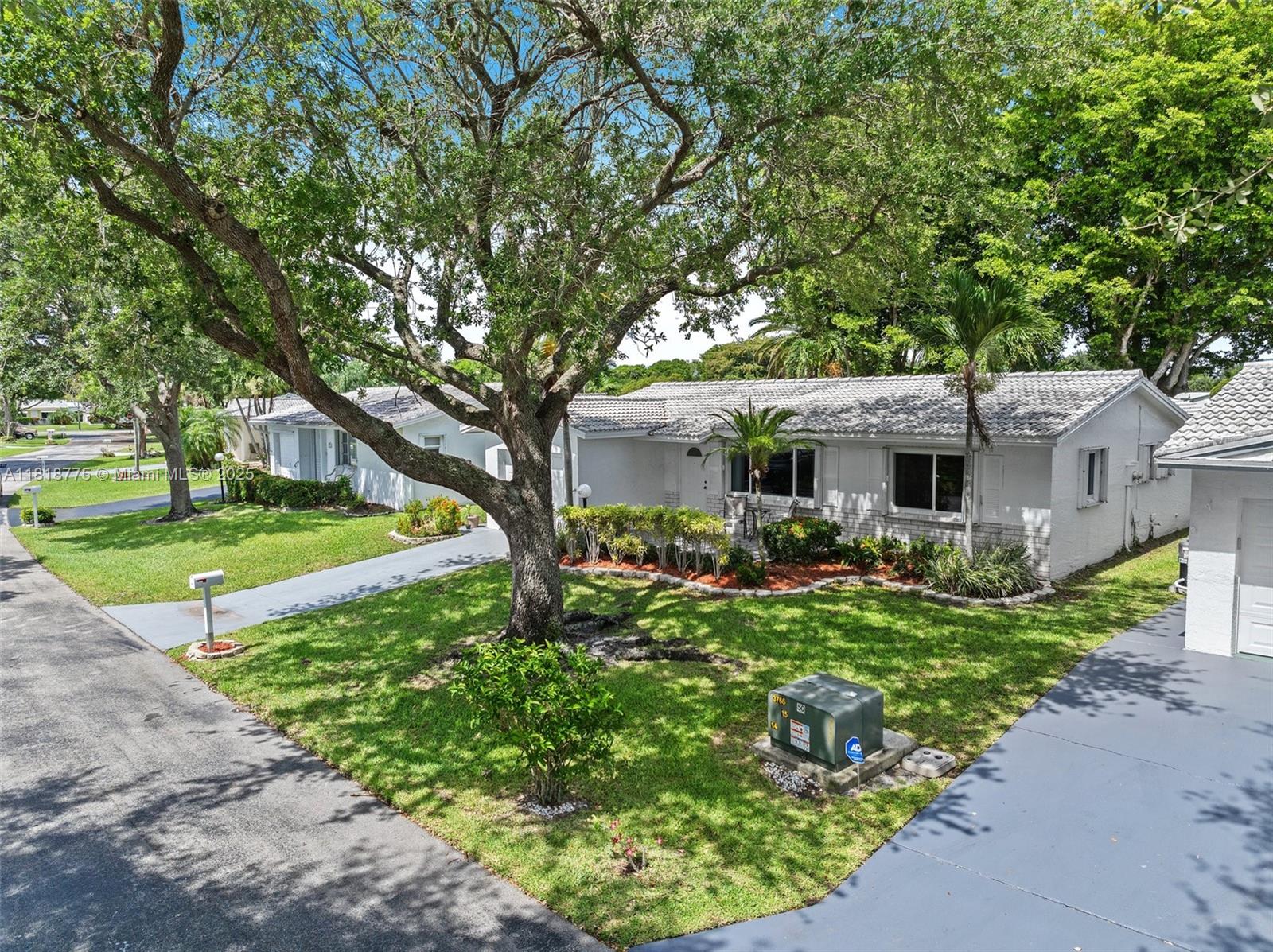 Charming 2 bedroom, 2 bath home in the sought after Lauderdale West community of Plantation, featuring a rare & stunning lake view that sets it apart from the rest. Inside, enjoy hardwood floors in the main living area, freshly painted interior, & a modern kitchen w/granite countertops & ample cabinet space. Relax outdoors on a newly paved patio area, perfect for relaxing and taking in the tranquil lakefront setting. This home offers new impact windows, accordion shutters, roof replaced in 2017, A/C from 2019, 2021 Water Heater & a 1-car garage. Located in the vibrant 55+ community w/great amenities including 2 clubhouses, gym, pools, tennis courts & much more; HOA fees include Fiber Optic HDTV & Internet, lawn service, Repair/Replace Roof, & paint exterior home - this gem won't last!