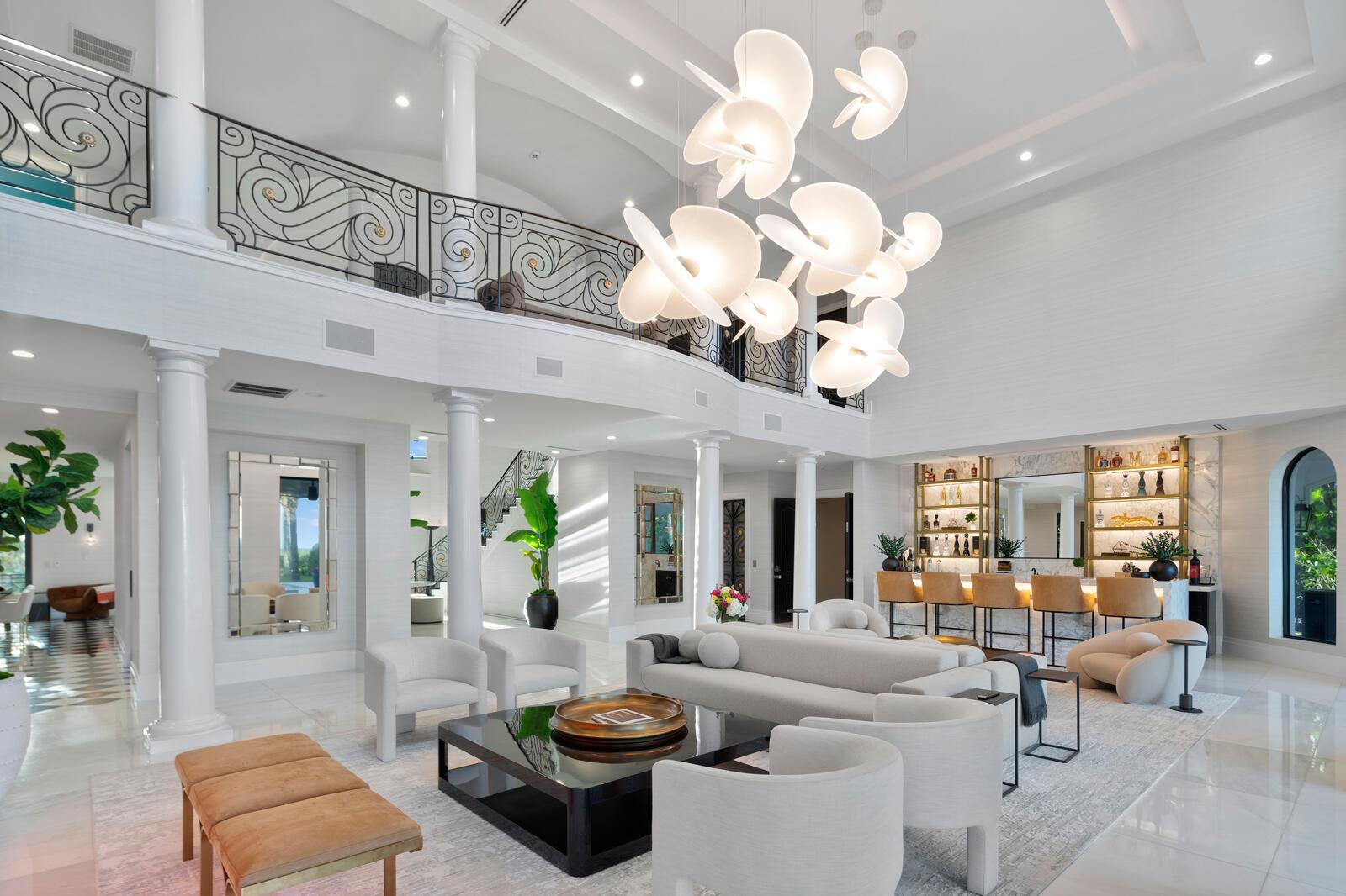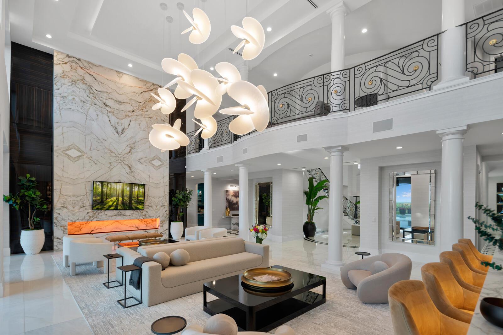 Discover luxury living at Via del Mar, an oceanfront estate in Sailfish Point. With 140' of direct ocean frontage, this home blends coastal charm with modern elegance. Spanning 14,000 sf, including 10,500 sf of refined interiors, the home features a circular driveway that leads to a grand entrance with double-height ceilings and a crystal chandelier. Inside, enjoy a vapor fireplace, a 120-foot LED installation, and floor-to-ceiling windows with ocean views. Other features include a cocktail lounge with a bar, a gourmet kitchen with veined marble and dual islands, and a dining area with a fireplace. The primary suite offers a spa-like bathroom, a Himalayan salt room, and ocean views.