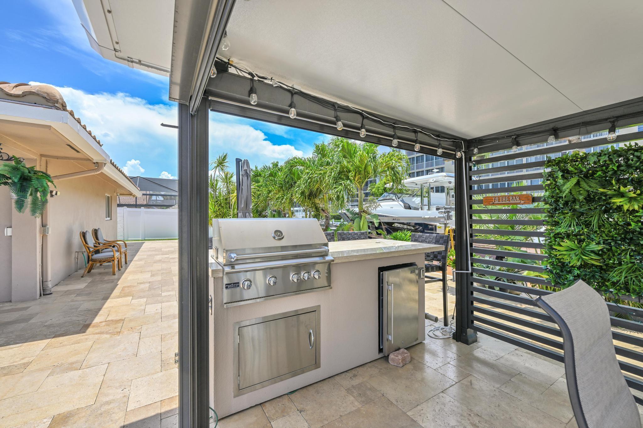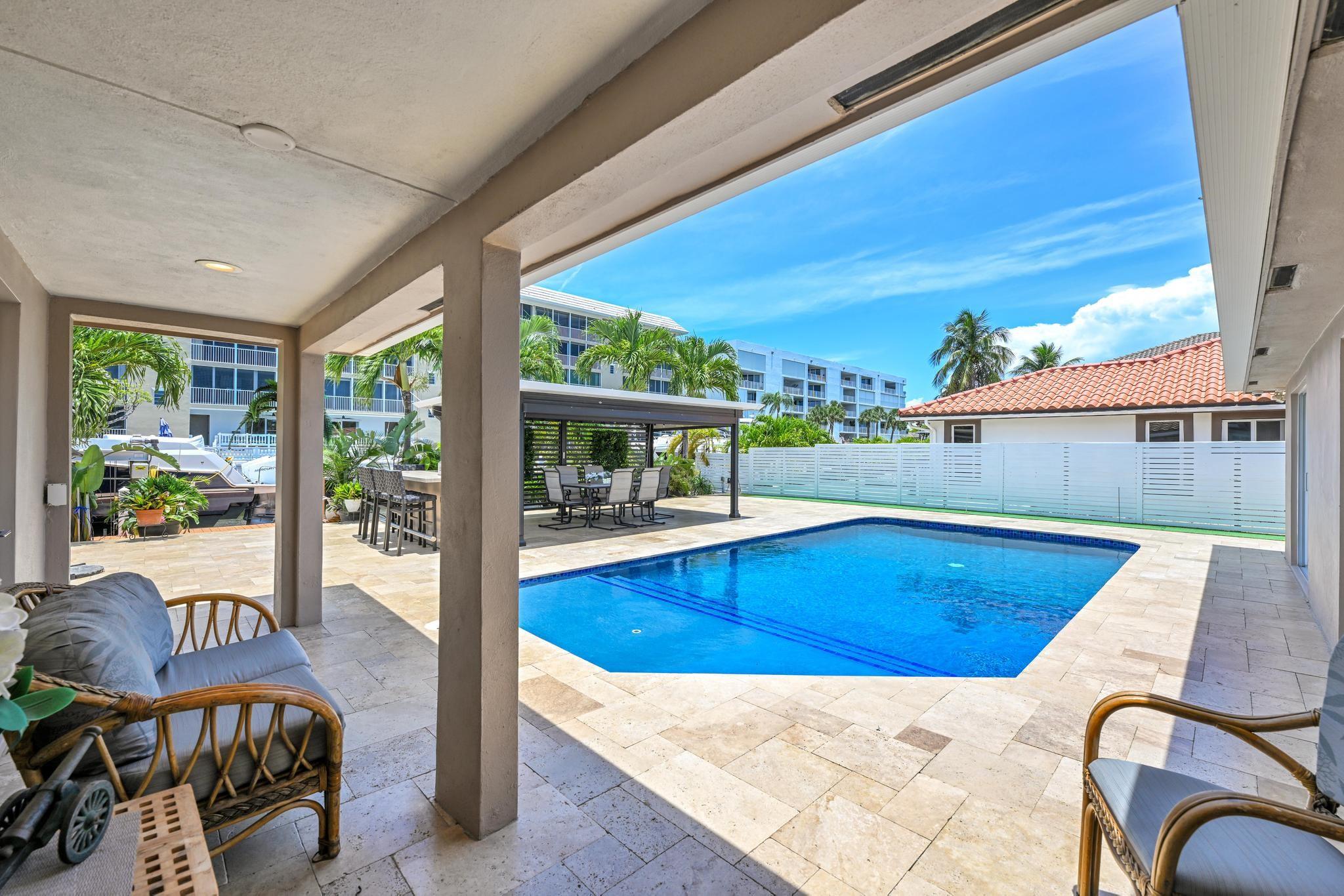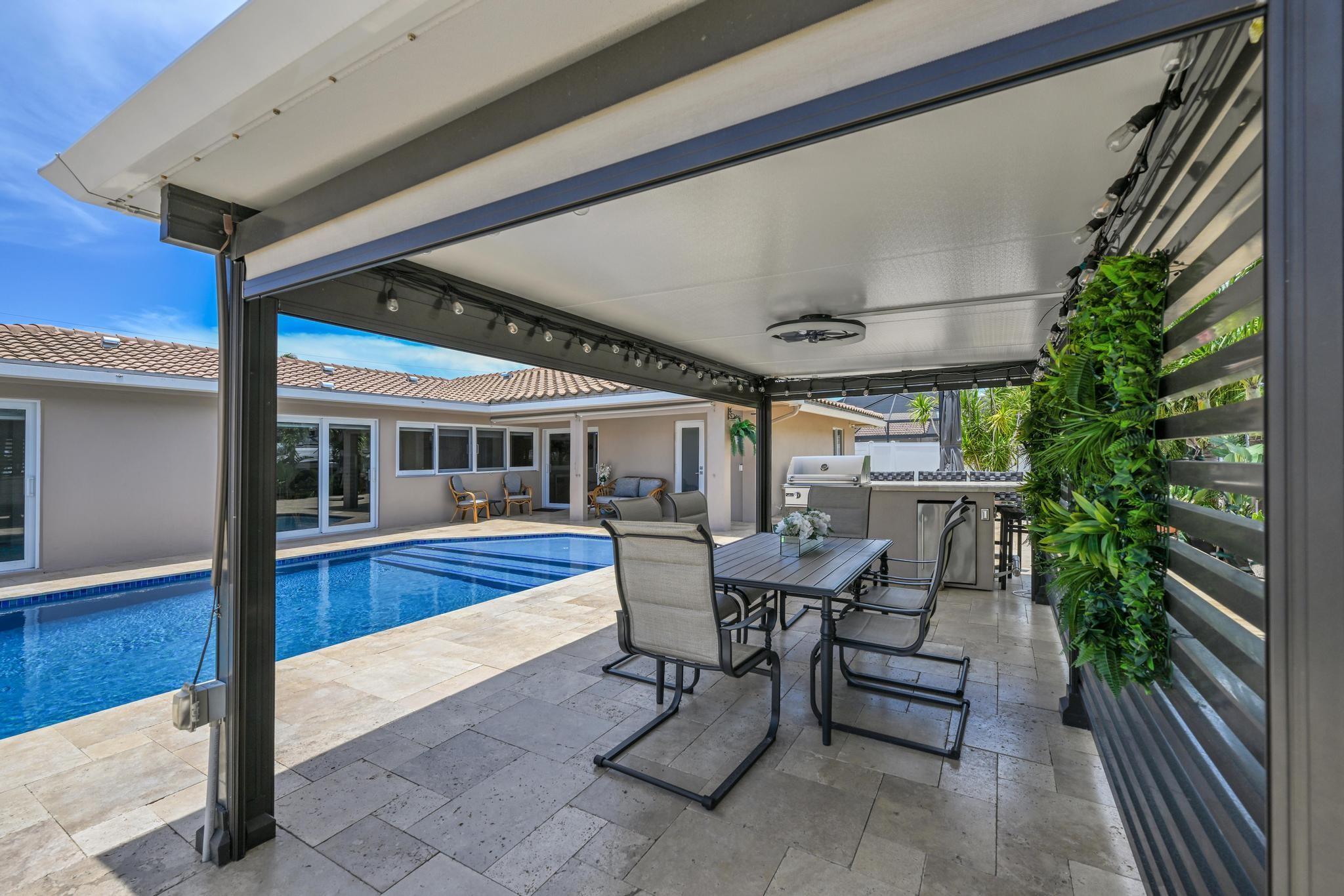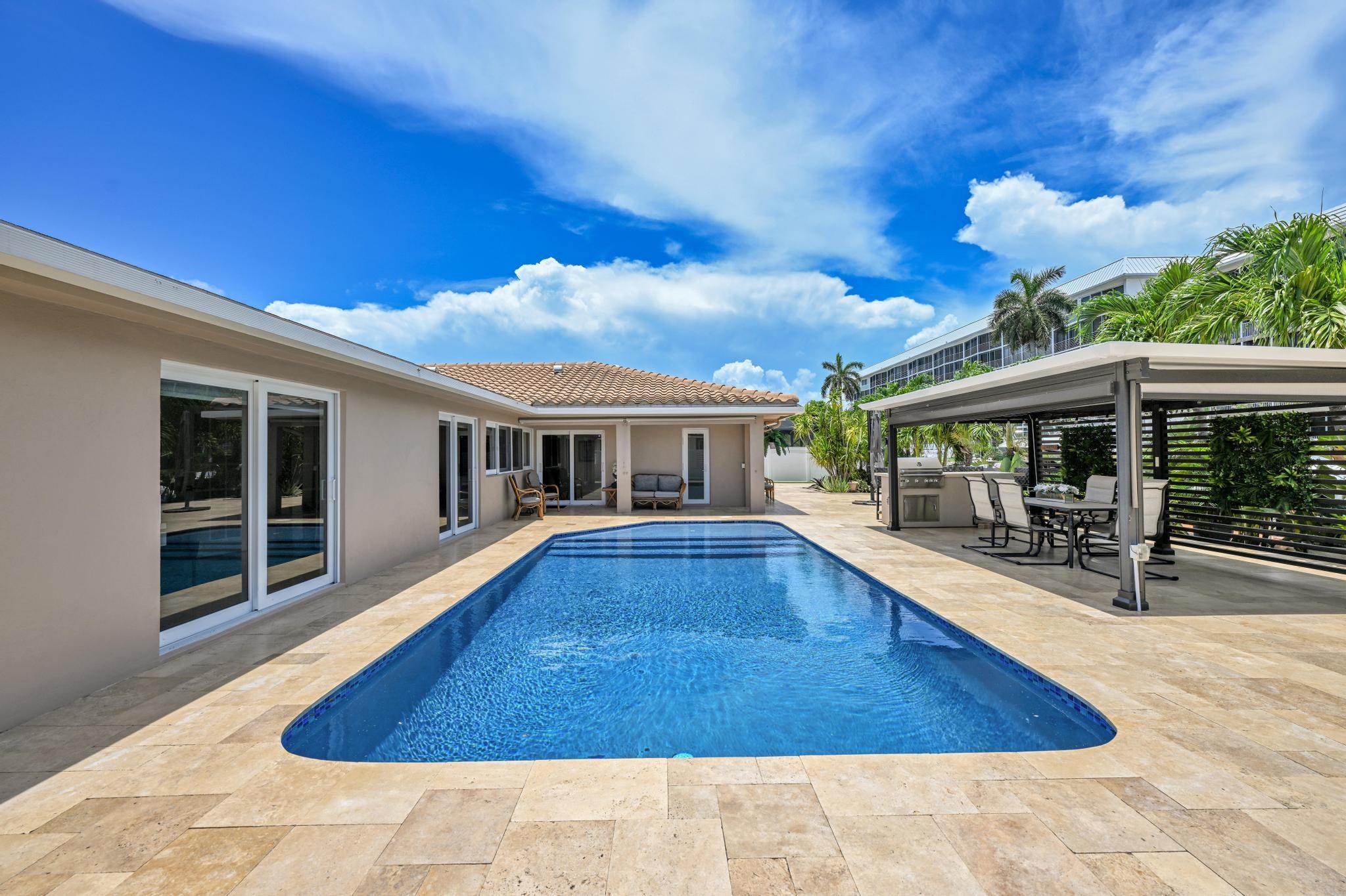 Beautifully updated 3-bedroom, 3-bath waterfront home in prestigious Coral Ridge Country Club. Just five houses from the Intracoastal, midway between two inlets, this 85’ ocean-access property with no fixed bridges is a boater’s dream. Features include private dock, newer seawall, new 24,000 lb boat lift, saltwater heated pool with Diamond Brite, hurricane-rated gazebo with electric shade, outdoor kitchen, and new pavers front & back. Inside is a bright open layout with split floor plan and marble floors. Chef’s kitchen with Quartz counters, European cabinets, stainless appliances, breakfast bar, and wine fridge. Impact windows/doors bring in natural light. New barrel tile roof (2022), AC (2024), & gutters. RELINED PIPES. 5 minutes to beach, dining, & shopping, luxury, location, lifestyle.
