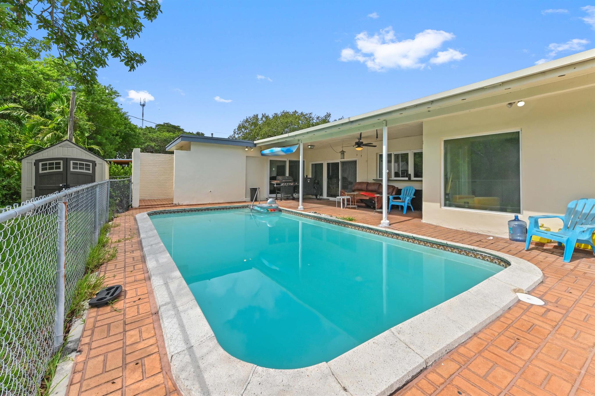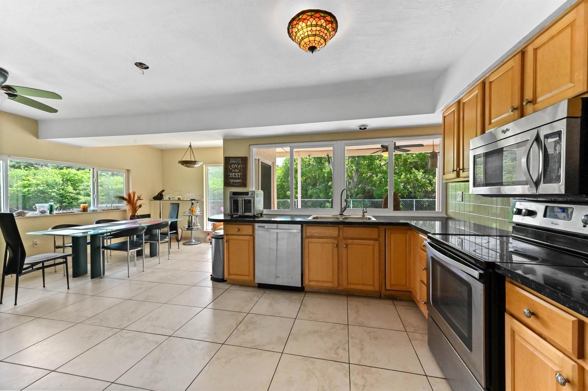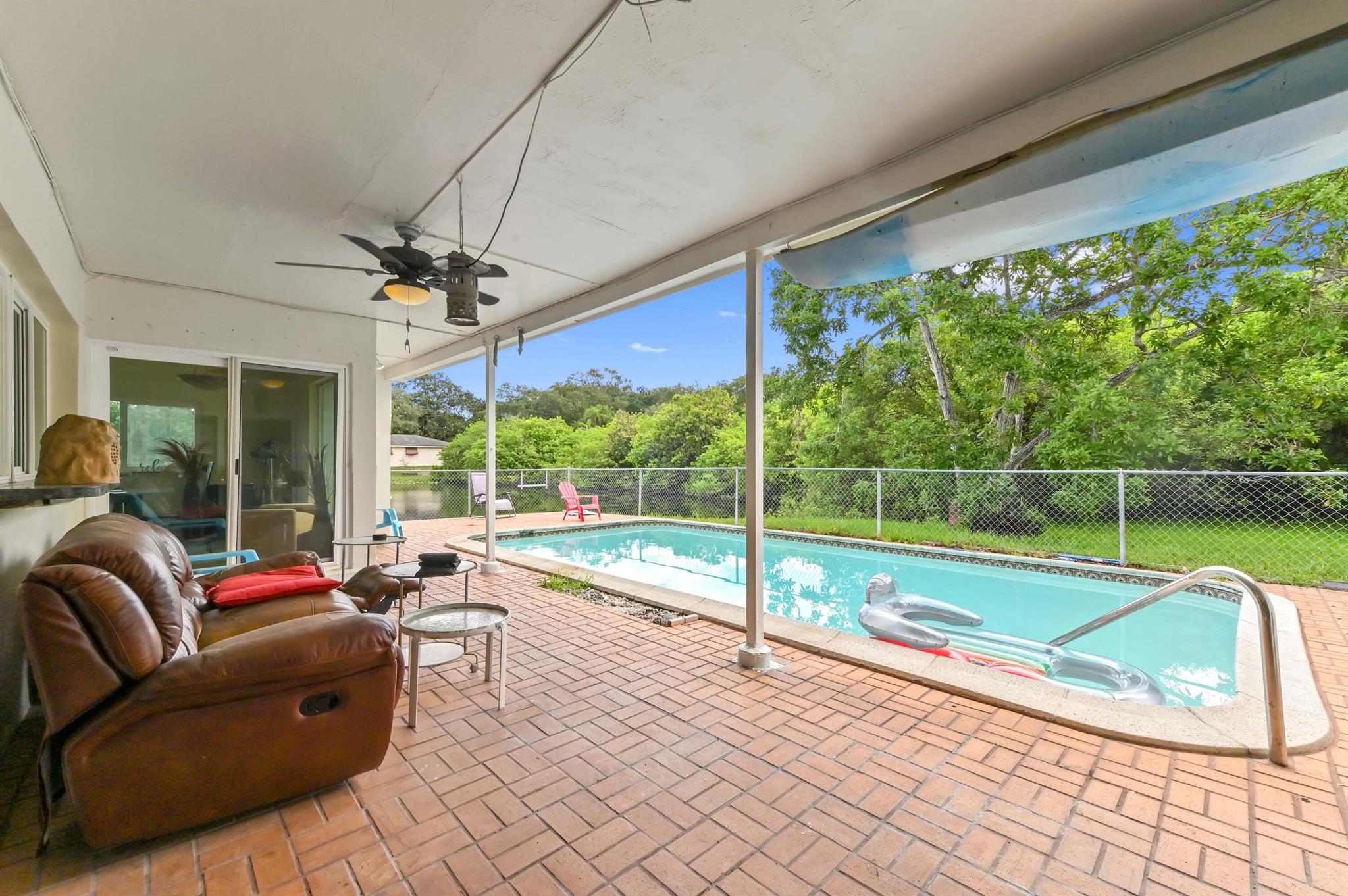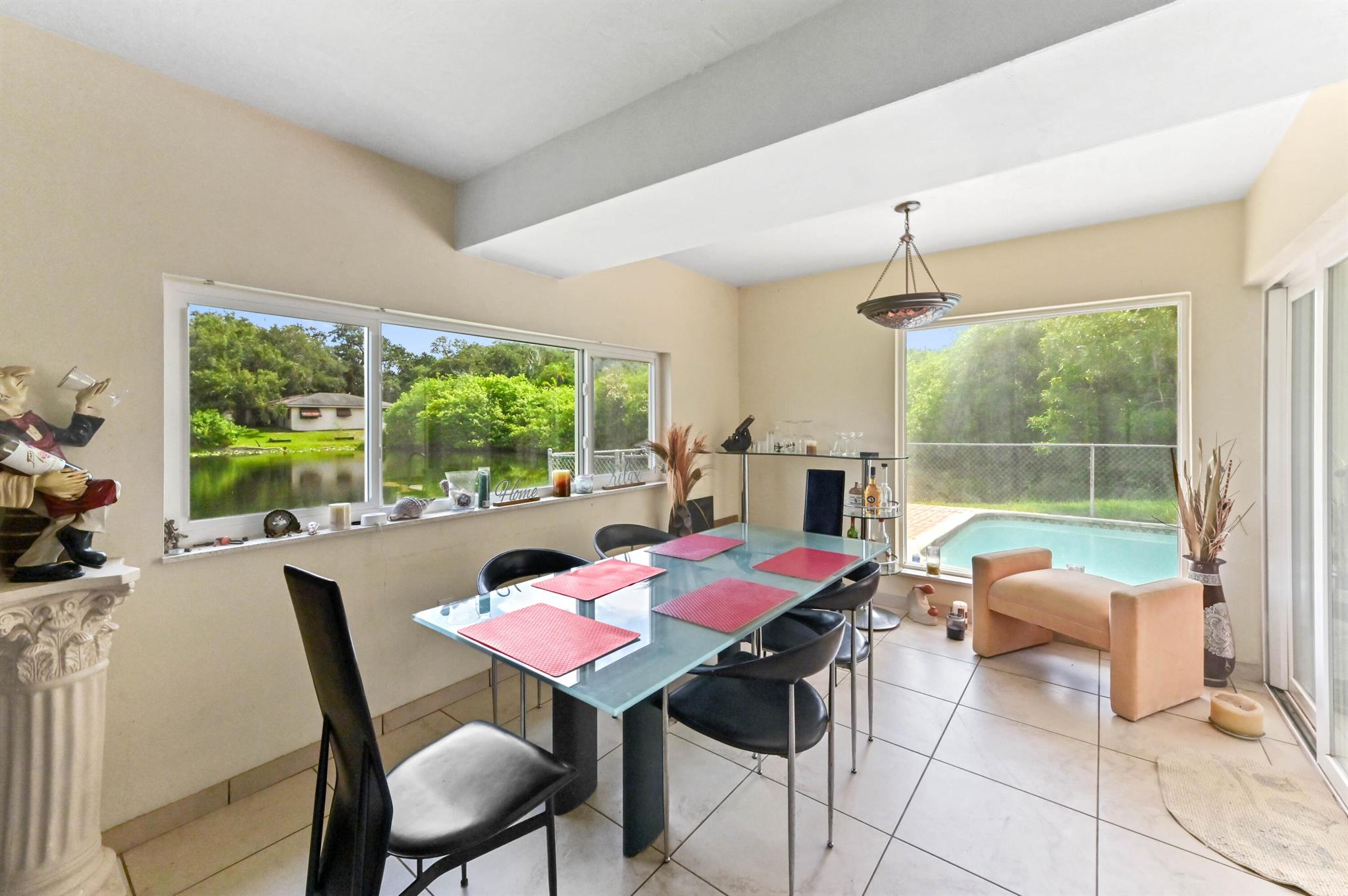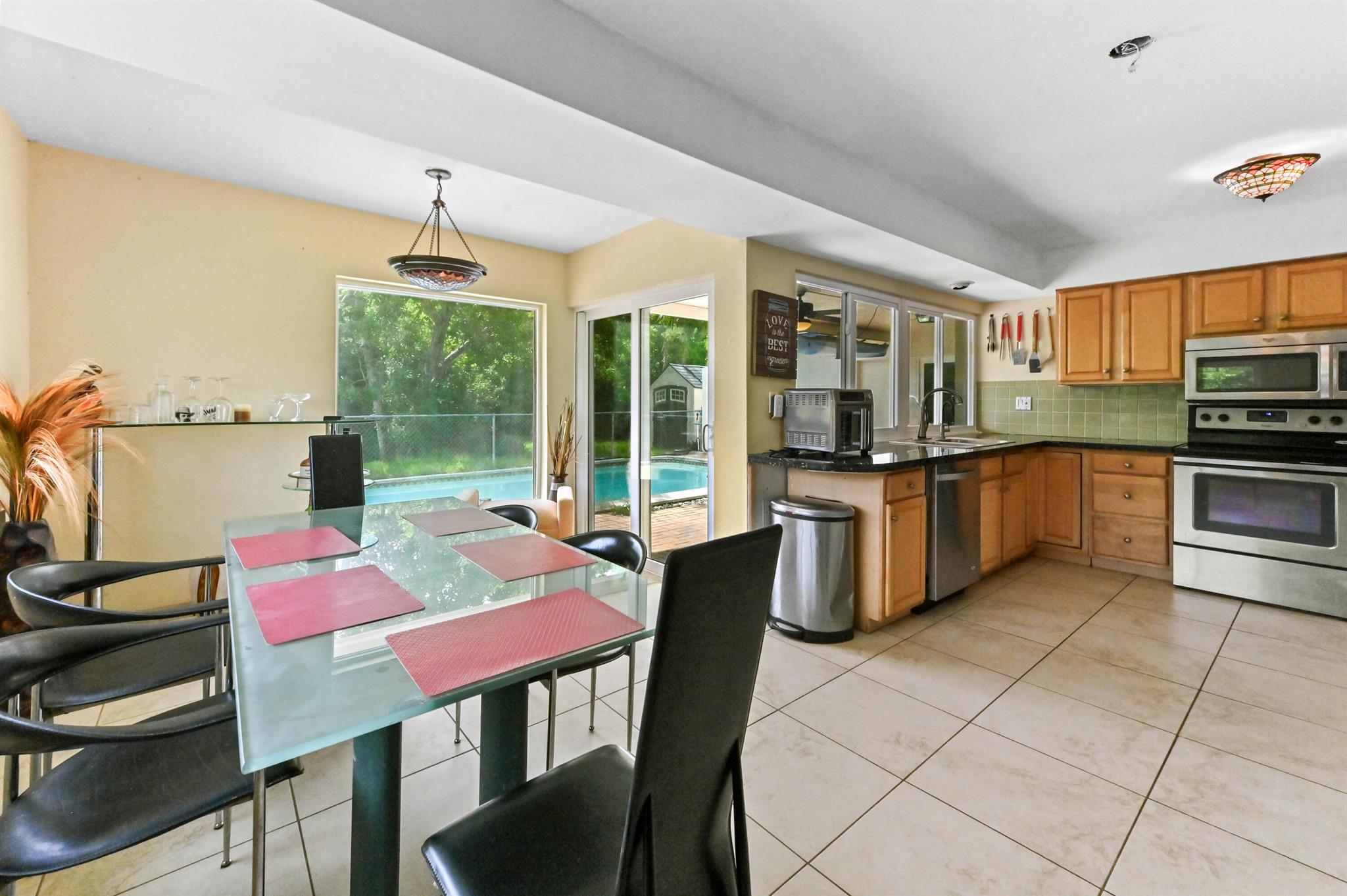 Escape to your private sanctuary in this welcoming single-family pool home, perfectly situated in a secluded, non-HOA community. This stunning residence boasts a layout designed for both comfort and entertaining, featuring an open-concept kitchen equipped with beautiful wood cabinets, gleaming granite countertops, and stainless steel appliances. Impact windows and doors throughout and water treatment system add safety and clean water. The attached garage, secured with an impact garage door, offers both convenience and peace of mind. Throughout the main living areas, sophisticated 20x20 diamond tiles reflect the abundant natural light, creating a bright and inviting atmosphere.