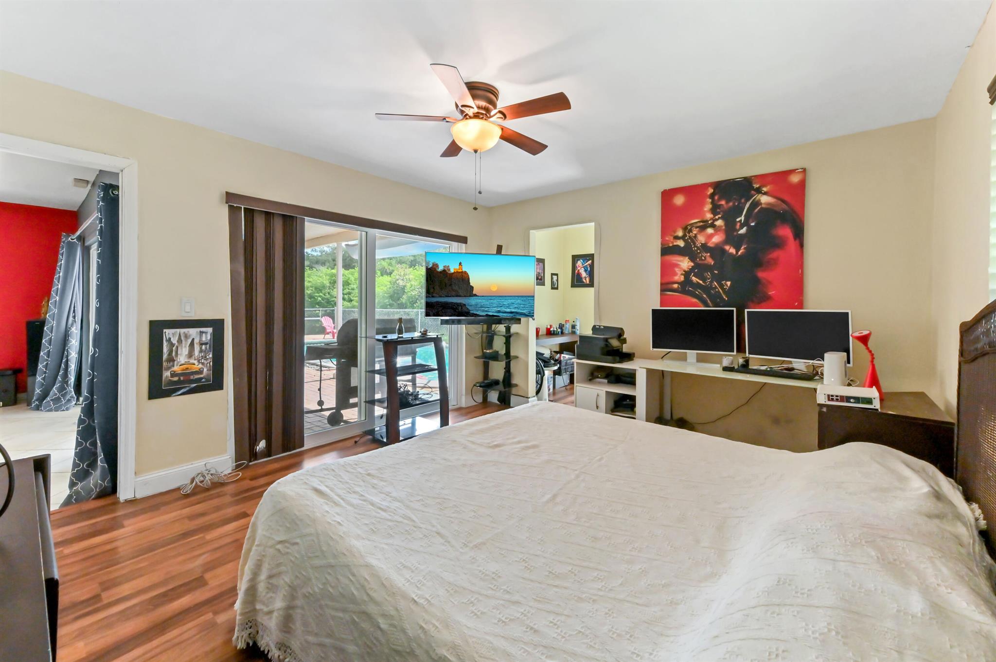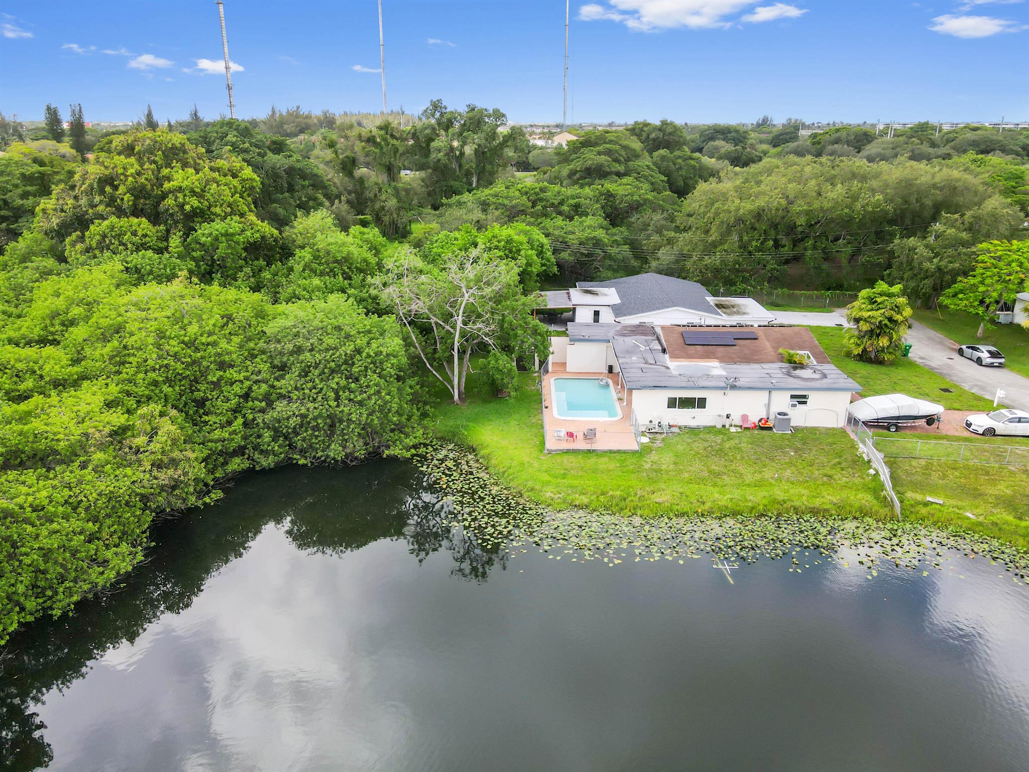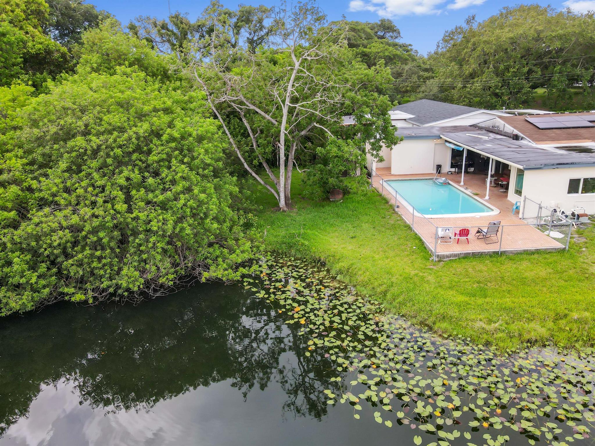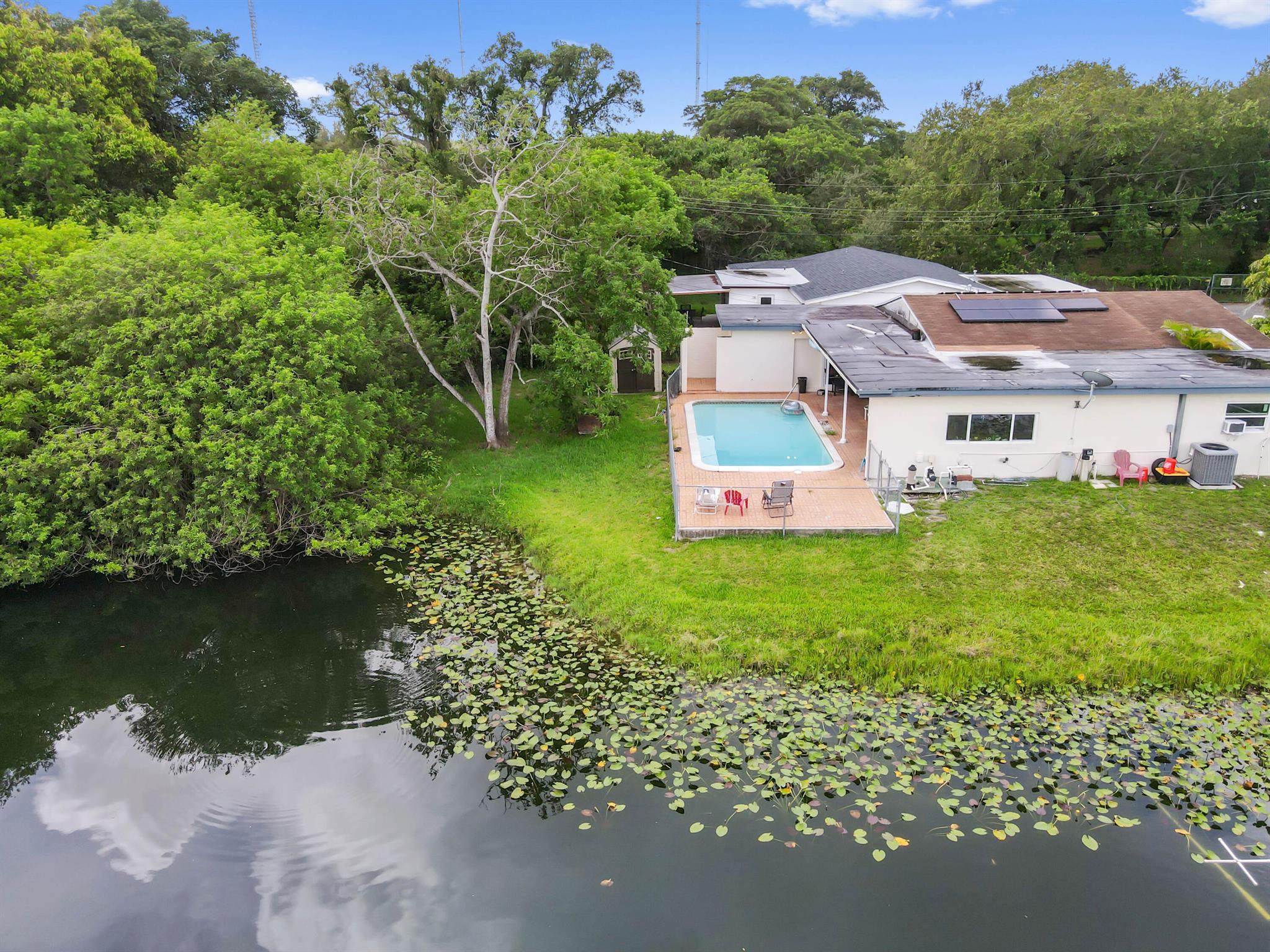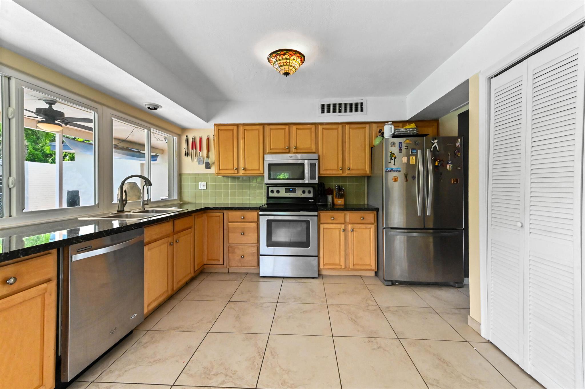 Escape to your private sanctuary in this welcoming single-family pool home, perfectly situated in a secluded, non-HOA community. This stunning residence boasts a layout designed for both comfort and entertaining, featuring an open-concept kitchen equipped with beautiful wood cabinets, gleaming granite countertops, and stainless steel appliances. Impact windows and doors throughout and water treatment system add safety and clean water. The attached garage, secured with an impact garage door, offers both convenience and peace of mind. Throughout the main living areas, sophisticated 20x20 diamond tiles reflect the abundant natural light, creating a bright and inviting atmosphere.