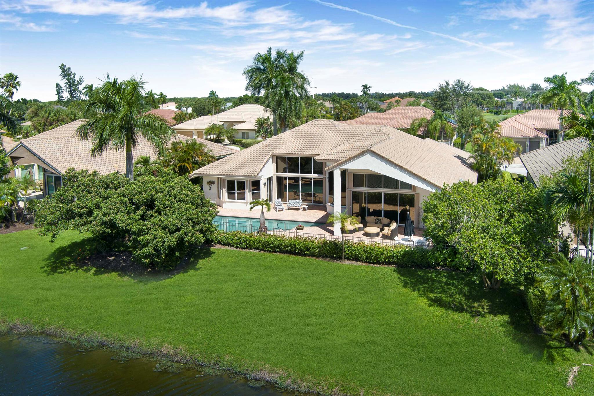 Enjoy sweeping lake and golf course views from this beautifully located 4-bedroom, 3.1 bath home in Stonebridge Country Club. Featuring a renovated kitchen, soaring ceilings, private pool and a popular floorplan with generous living space, this lakefront property also offers privacy with no cart path behind the home. Experience the best of country club living with access to golf, tennis, pickleball, dining, social events and more in this vibrant, amenity-rich community. Stonebridge CC is a mandatory membership community.