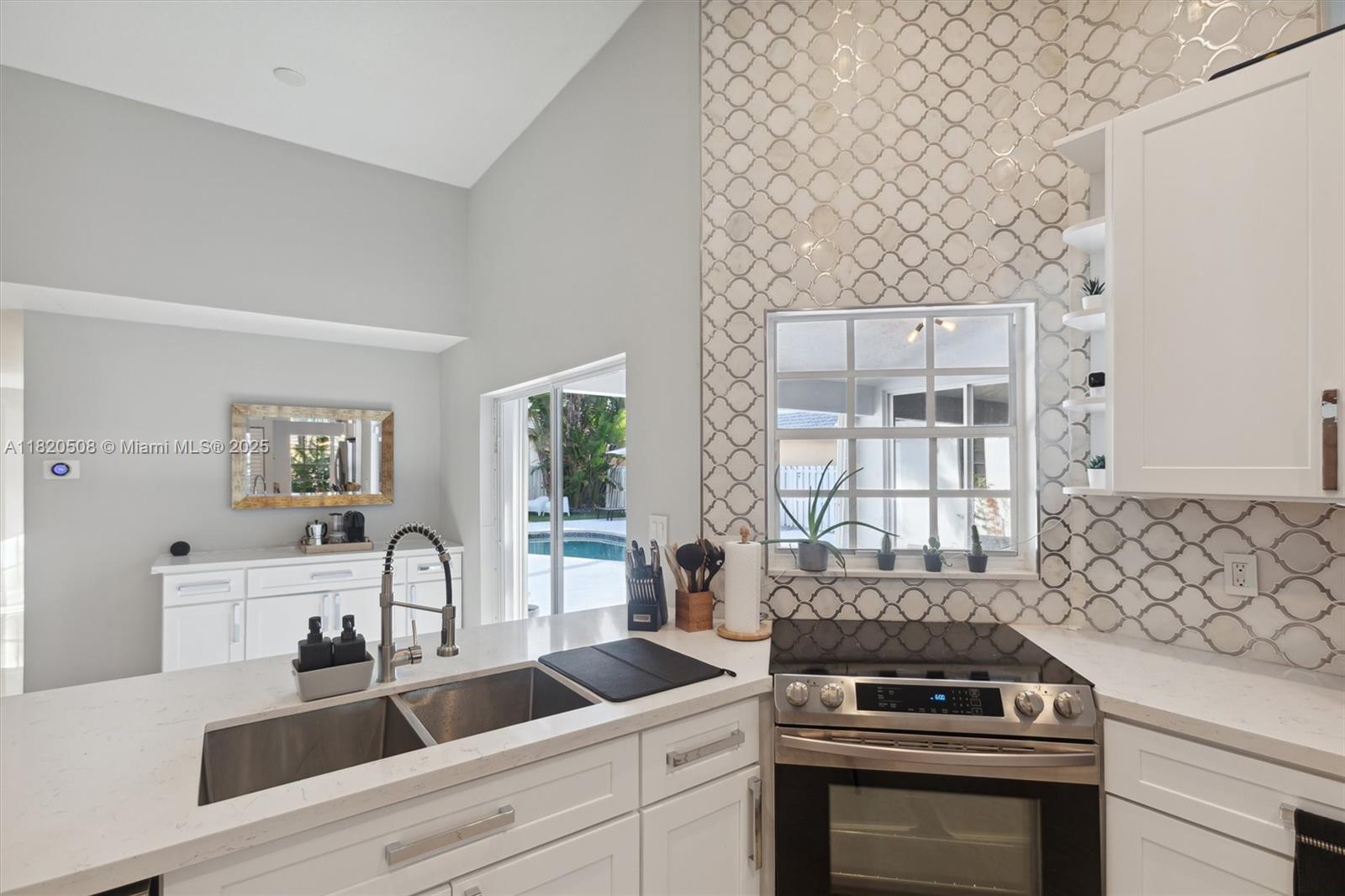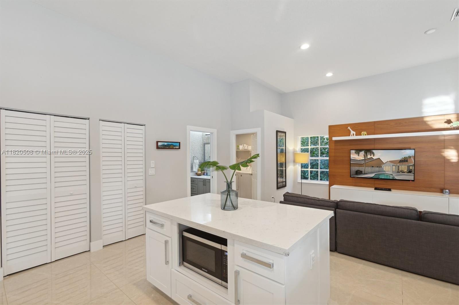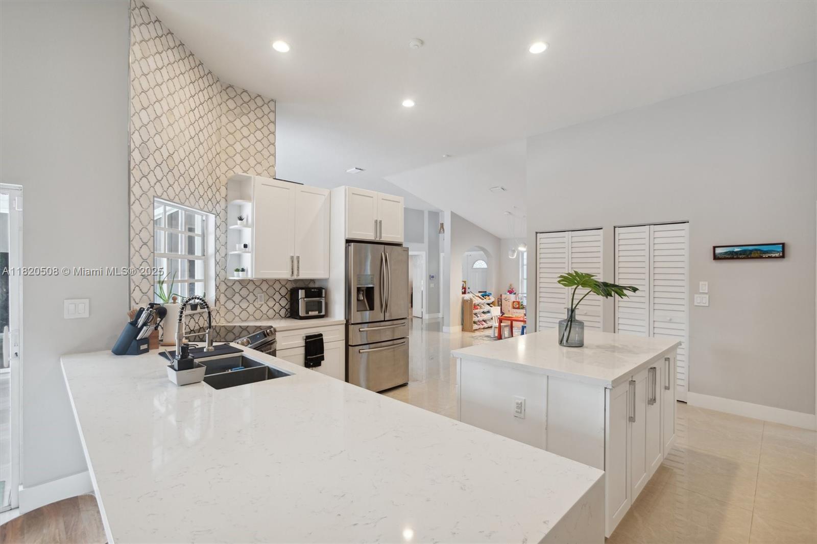 Experience living in this exquisite renovated ONE-STORY home featuring 5 beds, 3.5 baths & open living areas with HIGH ceilings in Weston’s prestigious North Lake Community. The expansive open floor plan features modern tile floors, family room, living & dining rooms offering plenty of space for entertainment. Boasting stunning eat-in kitchen w/ S.S appliances & granite countertops. Step in the master suite accompanied by a full en-suite bath & walk-in closets w/ tub/shower. Across, 2 beds await w/ 2 1/2 bath & the 5th beds is perfect as an office. Step outside to your cozy fenced, partially roofed patio, tiled w/ artificial grass, POOL, Cabana BATH & RENOVATED DECK ideal for outdoor relaxation. Pool-fenced. Steps away from the CUL-DE-SAC.
