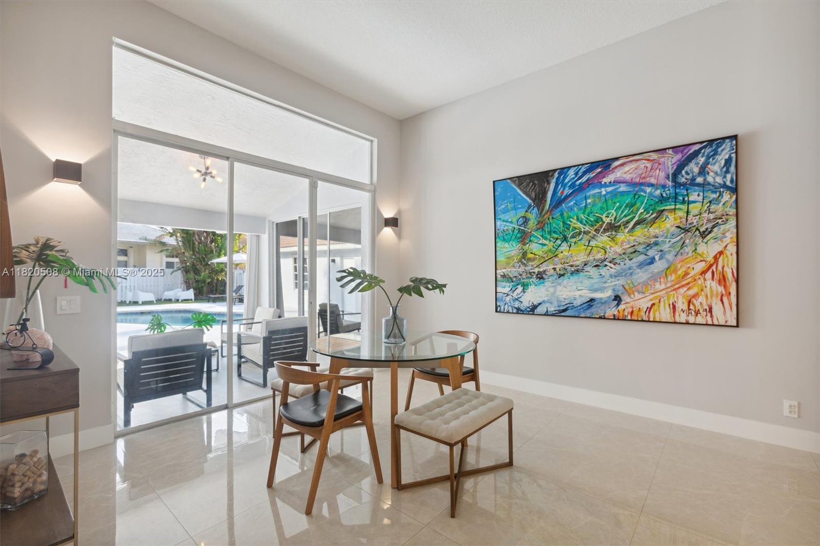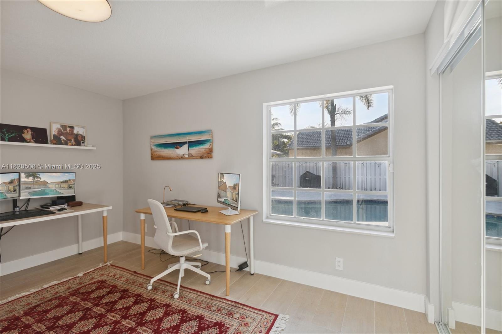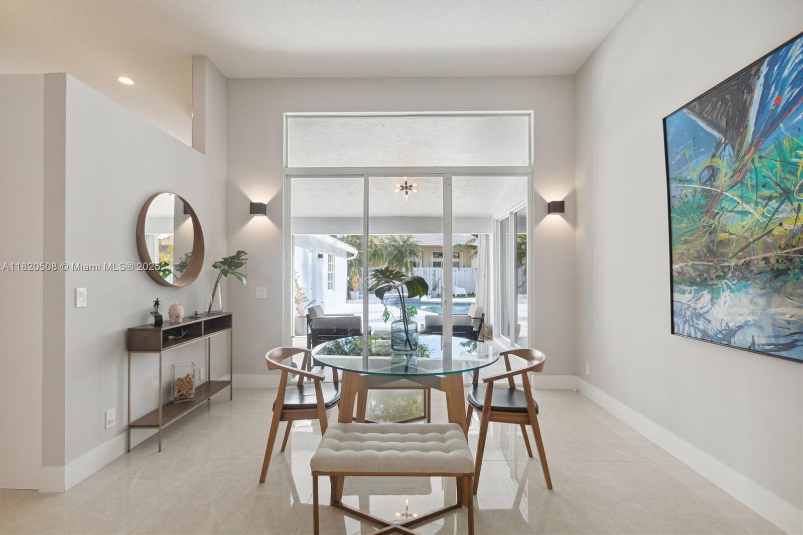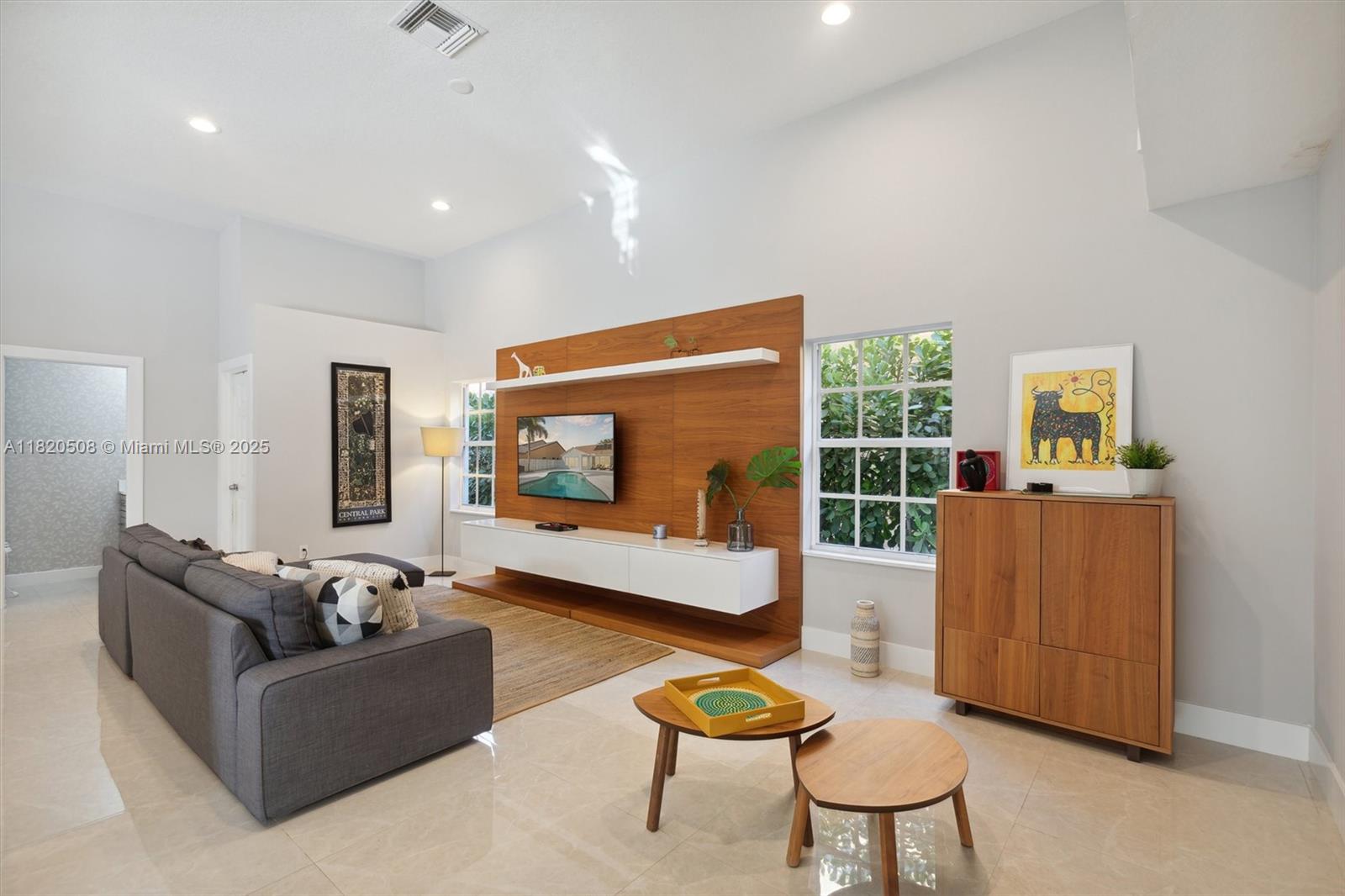 Experience living in this exquisite renovated ONE-STORY home featuring 5 beds, 3.5 baths & open living areas with HIGH ceilings in Weston’s prestigious North Lake Community. The expansive open floor plan features modern tile floors, family room, living & dining rooms offering plenty of space for entertainment. Boasting stunning eat-in kitchen w/ S.S appliances & granite countertops. Step in the master suite accompanied by a full en-suite bath & walk-in closets w/ tub/shower. Across, 2 beds await w/ 2 1/2 bath & the 5th beds is perfect as an office. Step outside to your cozy fenced, partially roofed patio, tiled w/ artificial grass, POOL, Cabana BATH & RENOVATED DECK ideal for outdoor relaxation. Pool-fenced. Steps away from the CUL-DE-SAC.