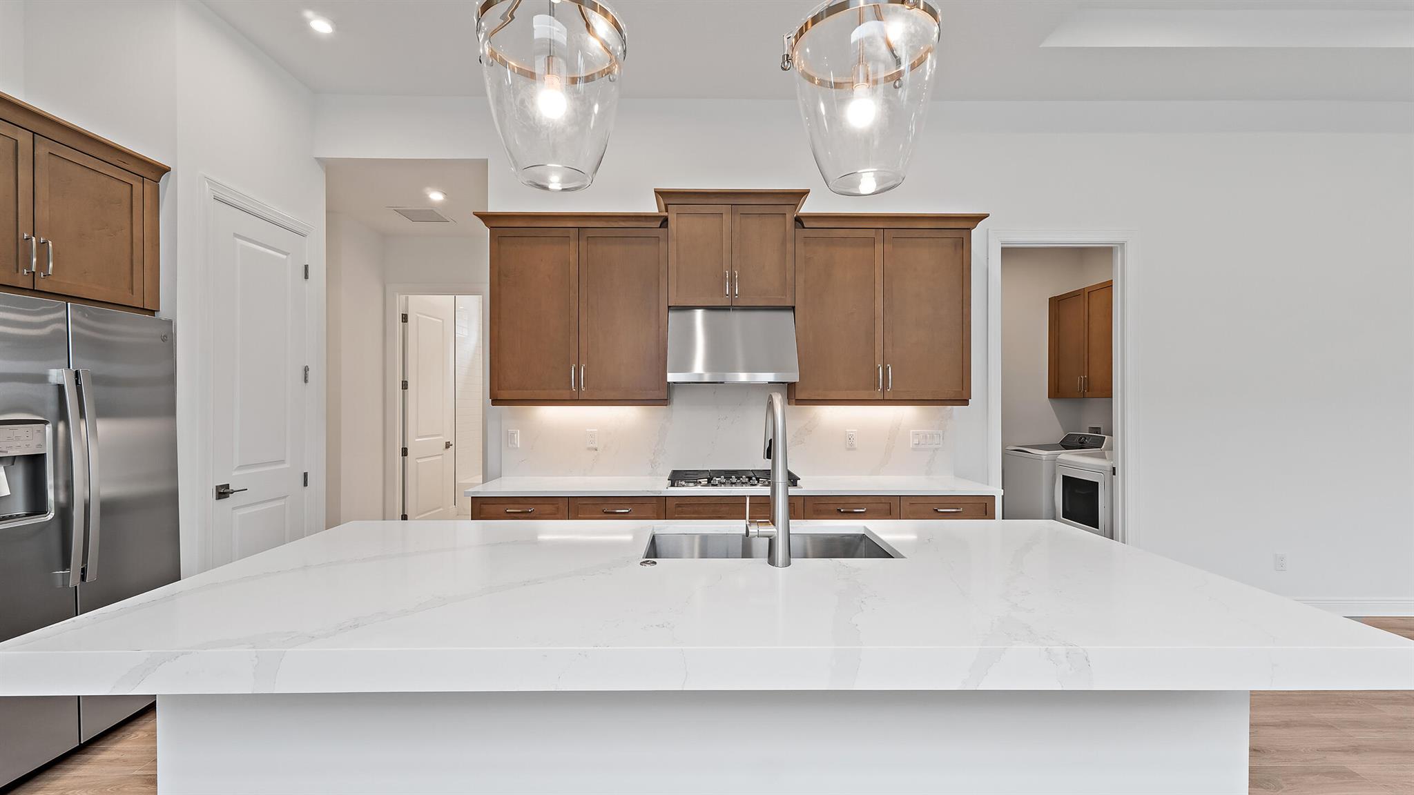 **NEW CONSTRUCTION** Home with Lakeview in Gated, Nature Focused Community-Rivella. Enjoy peaceful lake views and sunsets from your backyard in this move-in ready new construction home, located in a private, gated community surrounded by over 140 acres of natural preserve. This 3-bedroom, 2- bath home with a versatile Flex Room, is positioned on a lake offering a tranquil setting to relax or entertain. The main living area features soaring 11'4 ceilings and abundant natural light, creating an open, airy feel throughout. The gourmet kitchen is complete with quartz countertops, natural gas appliances and finishes with today's trend. Step outside to a covered lanai with a pre-plumbed summer kitchen-giving you the opportunity to add your own touch.