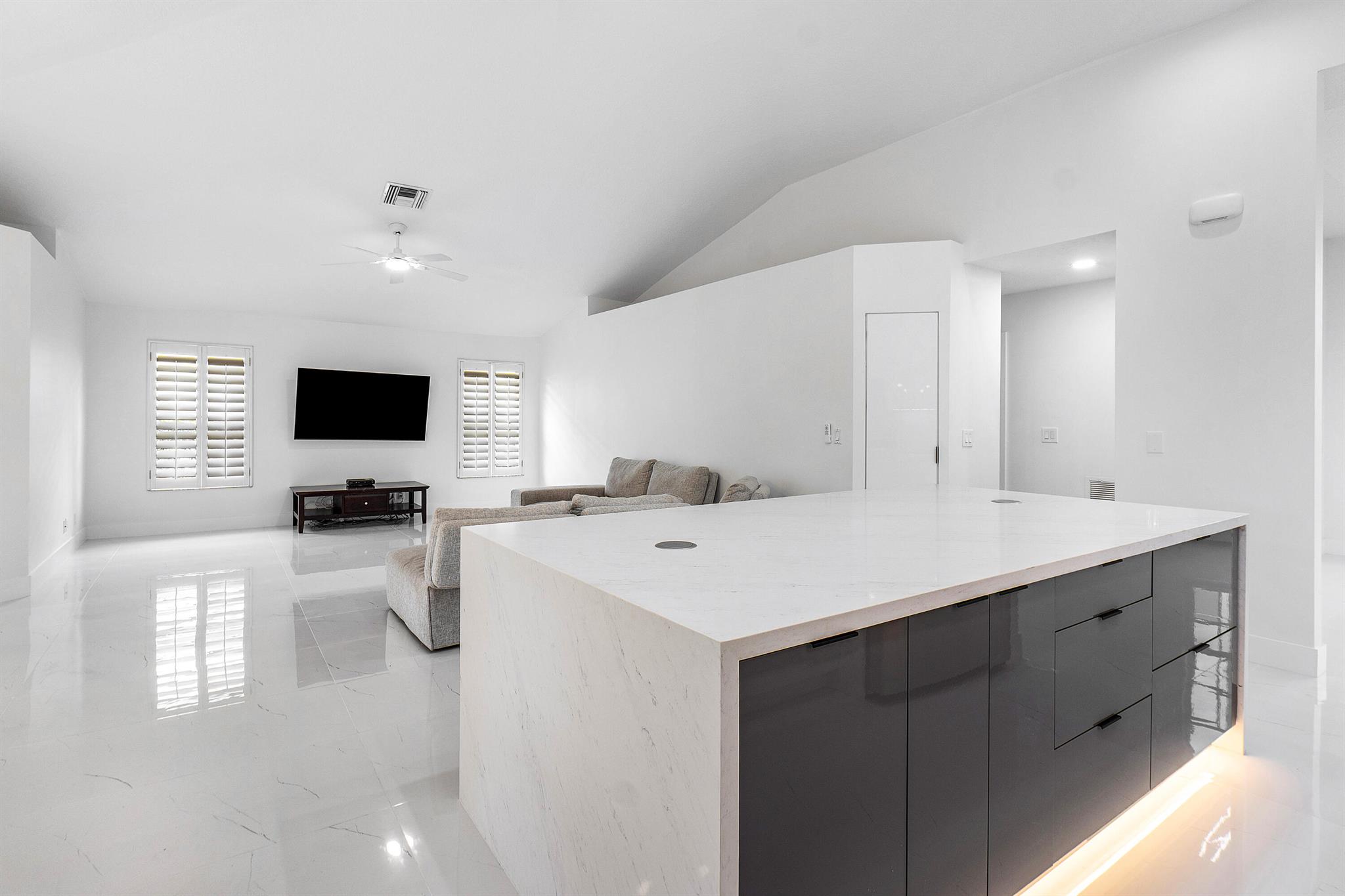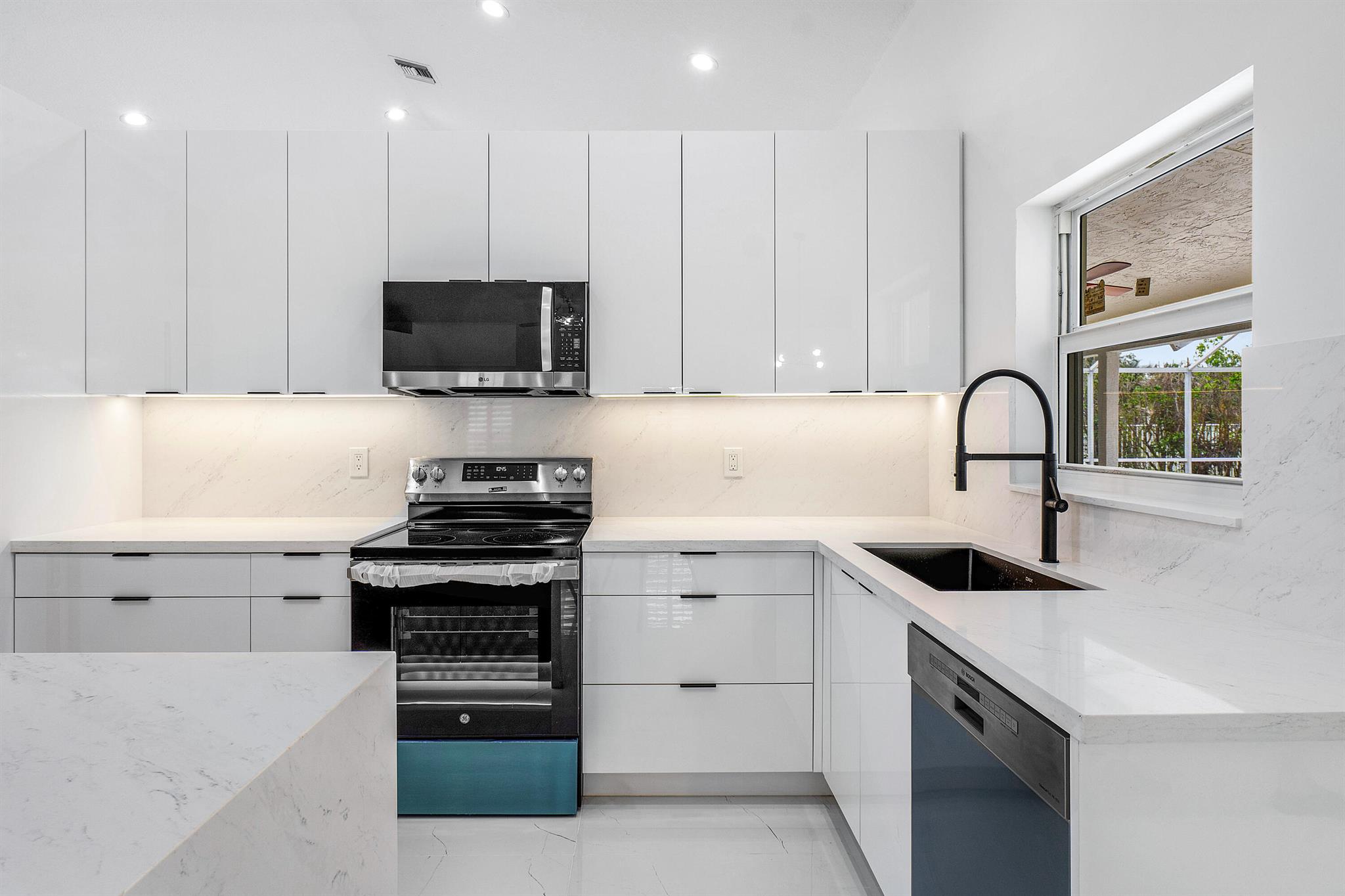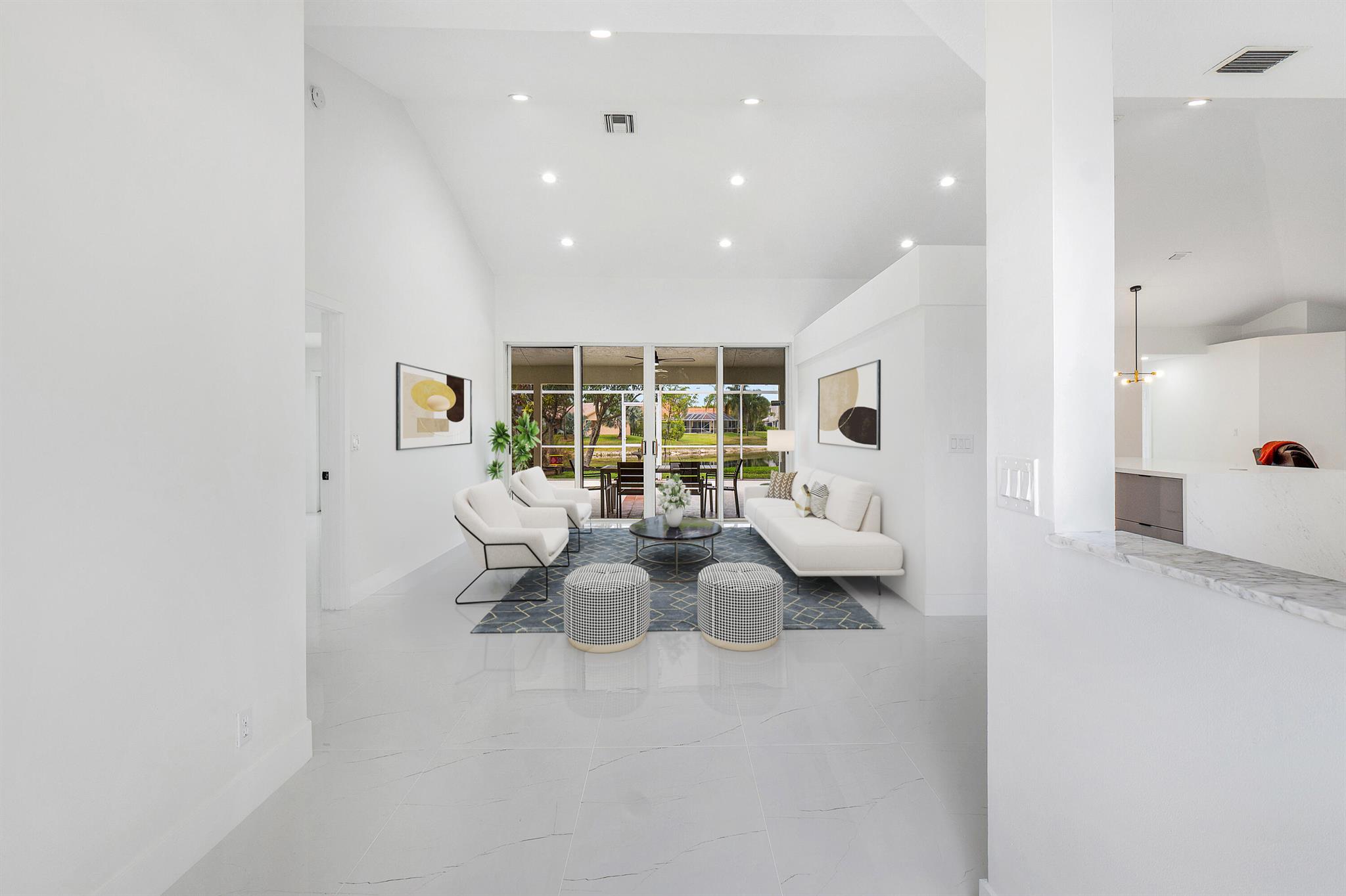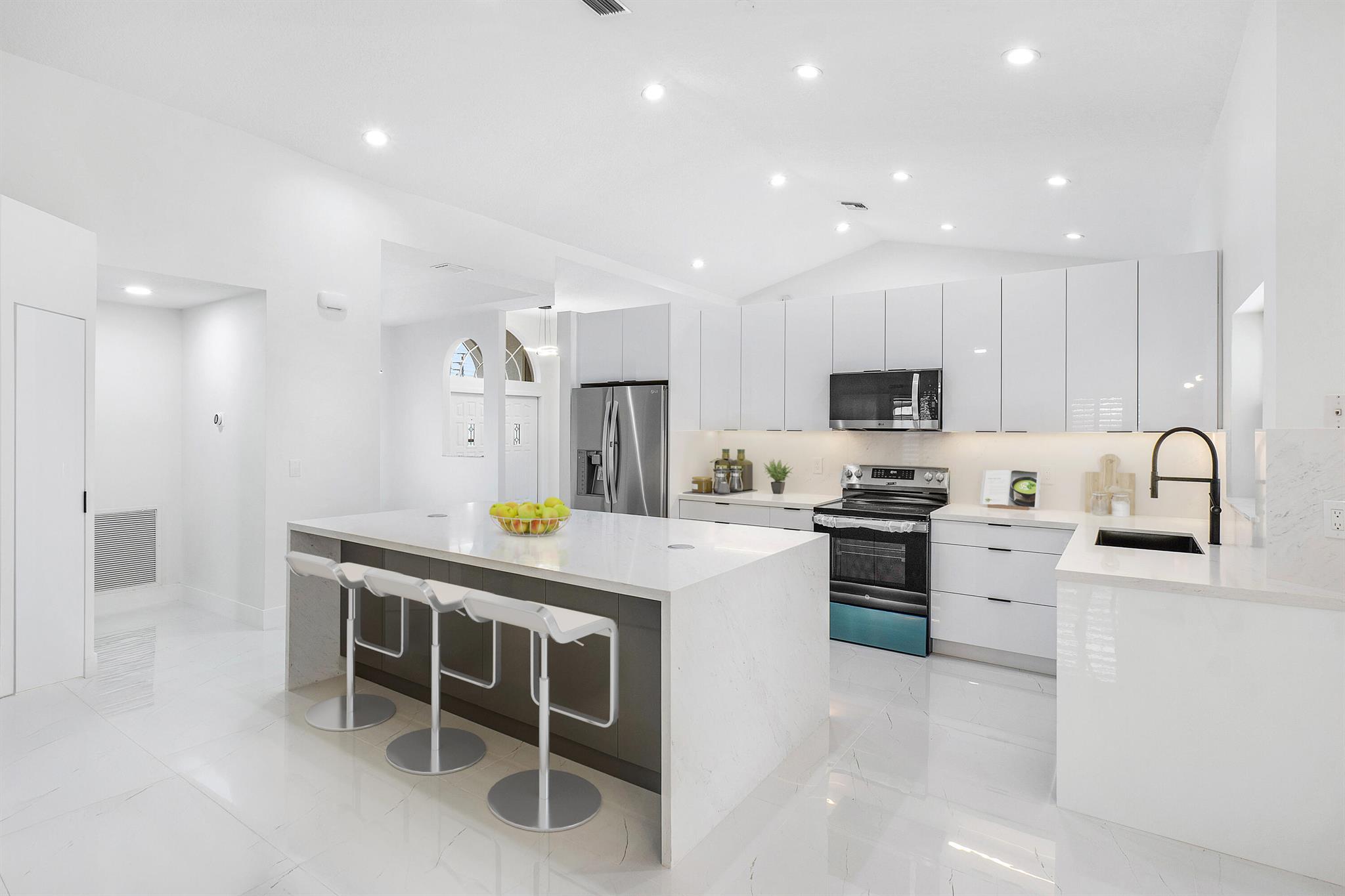 Newly renovated lakefront home in sought-after Cordova Estates of Mission Bay. Set on a 0.25-acre east-facing lot with expansive lake views, this 4-bed 2.5-bath, 2,561 sq ft one-floor home blends modern luxury and contemporary finishes with over $150,000 in high-end upgrades. The oversized screened-in patio is perfect for relaxing or entertaining, complemented by a beautifully landscaped backyard with room for a pool (owner has pool specs priced). The home features an open layout, imported porcelain tile throughout, high ceilings a brand-new kitchen with custom cabinetry, a waterfall island, stainless steel appliances, under-cabinet LED lighting, a custom pantry, and recessed lighting.