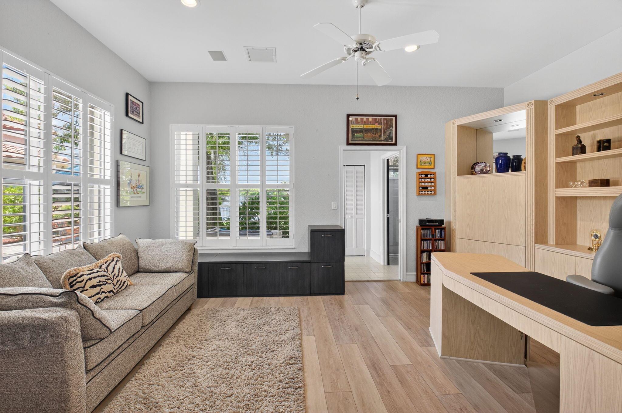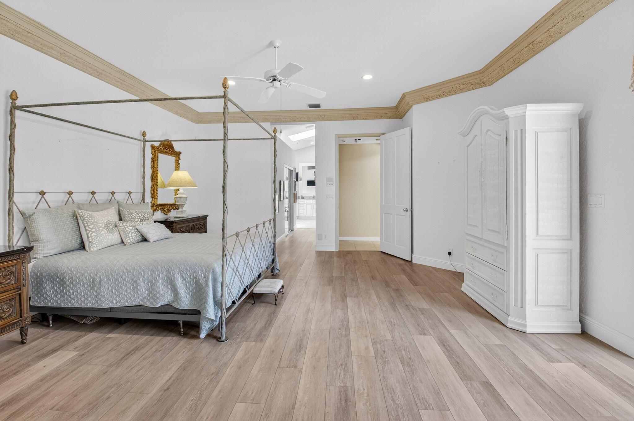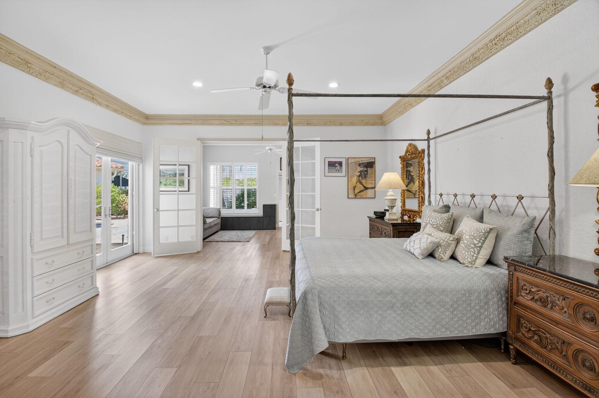 Experience serene lakefront living on one of the largest private lake lots in Santa Barbara. Beautiful bright open living area with a grand foyer, volume ceilings and tile floors. Triple-split floorplan affords privacy for everyone. Fabulous updated white kitchen with custom cabinets, quartz countertops, center island, gas cooktop, stainless appliances and breakfast area. Expansive primary suite with spa-like updated white bath offering dual marble top vanities, custom tile shower and two fitted walk-in closets. Tranquil inviting oversized lushly landscaped side and backyard perfect for relaxing and entertaining family and friends. Take a dip in your sparkling freeform pool with soothing waterfall spa. 4th bedroom currently used a home office with a full private bath. A must see!