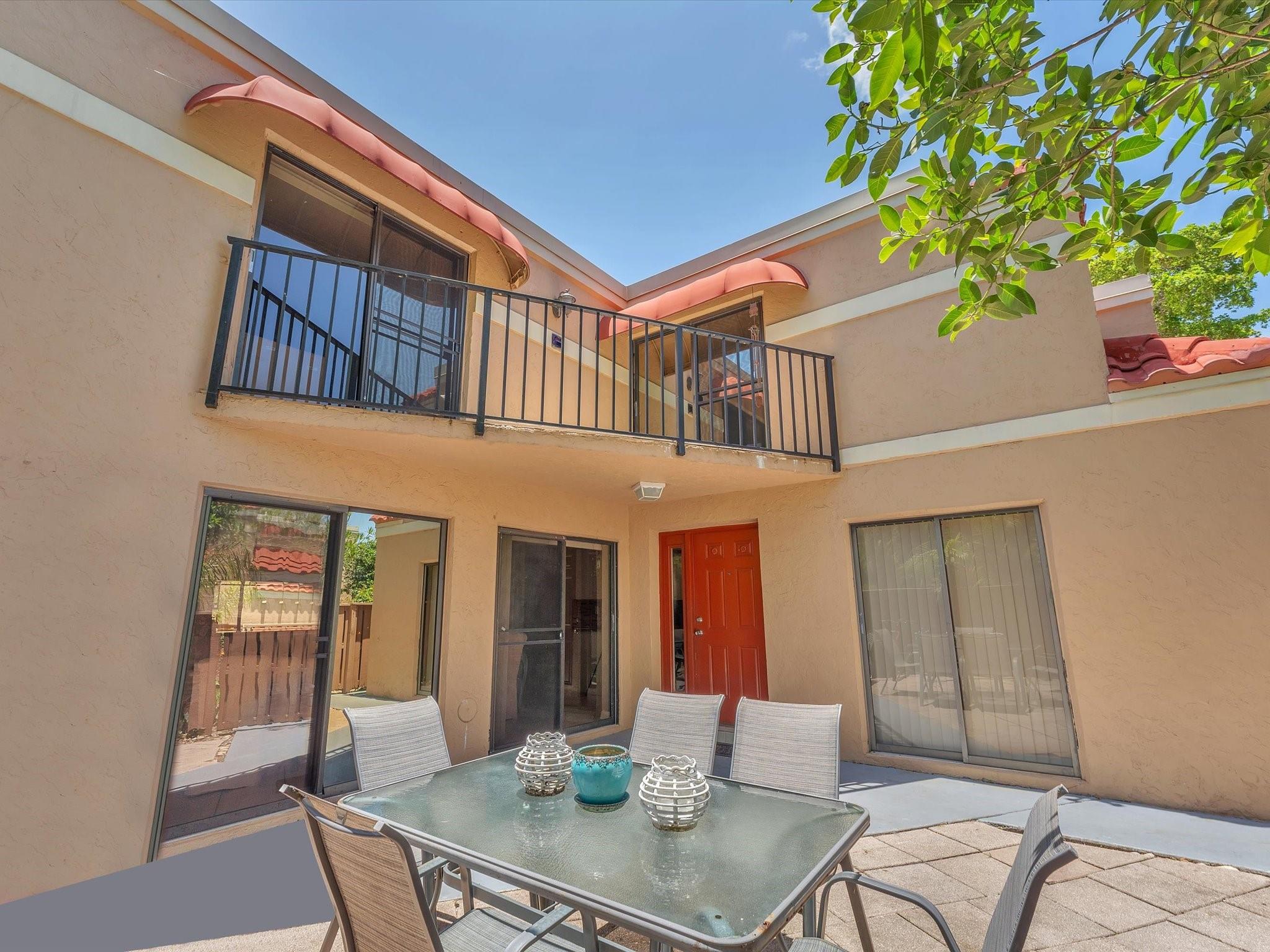 Rarely available 3 BD / 3 FULL BATH Townhome w/ Private Courtyard. Upgraded kitchen has granite countertops, tile backsplash & stainless steel appliances. 2 bedrooms upstairs, including Primary Suite. Both bedrooms upstairs with access to the patio. 1st Floor bedroom can be a work at home office, if needed. Sliding glass doors in all bedrooms. Private Courtyard is great for pets and the weekend barbecues. A/C & appliances all under 5 yrs old. Highly rated Elementary, Middle & High School! Close to FAU as well. Only 8 miles to the Deerfield Beach Pier, Ocean, Nightlife & Restaurants. Amenities include Pool, Sauna, Tennis Court, Kids Playground, Fitness Center, Clubhouse.