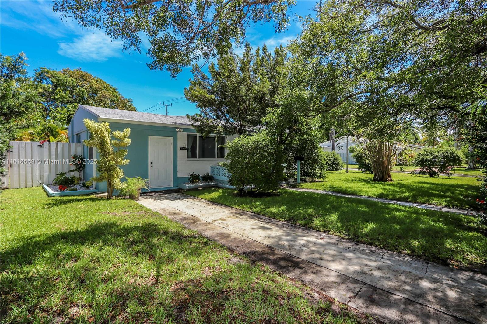 Welcome to this beautiful 2-bedroom, 2-bath home. Situated on a spacious corner lot. This 2-bedroom, 2-bath home includes a versatile additional room with its own cabana bath and private entrance—perfect as a home office. Step inside to original wood floors, crown molding, a kitchen updated with stainless steel appliances, quartz countertops, classic shaker cabinets, and an open living and dining concept. Enjoy the outdoors year-round with an open patio or under the shade of a majestic mango tree. You’ll also find mulberry, banana, and star fruit trees! Extra features include a large utility room, extra storage shed, 2020 shingle roof, and impact windows and doors!! Garage has been converted.