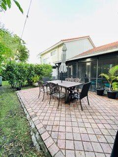 Beautifully updated villa in Fairway Views! Featuring 2 bedrooms + den (optional 3rd bedroom), 2 baths, and a split floor plan for privacy. The primary suite offers a walk-in closet and direct access to the enclosed patio. The open kitchen boasts stainless steel appliances, abundant cabinets, and plenty of counter space. Enjoy vaulted ceilings, porcelain tile in main areas, laminate in bedrooms, accordion hurricane shutters, 1-car garage, and NEW A/C. Relax on the enclosed patio with backyard views. Resort-style community amenities include heated pool, clubhouse, walking/biking paths, and lush landscaping. Prime location minutes to shopping, dining, golf, parks, and major highways. Move-in ready! Don't miss this opportunity!