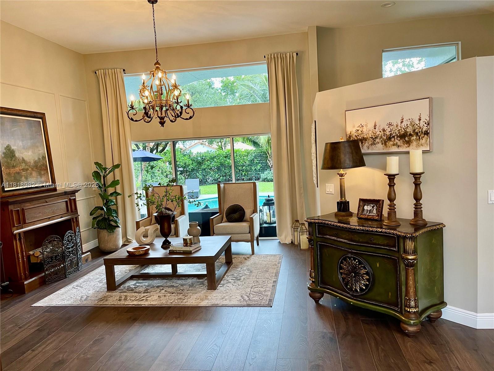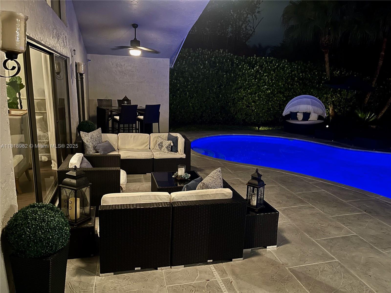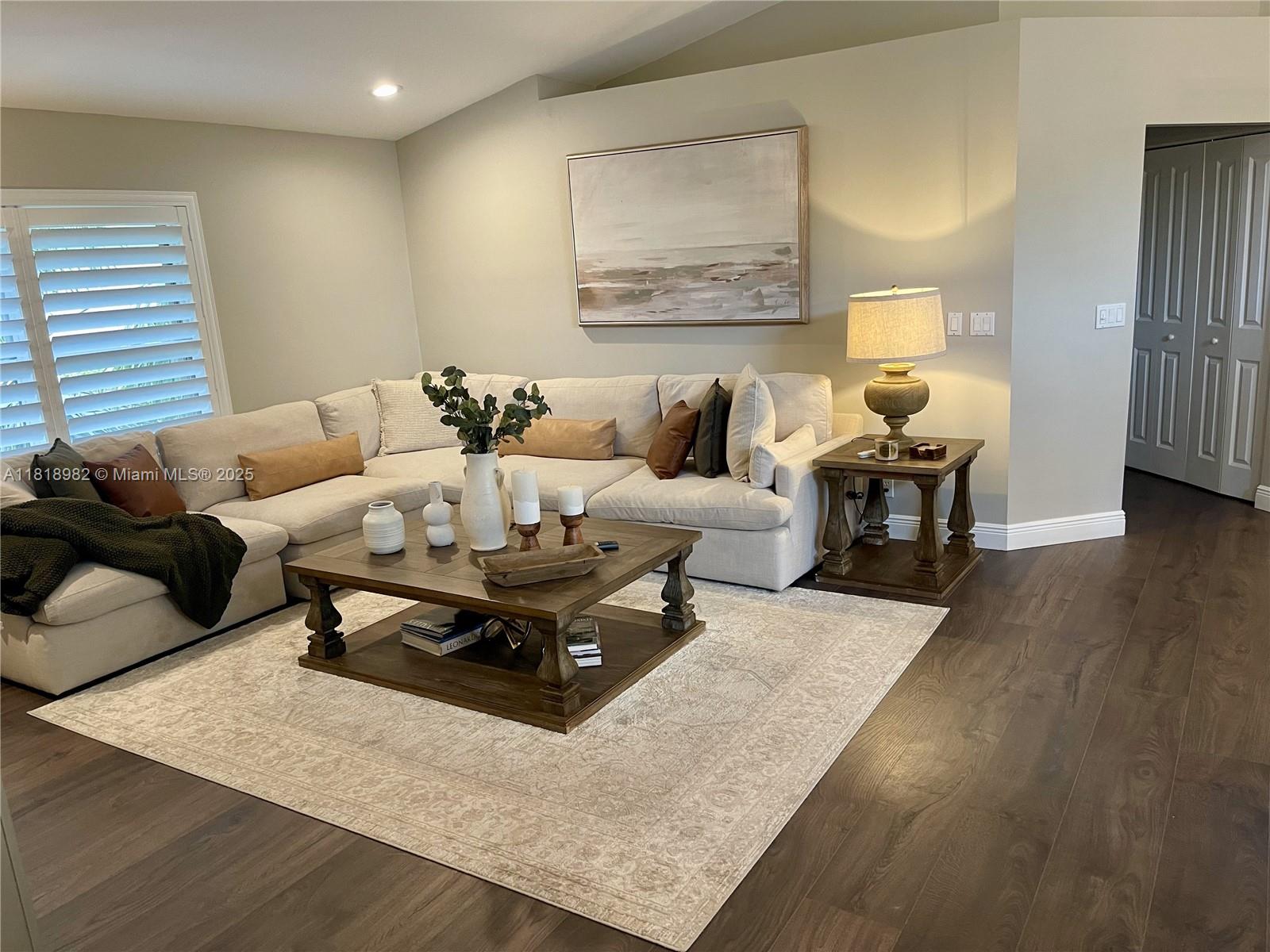 Gorgeous house boasting 5 spacious bedrooms & 2.5 updated baths; Soaring vaulted ceilings & walls of windows drenching home in natural light. Lush/mature landscaping surrounding private fenced backyard retreat & sparkling pool w/stunning pool lighting, cabana bath & expansive patio. All-new updated kitchen w/GE Café Series S/S appliances, granite countertops & custom backsplash. Double WIC in the master suite. Updated bathrooms w/ granite & marble countertops, double vanities, & high-end finishes. Decorator touches throughout the house: elegant plantation shutters, custom curtains, Levolor shades, new Mohawk RevWood durable laminated flooring & detailed molding accents; Every corner radiates style and modern elegance.