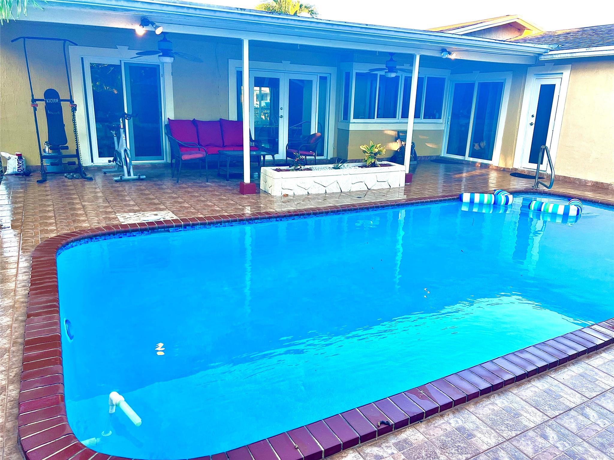 This beautifully designed and spacious 4-bedroom,2 bathrooms home offers a blend of indoor comfort and outdoor living. The home features a thoughtful split floor plan for privacy and convenience. The master bedroom has a walk-in closet with dual sinks. The kitchen has granite countertops and stainless-steel appliances. There is a separate formal dining area, direct view to the pool from literally every area of the house. Featuring a beautifully landscaped pool area with a gazebo for entertaining or relaxing. Enjoy peace of mind with impact windows and doors. A large backyard that has fruit trees. The rear yard is fenced. Two car garage, no homeowner's association. Solar panels to reduce electricity cost.