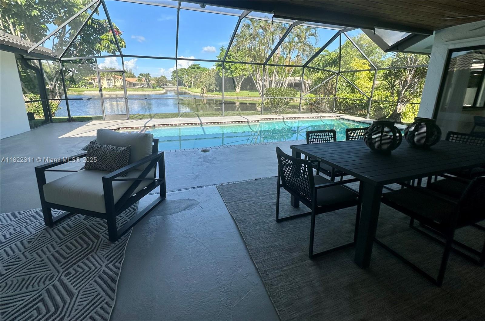 Stunning 4BD/2.5BA waterfront pool home in the heart of Coral Springs! Bright and open with soaring vaulted ceilings, sleek LED lighting, and brand-new floors throughout. The showstopper kitchen features quartz counters, stainless steel appliances, and a huge island perfect for entertaining. Designer-updated baths, custom vanities, and a spa-like primary suite with a cedar-lined closet. Freshly painted inside and out with lush new landscaping. Step outside to your private screened patio and sparkling pool with water views. No HOA! Close to A+ schools, parks, shopping, and dining. This home is a must see!