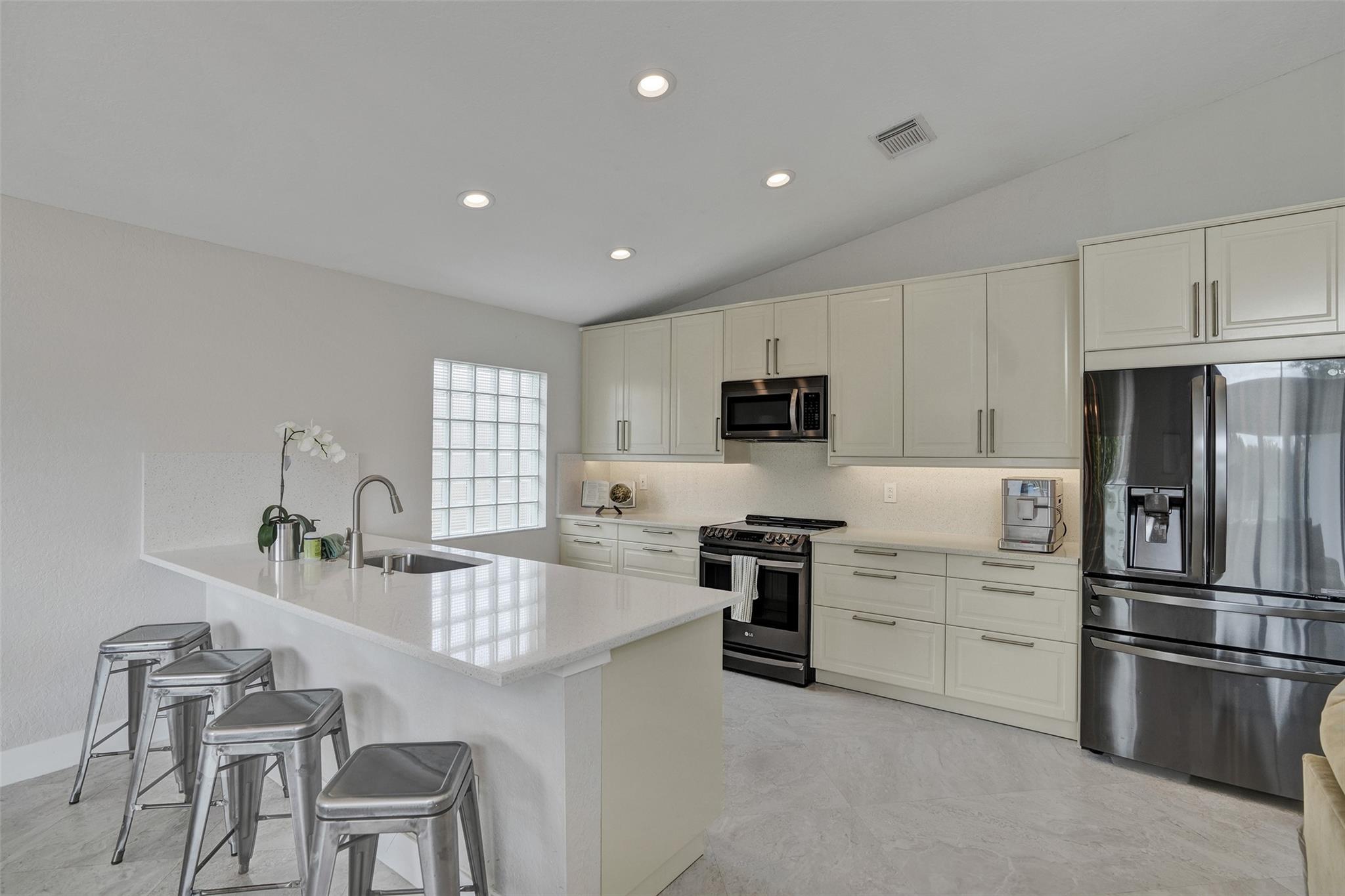 Welcome to your new family home in the beautiful, gated community of Estancia. This fully remodeled 3-bedroom, 2-bath home is move-in ready. It features a brand-new roof, new exterior paint and stylish updates throughout. The open-concept kitchen is every home cook’s dream, offering plenty of counter space, cabinet storage, and new appliances. Both bathrooms have been tastefully updated, and the bright, open living and dining areas feature new flooring and lots of natural light. With a newer A/C and water heater you’ll enjoy year-round comfort and efficiency. Enjoy a spacious fenced in backyard with a relaxing lake view — the perfect place for the kids to play or for hosting outdoor gatherings.