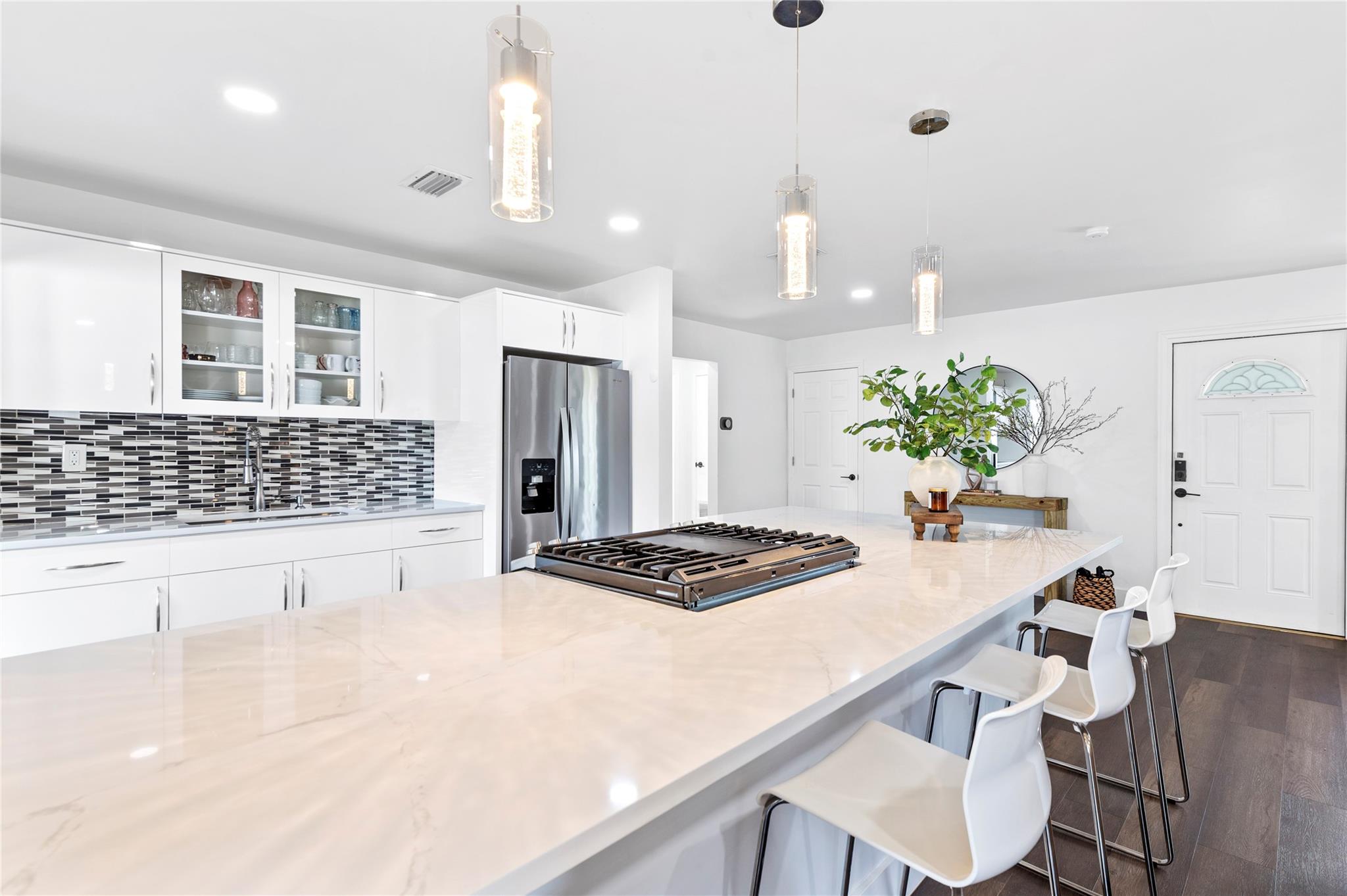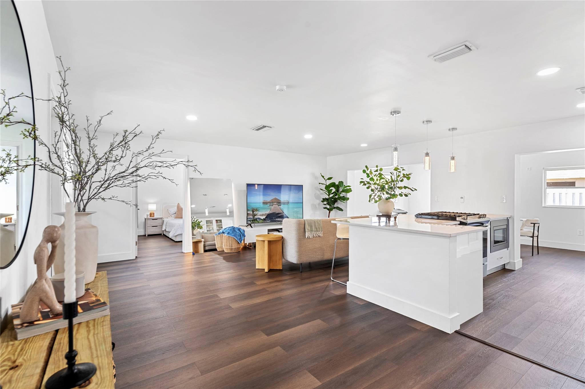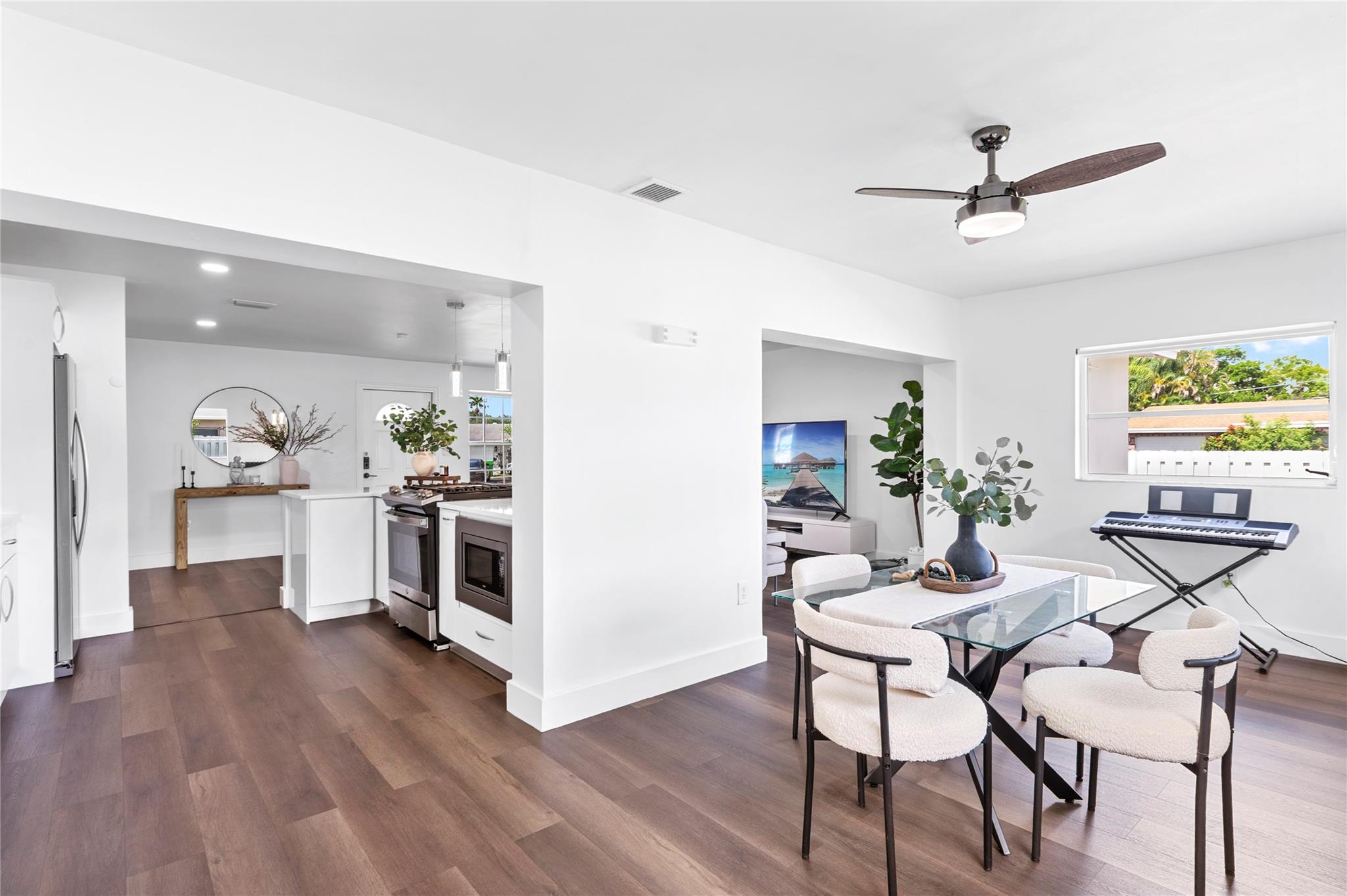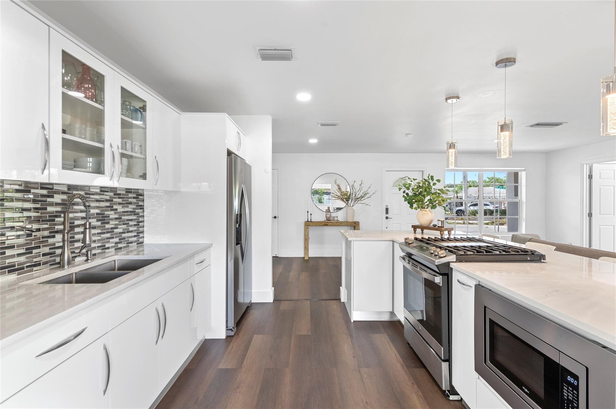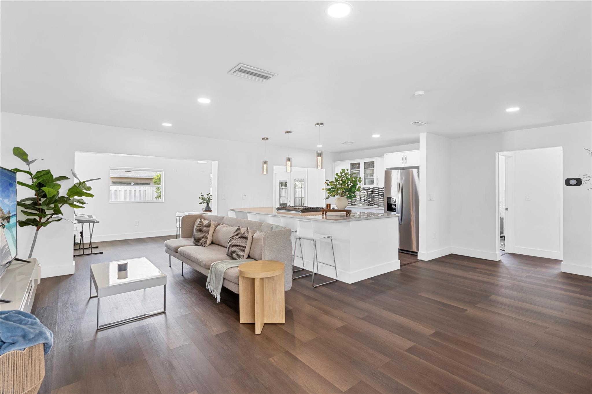 This beautifully remodeled 3 bed, 3 bath corner home offers an open and inviting interior designed for comfort and functionality. The spacious layout flows into a modern kitchen with quartz countertops, stainless steel appliances, gas stove, and sleek cabinetry which is perfect for everyday living and entertaining. Step outside to a fully fenced backyard with a double-door side entrance, ideal for parking your boat or RV. Enjoy cooking in the outdoor kitchen, hosting weekend BBQs, or building your dream pool in the expansive yard. A private 1 bed/1 bath suite with its own entrance offers a flexible living space—perfect for guests, extended family, or potential rental income. New roof just installed! Move in with peace of mind and enjoy all this home has to offer!