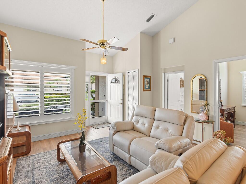 NEW ROOF 2022, A/C 2022, W/H 2024, NEW ELECTRICAL PANEL AND RE-PIPED PLUMBING. Beautiful two-bedroom, two-bathroom corner lot home with the potential to convert the den into a third bedroom, with a 1 car garage. The home is equipped with Shutters for Hurricane Protection and beautiful plantation shutters. Water filtration system and Gas Stove. Top of the line Washer and Dryer and Shed for extra storage. Screened and enclosed tiled lanai, perfect for entertainment. The Isle of Tuscany includes guest parking spaces and exterior painting. Hassle free HOA includes Lawn Care, internet, cable, and manned guard gate. Welcoming Resort style Clubhouse with recreational facilities and many interesting clubs and events. Convenient to I-95, banks, grocery stores, and medical care.