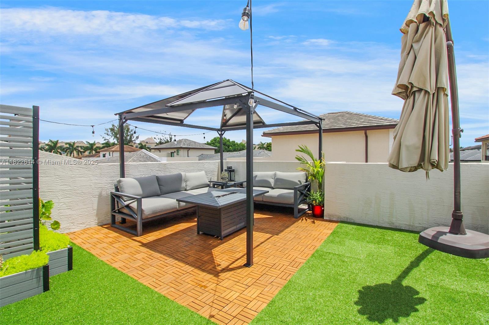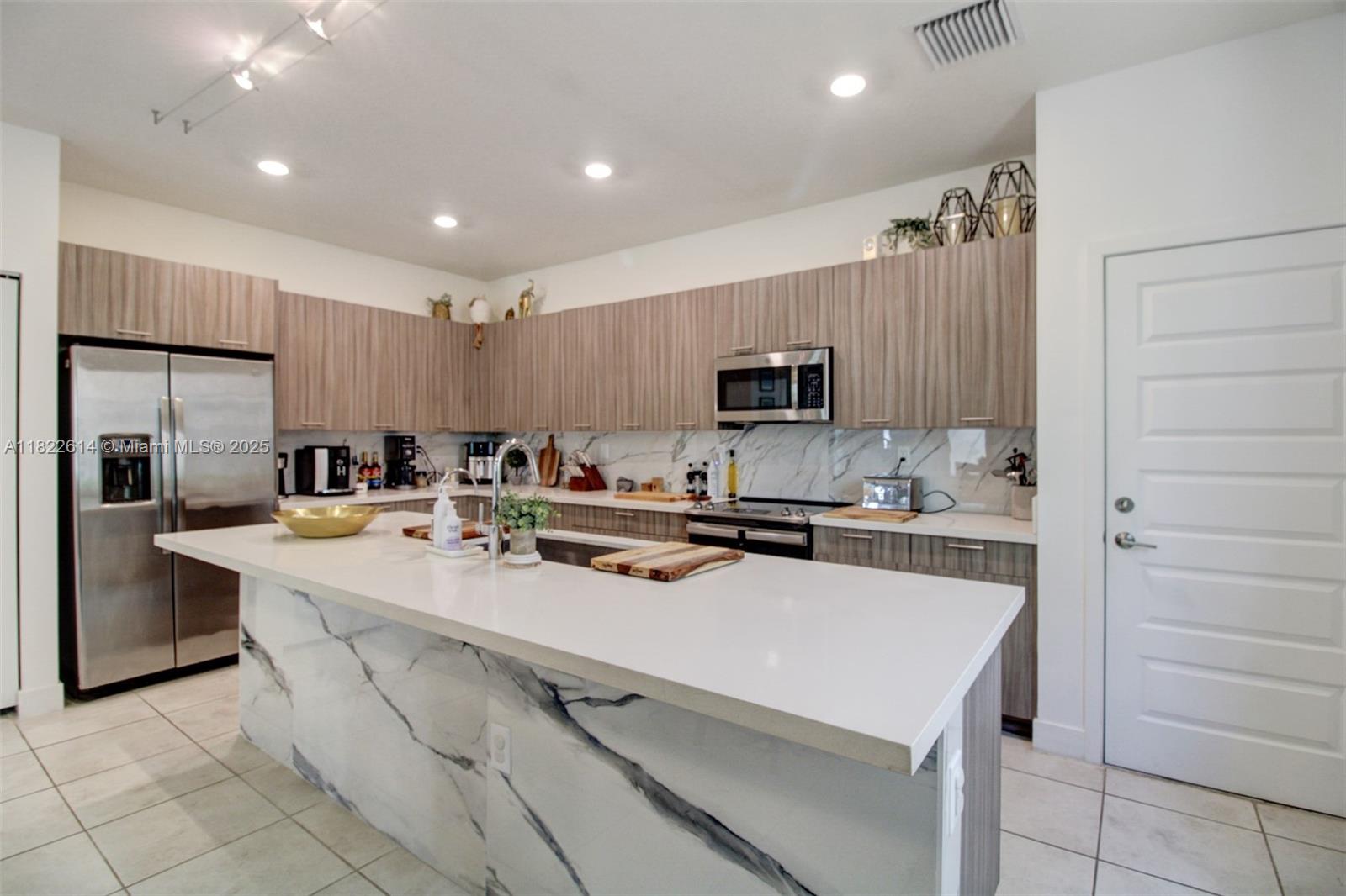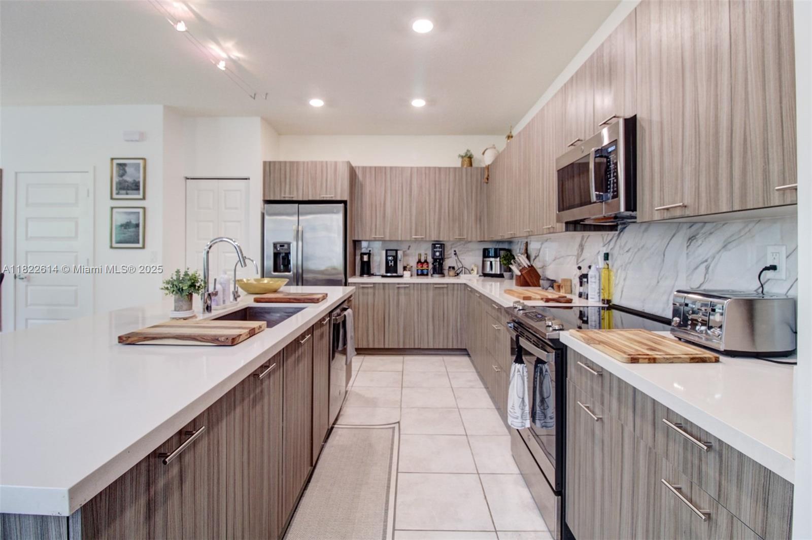 WALK to Downtown Doral Charter Elementary School. Welcome to Urbana at Downtown Doral, a luxury corner tri-level townhome featuring 4 bedrooms, 2 full bathrooms, 2 half baths, and a spacious 2-car garage. Enjoy an open layout with a modern kitchen, oversized island, and plenty of cabinetry. A versatile loft/addi. room opens to a private rooftop patio with a built-in barbecue perfect for entertaining family and friends. Located just blocks from the upcoming Trump International Towers, and close to top-rated schools, dining, shops, parks, golf courses, and entertainment. Residents enjoy resort-style amenities, including a clubhouse, indoor basketball court, gym, running track, splash pad, pool, and event spaces
