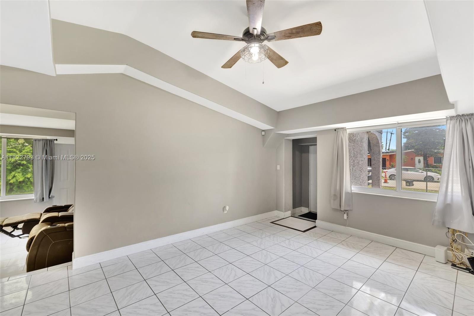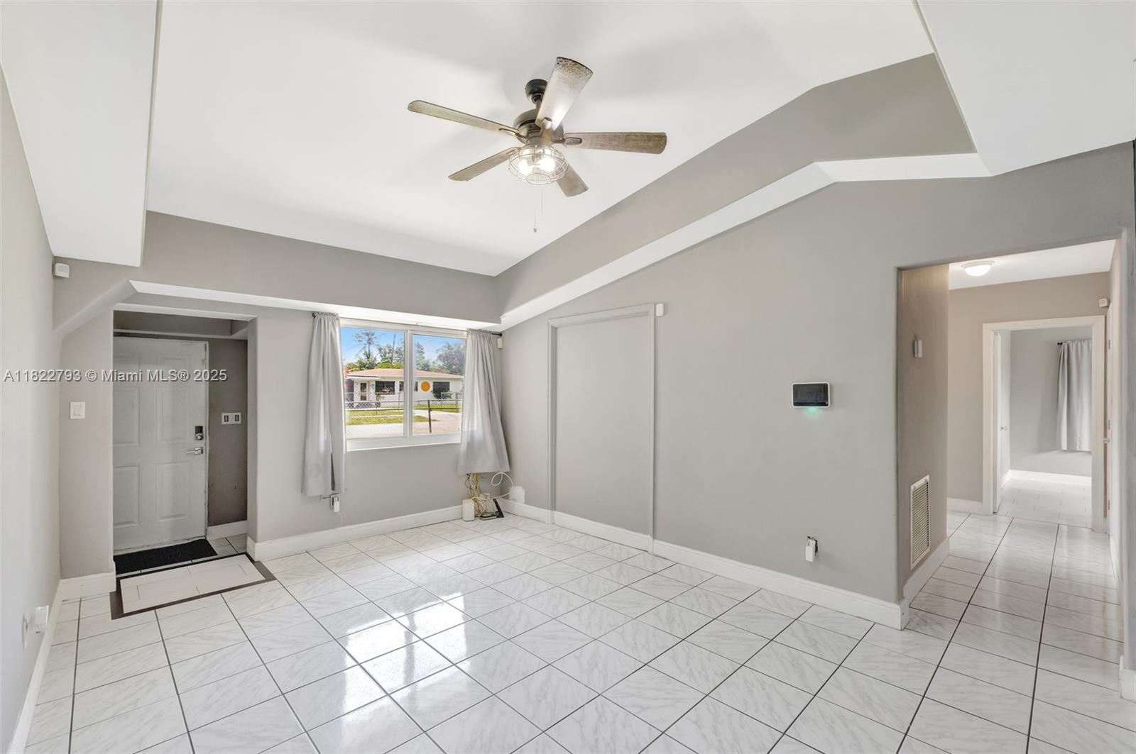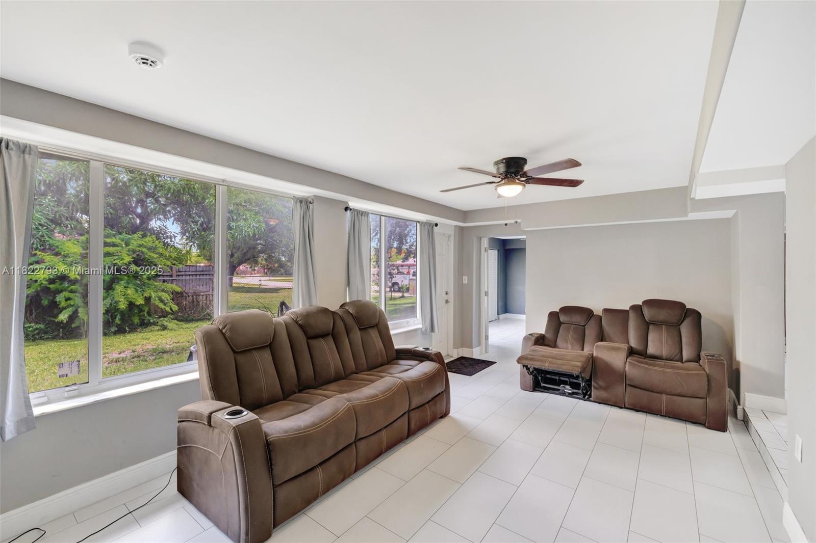 Spacious open floor plan with desirable triple-split bedroom layout, perfect for privacy and flexibility! This maintained home features impact windows and doors throughout for a peace of mind, plus a sprinkler system, and saltwater filtration for added efficiency. The fenced yard is perfect for kids or pets, and a large lot offers plenty of room to add a pool. The enclosed carport provides versatile space - use as additional storage, a home office, or explore rental income potential. New electrical lines are being installed underground in the neighborhood and were just installed at the property. Ideally located to schools, major highways, shopping, and more. Don't miss this versatile and secure home with room to grow and earn! **Refrigerator does not convey**