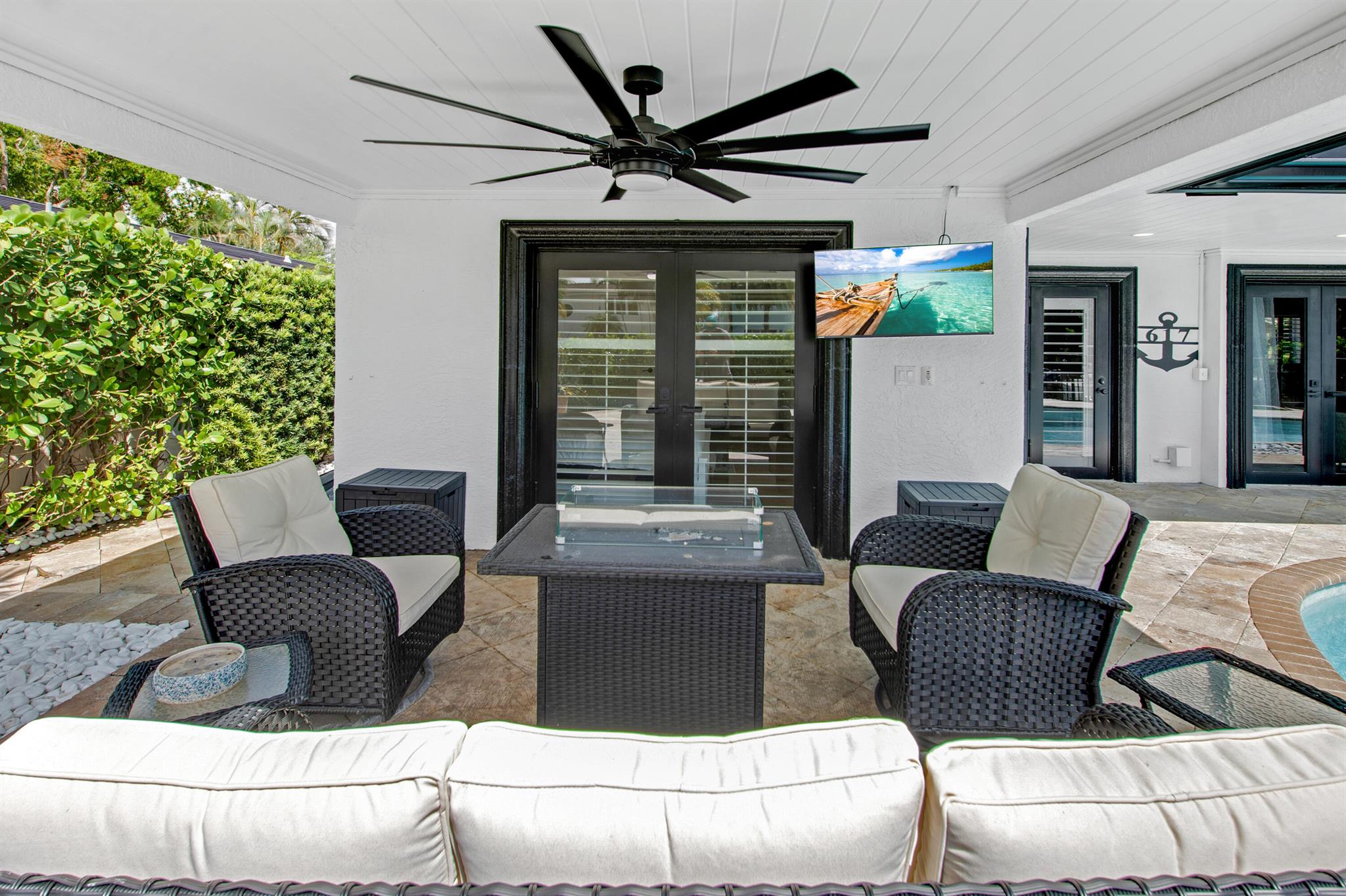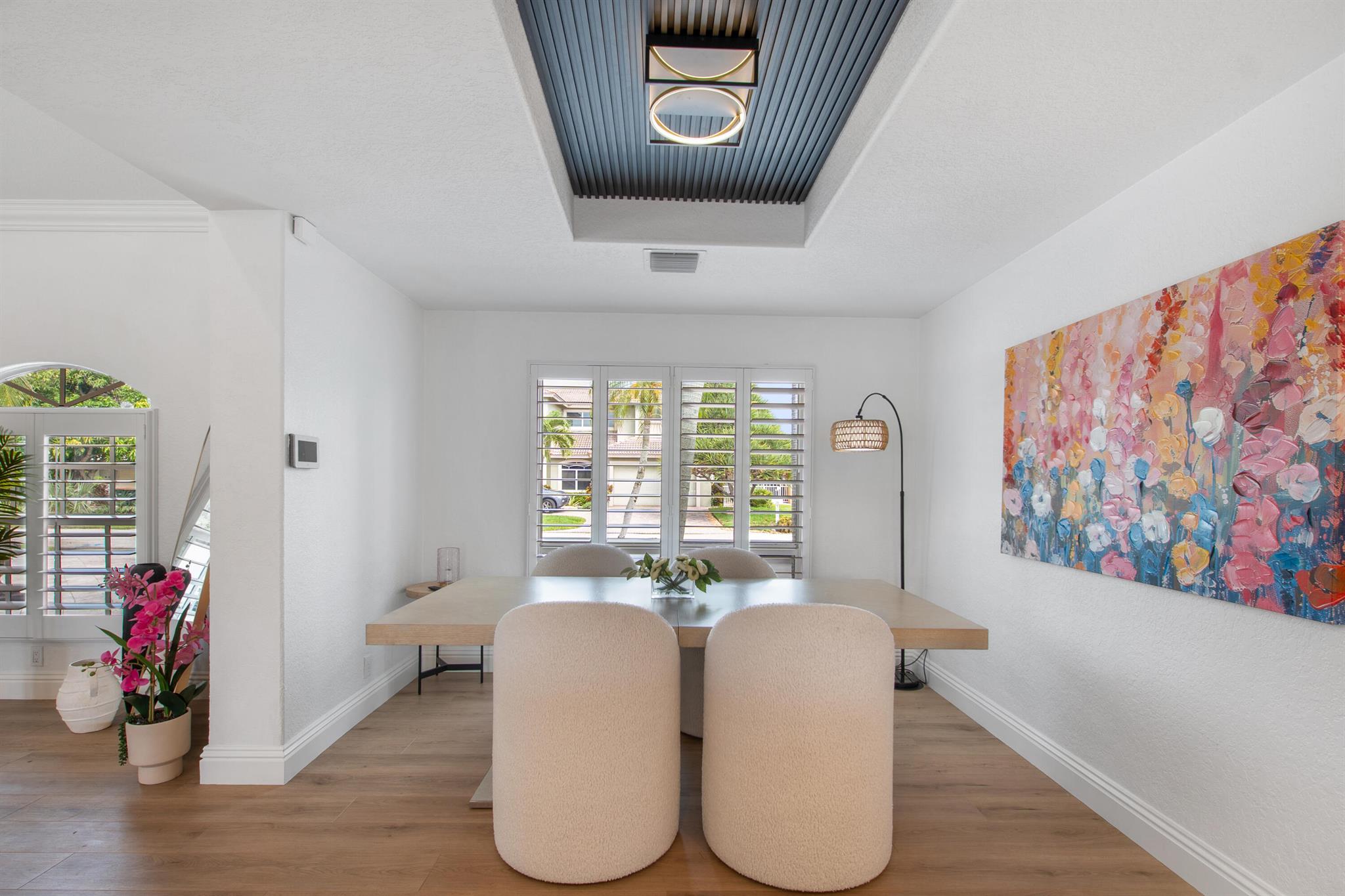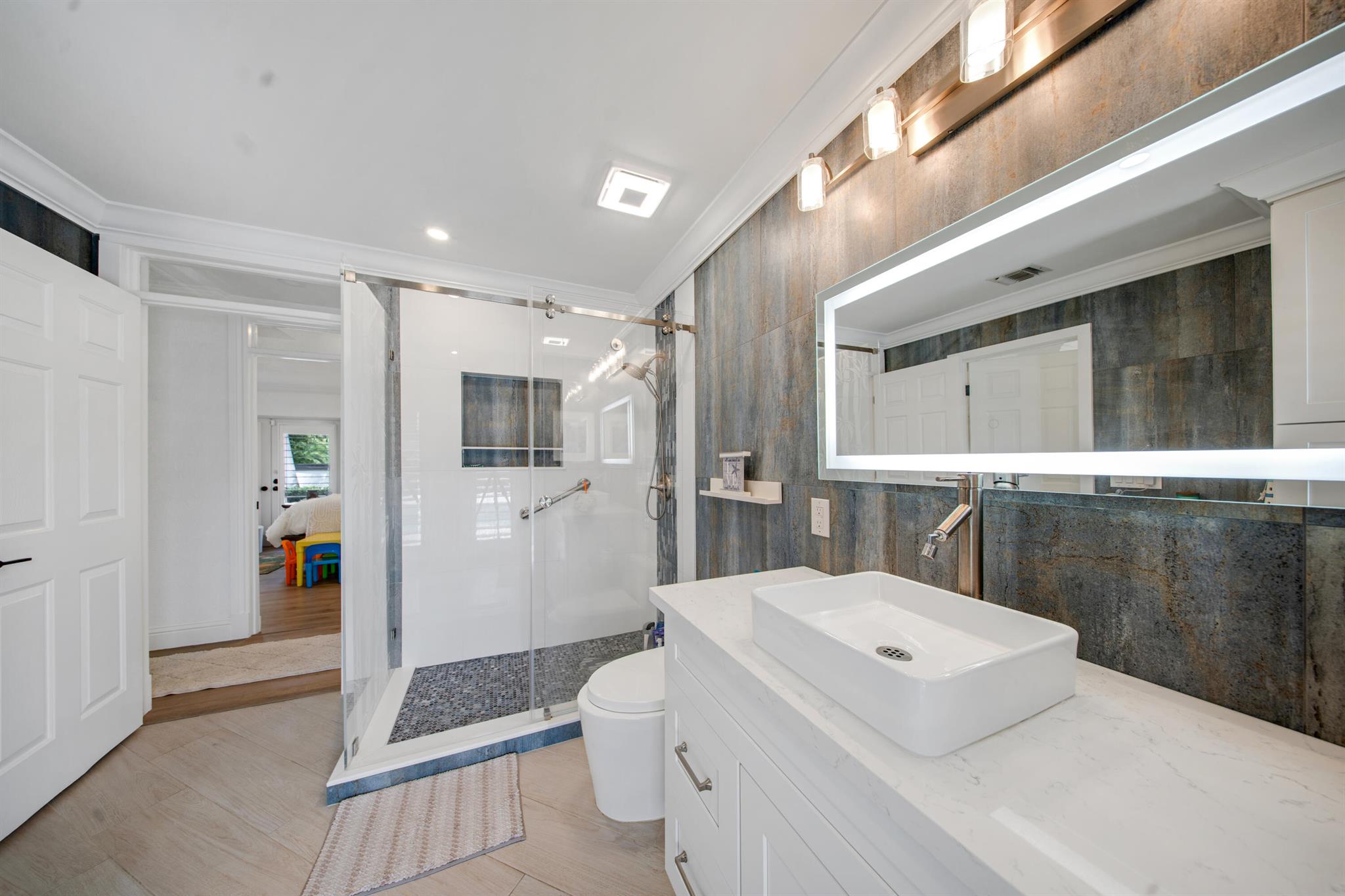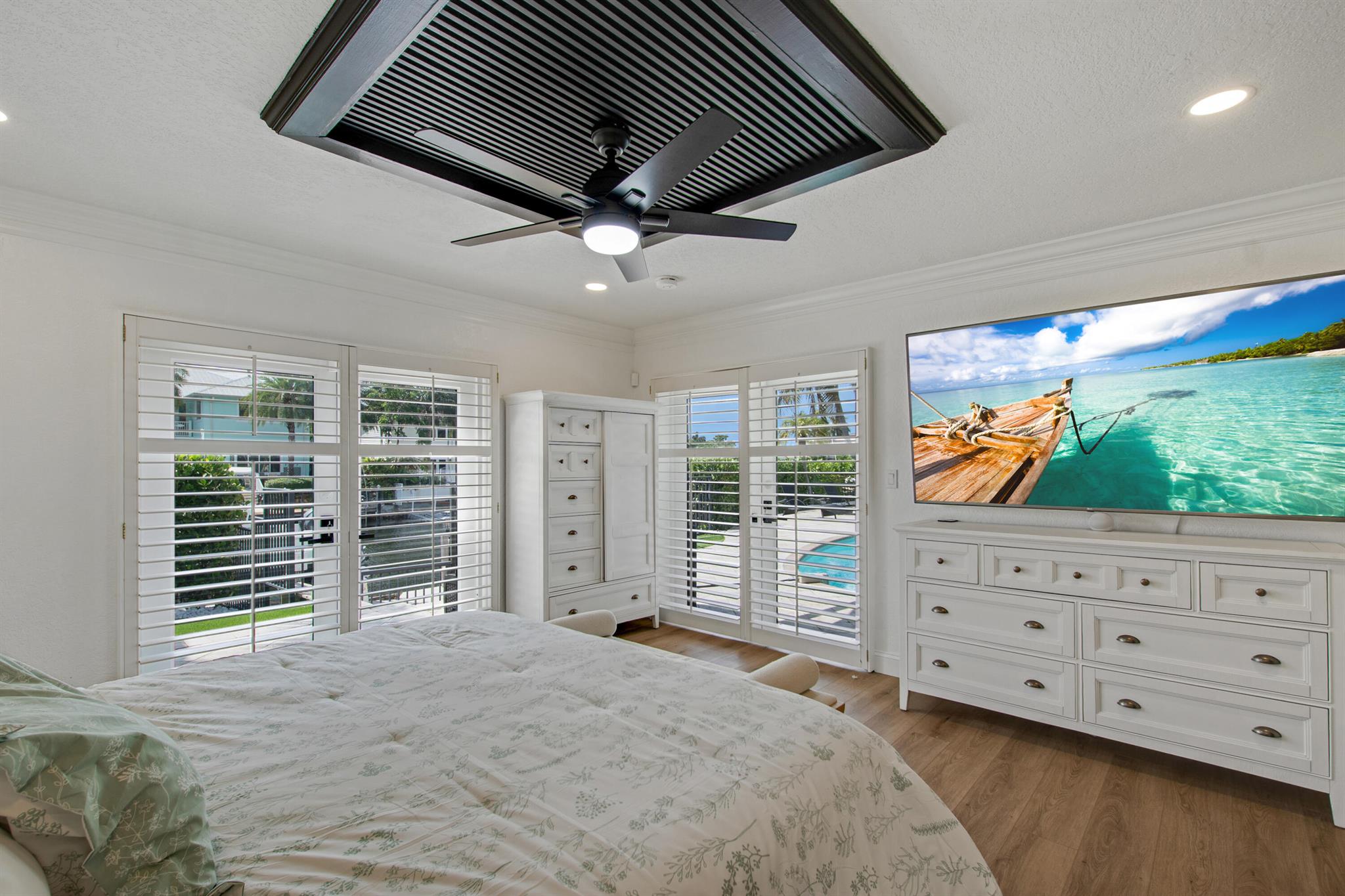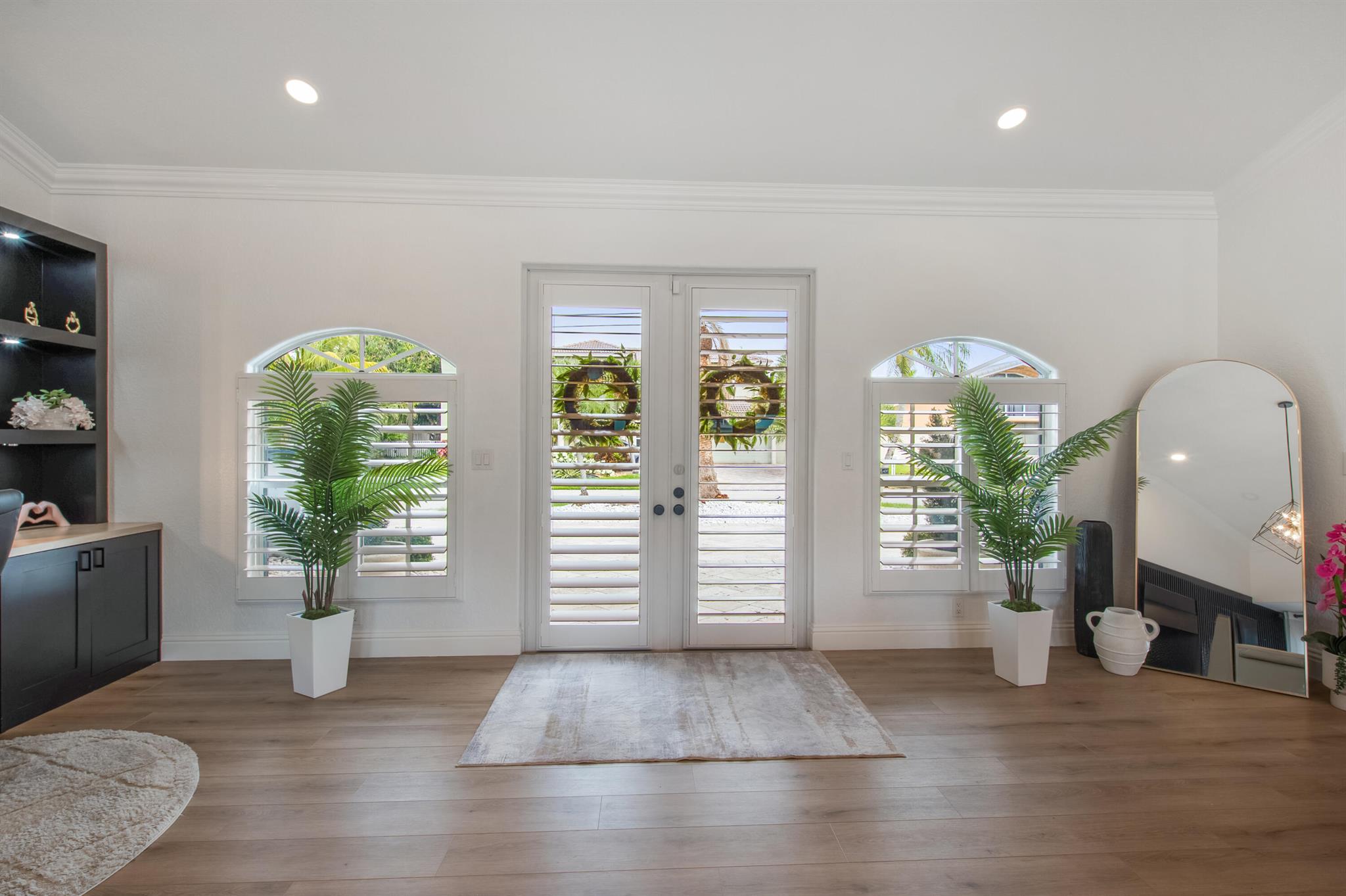 This beautifully redesigned estate in Venetian Isles offers 90 feet of waterfront and a private dock, ideal for those who desire the ultimate in coastal living. Highlights include dual primary suites, elegant marble and modern porcelain tile flooring, refined millwork, plantation shutters, and soaring ceilings. French doors in every room create a seamless indoor-outdoor flow, opening onto expansive terraces that embrace the waterfront setting.