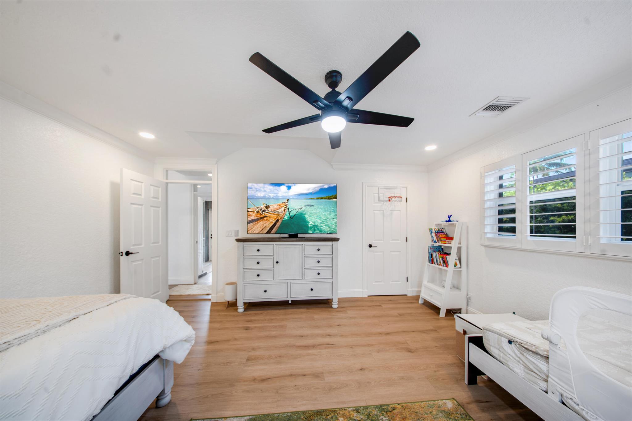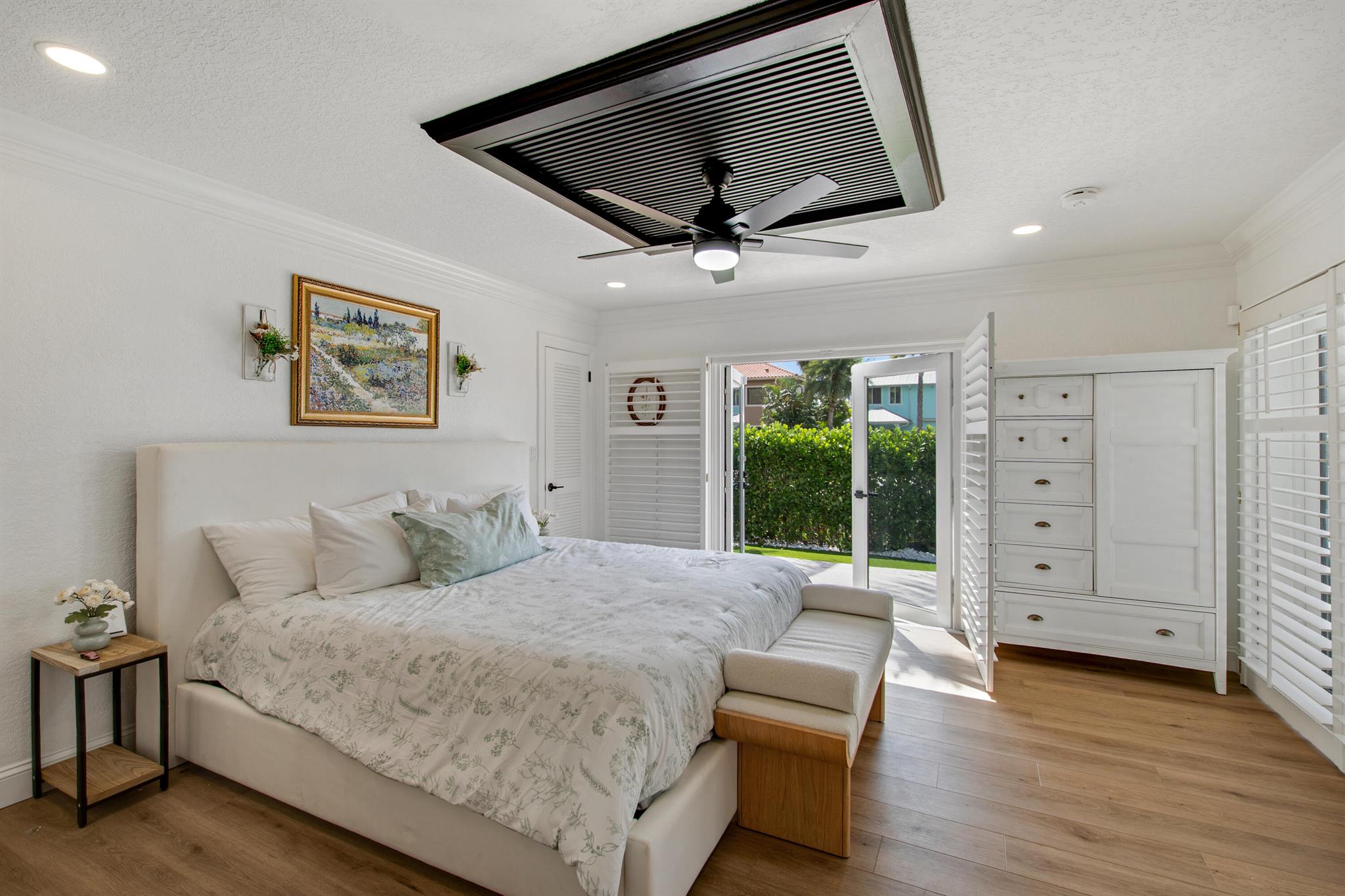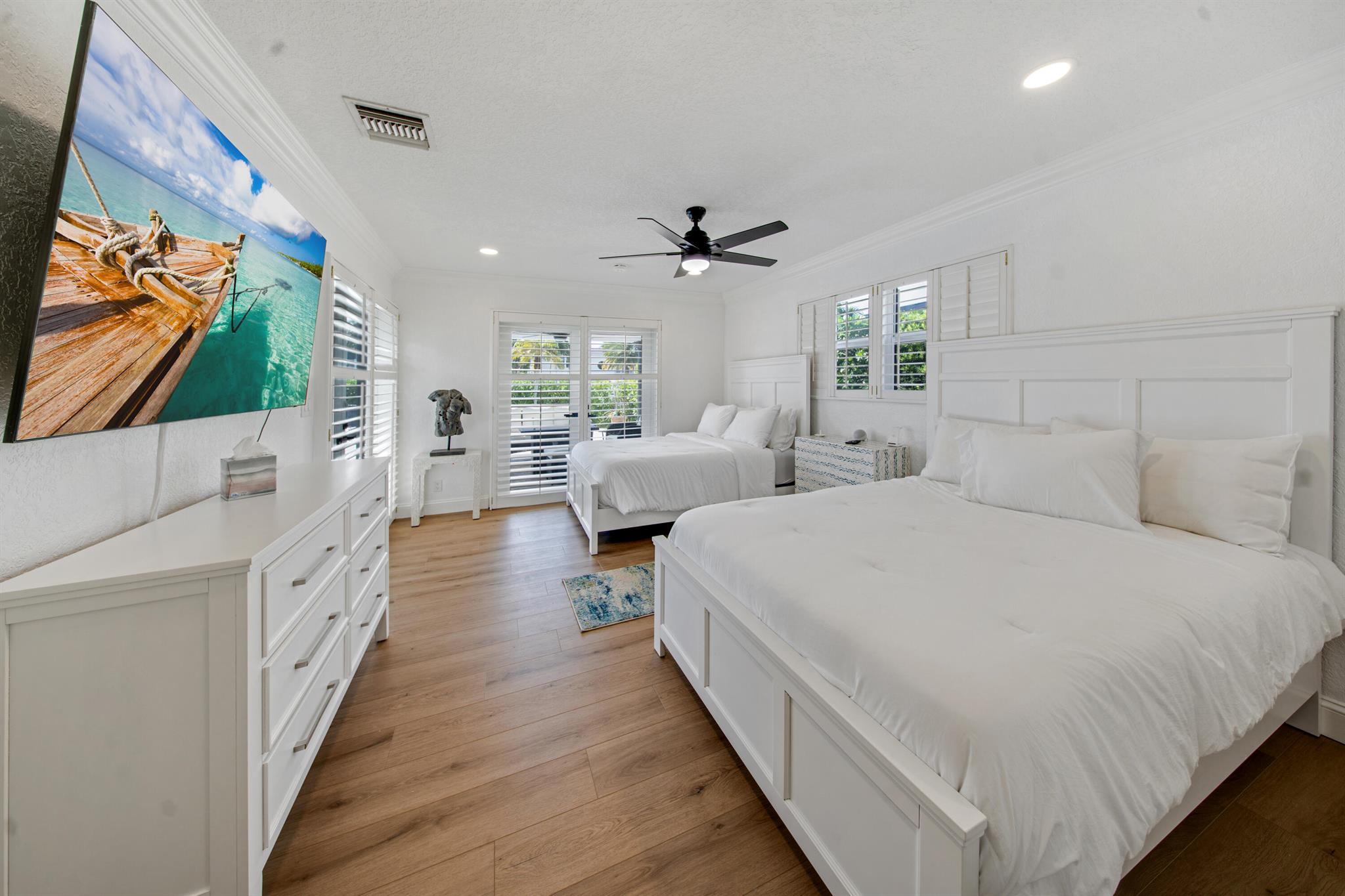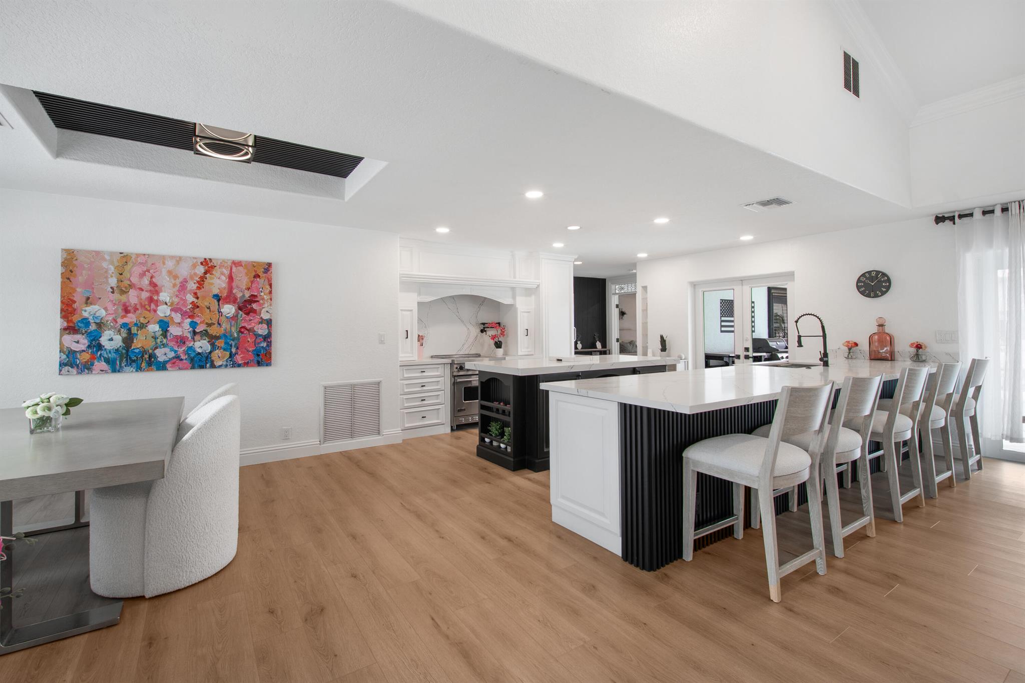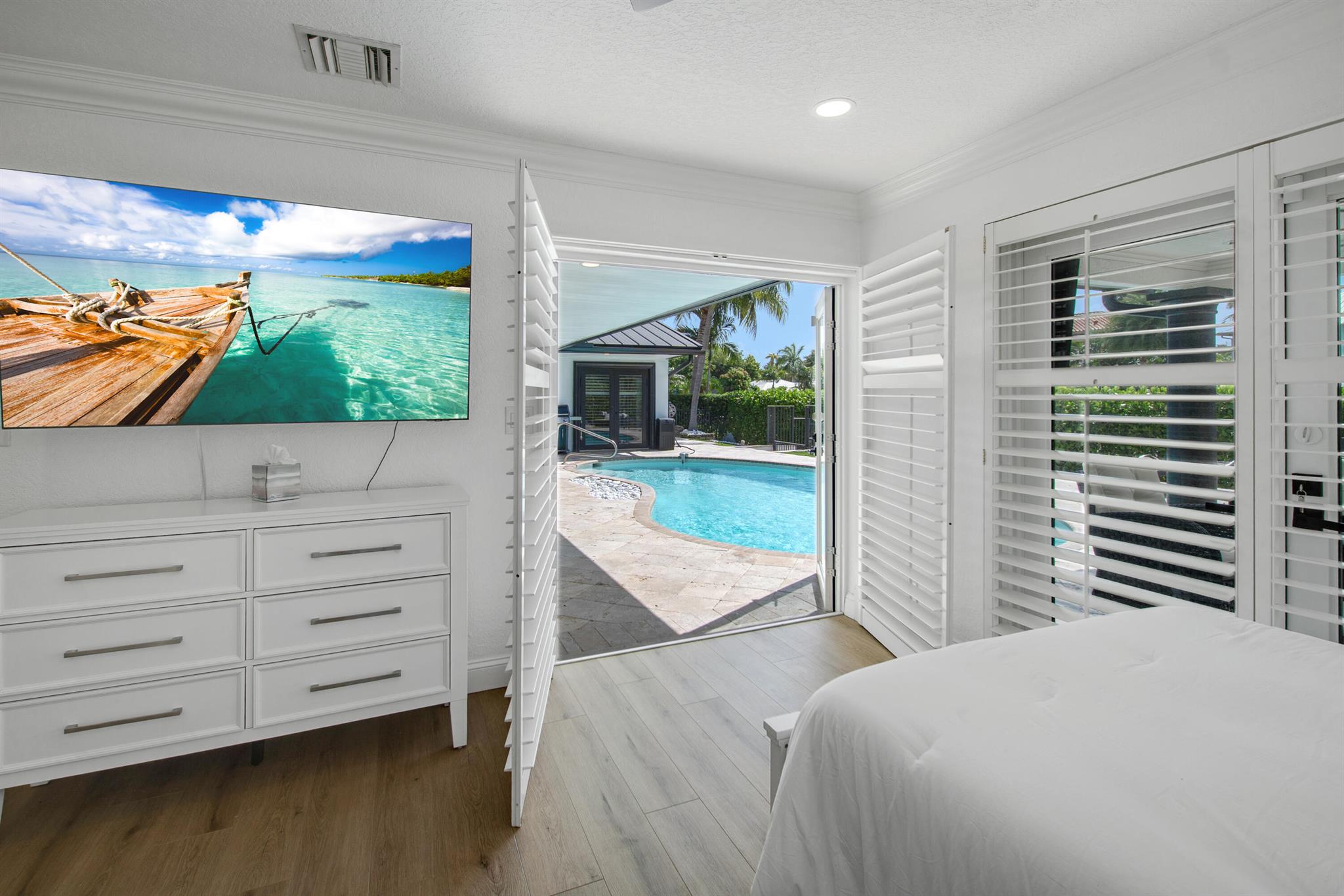 This beautifully redesigned estate in Venetian Isles offers 90 feet of waterfront and a private dock, ideal for those who desire the ultimate in coastal living. Highlights include dual primary suites, elegant marble and modern porcelain tile flooring, refined millwork, plantation shutters, and soaring ceilings. French doors in every room create a seamless indoor-outdoor flow, opening onto expansive terraces that embrace the waterfront setting.