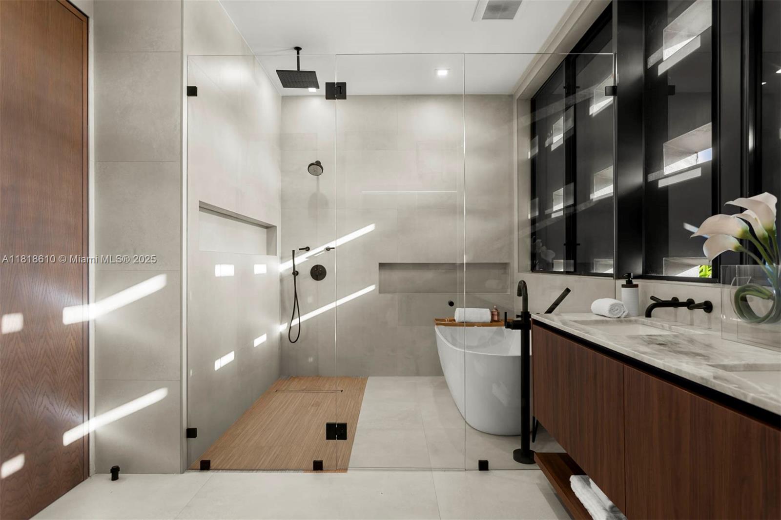 A new-construction architectural gem on a corner lot in Coconut Grove’s lush tropical enclave. Spanning over 4,200 SF, this modern residence offers refined living with a spacious chef’s kitchen, 4-car garage, and a rooftop terrace with stunning sunrise and sunset views. The expansive primary suite features a spa-inspired bath with soaking tub, rain shower, and dual vanities. All bedrooms are ensuite and generously sized. Enjoy exceptional proximity to fine dining, shops, top rated schools and Brickell. A rare chance to own a striking modern home in Miami’s most coveted neighborhood.