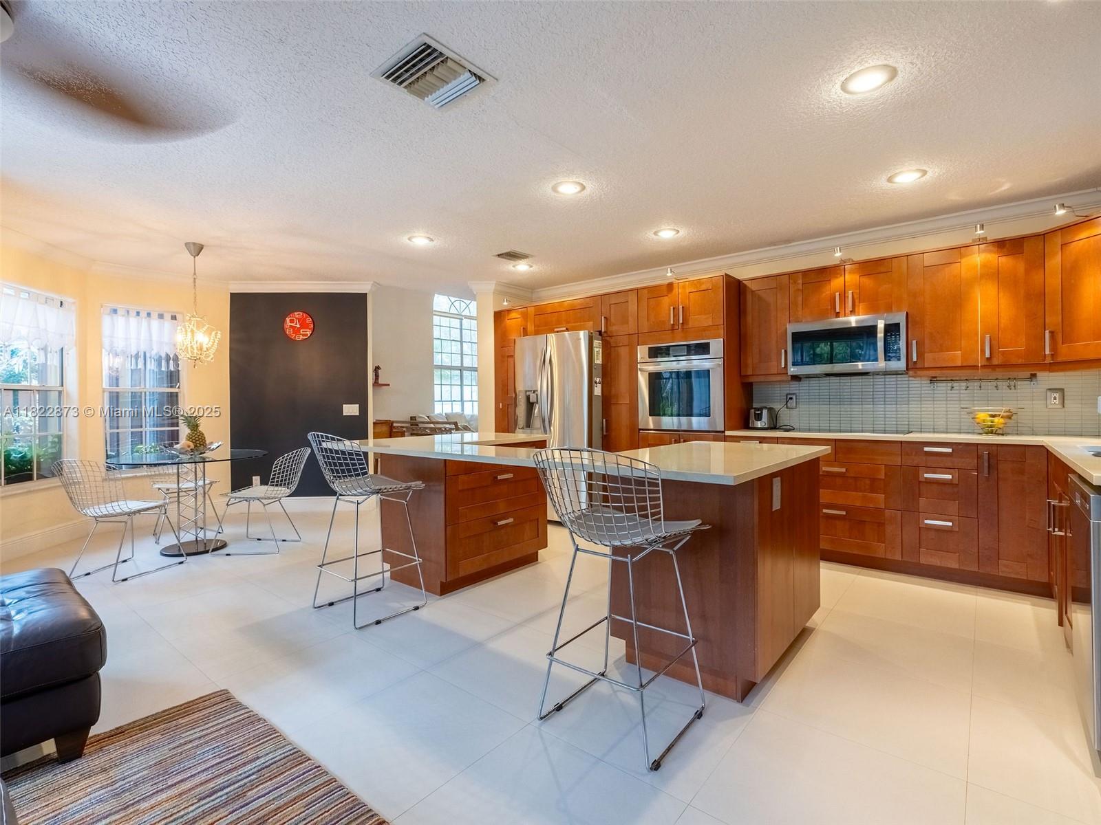 Beautiful 2-story, 4-bedroom/3 bath home WITH NEW ROOF NOW BEING INSTALLED, in Embassy Lakes, in sought after Cooper City! Grand foyer entry, stunning volume ceilings, and a large and super private fully fenced backyard, perfect for relaxing or entertaining. The remodeled chef's kitchen with St Steel Appl and quartz counters, next to the family room and breakfast area, and the formal dining room, and living room offer an amazing floor plan. 1 bedroom and full bathroom on 1st floor, perfect for guests/office space. Huge primary suite on 2nd floor, with sitting area/office space, large walk in closet, and 2 additional bedrooms sharing a Jack & Jill bathroom. Enjoy resort-style living with low HOA fees, and fantastic amenities including pool, gym, tennis, basketball, pickleball and more!