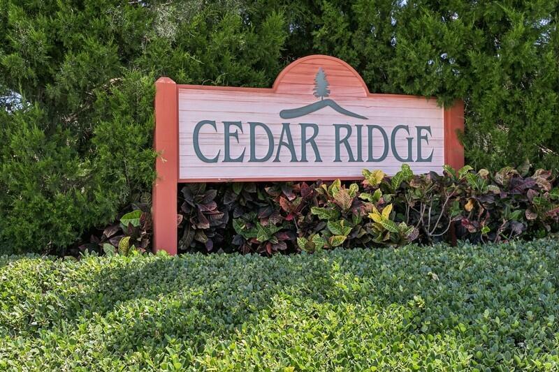 Opportunity to own 3 bedrooms, 2.1 bathrooms end-unit Townhome with 1 car garage in Gated community of Cedar Ridge. This spacious end unit enjoys fully fenced yard with covered patio area ideal for pets and entertaining. The primary suit offers W Exposure with a remarkably oversized walk-in closet. Primary bath has double vanity, large shower and roman tub. Two additional bedrooms share a well-appointed full bath with double sinks and a tub/shower combo. Roof 2022, A/C 2014, Accordion Shutters on 2nd level, Panel shutters down. Ready for your personal TLC and updates. Community pool, playground, preserve areas, lake w/green areas and guest parking. Pet friendly, Investor friendly.