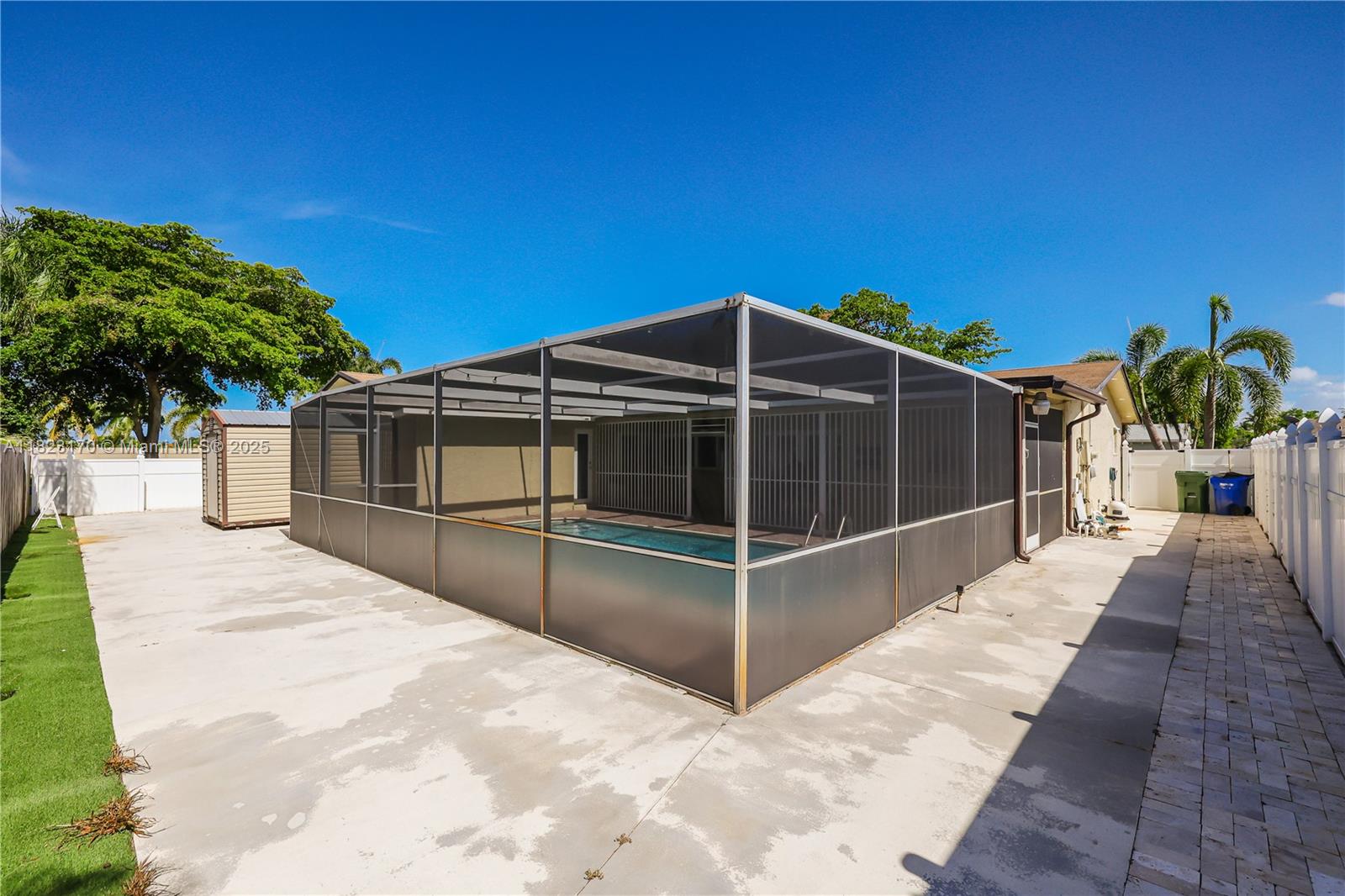 Updated & beautifully designed 4 bedroom, 2 bathroom move in ready SFH in Pembroke Pines. Home is all on one level with lots of privacy, spacious open floor plan, updated kitchen, appliances included. Large outdoor patio featuring a covered pool is great for entertaining. Fenced in yard with shed. 2 car garage. BRAND NEW ROOF IN 2025 WILL BE COMPLETED BY CLOSING. Close to downtown Hollywood, Hollywood Beach and shopping. Must see property!