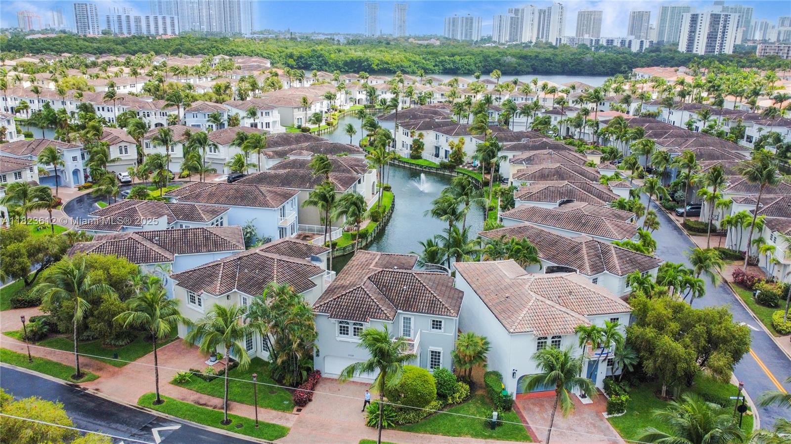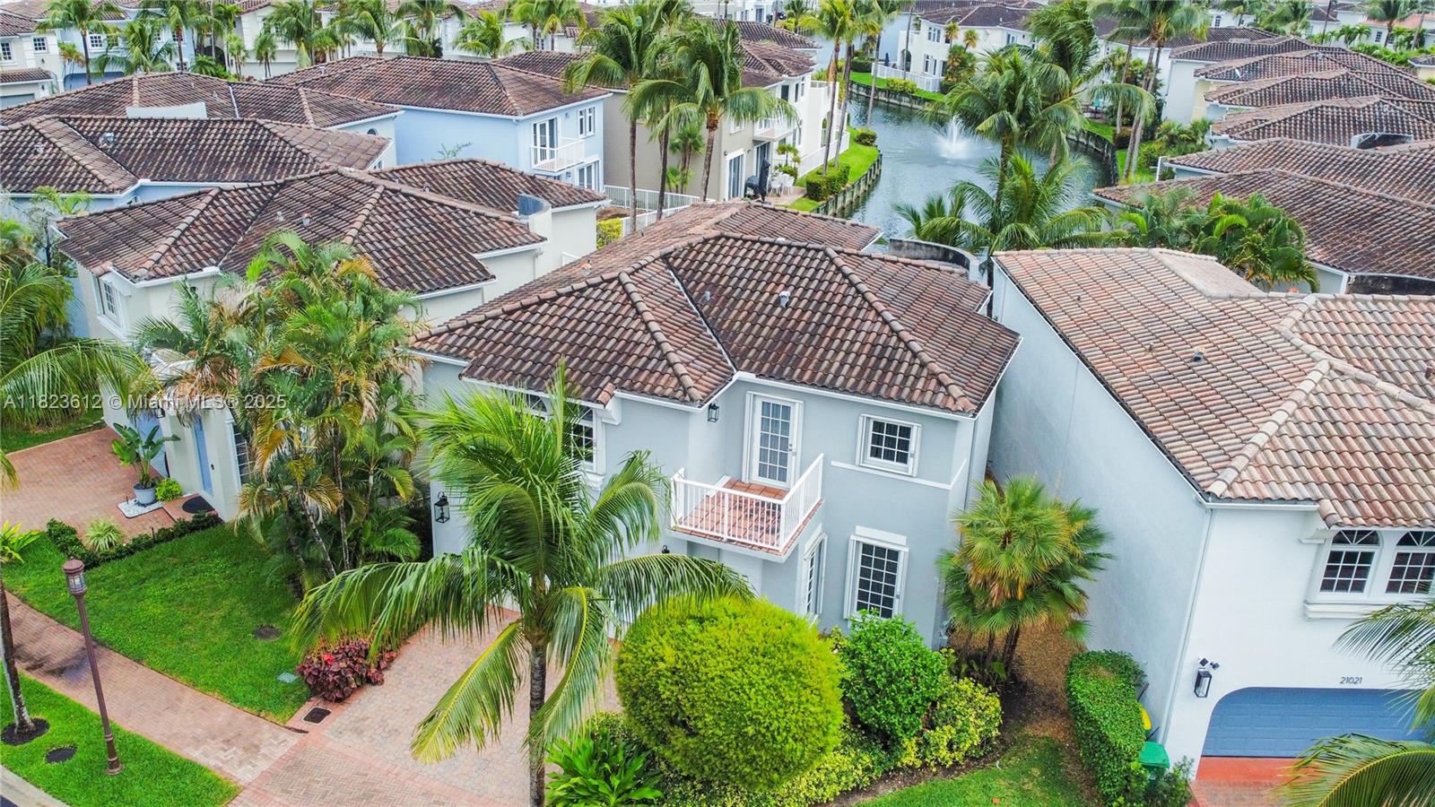 Welcome to this 3-bedroom, 2.5-bathroom home in prestigious gated community of Aventura Lakes. A unique location, with views overlooking a serene canal and fountain. Offering over 2,200 sq. ft. of living space, this residence features tile flooring throughout the first level and wood flooring on the second level. The primary suite boasts a large walk-in closet with built-in cabinetry; additional bedrooms also offer custom-built storage. A full-size laundry room, and accordion hurricane shutters provide peace of mind. Home is within walking distance to Chabad and Charter Sofer High School. Amenities including two swimming pools, gym and more. Great home with 24/7 security, on-site management, and a prime location near top-rated schools, world-class shopping, dining, and beautiful beaches.
