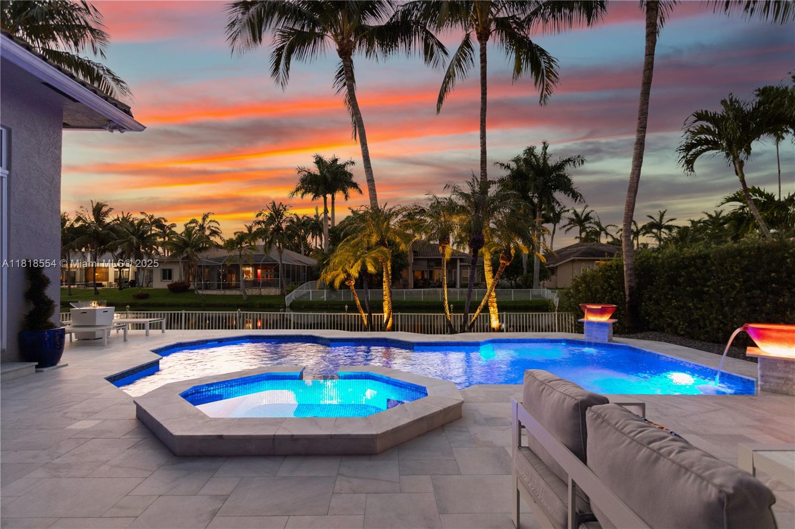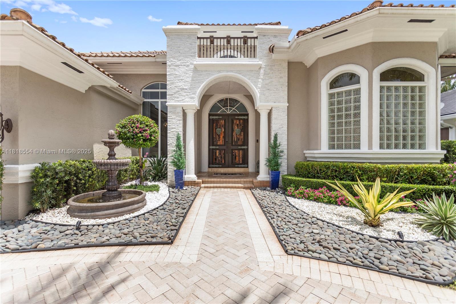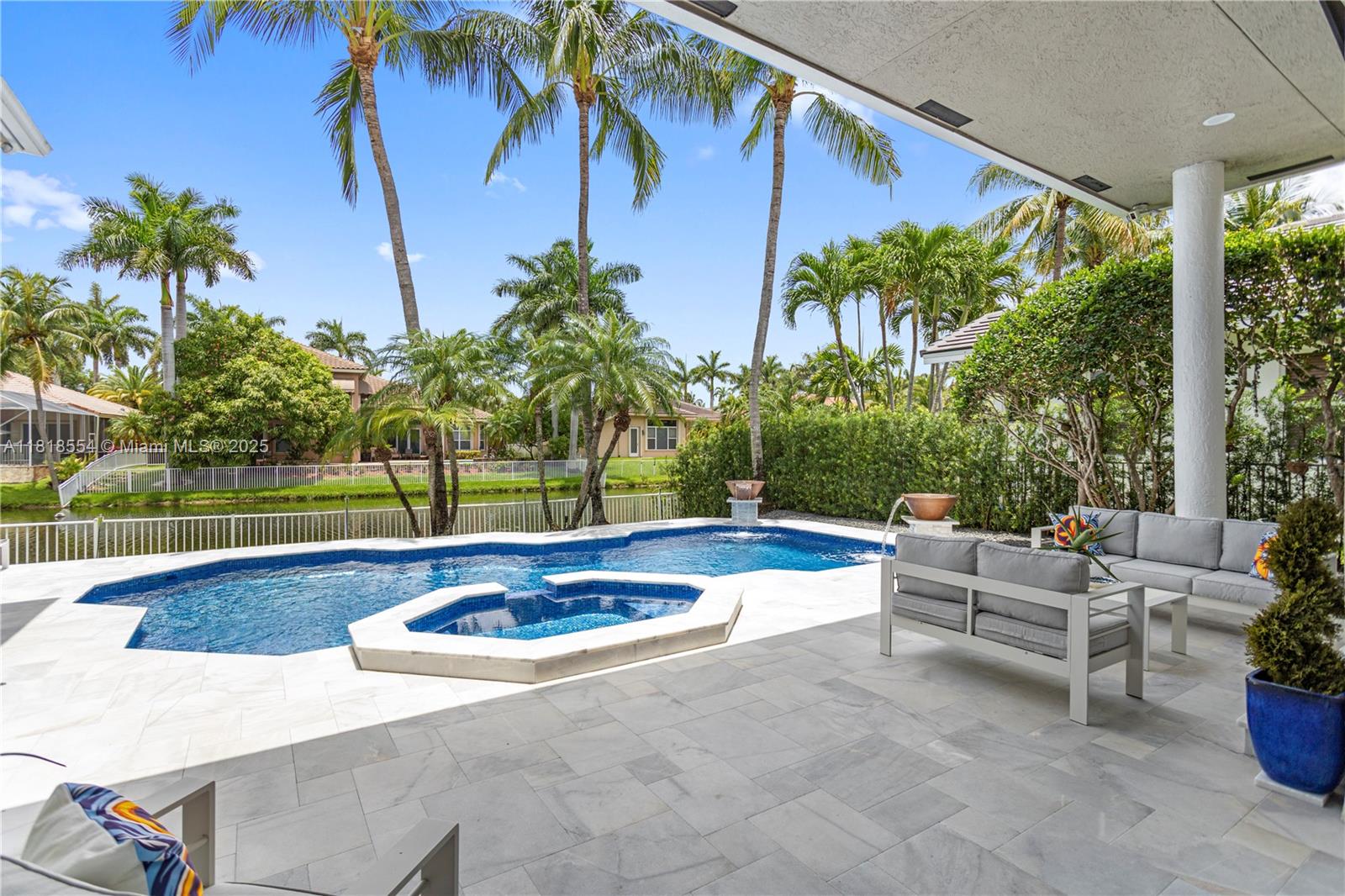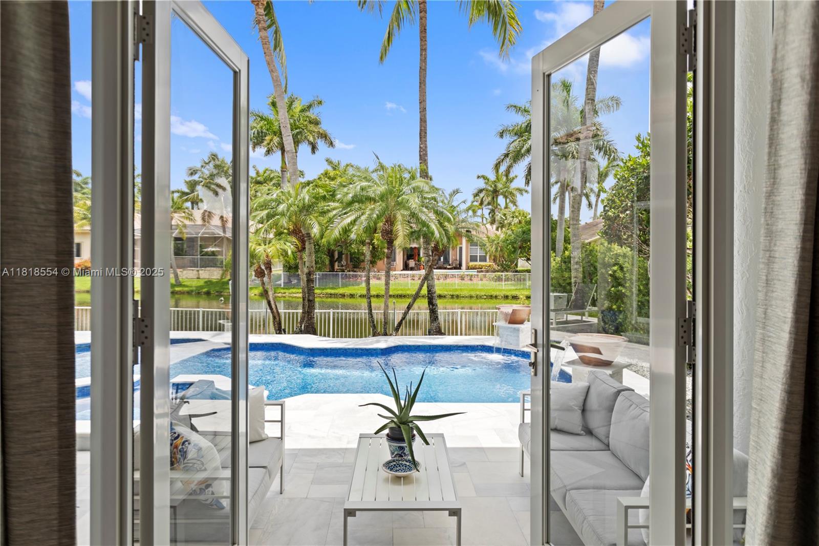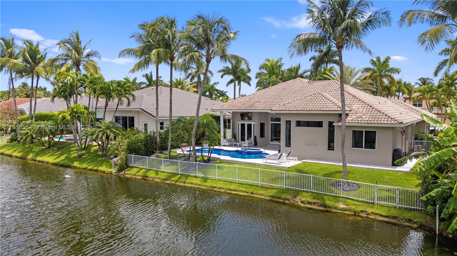 A Tropical Paradise awaits you!! This modernized 4 bed, 3 bath residence with high impact glass and doors boasts 2,762sf of living space designed for comfort and elegance. The customized glass-tile saltwater pool sparkles in the sun while the lavish landscaping, a lake view and access to an array of state of the art clubhouse amenities combine to offer the ultimate lifestyle. Gourmet Kitchen is complete with a built-in Bosch coffee/espresso machine, induction cooktop and 3 ovens. 3 car garage and a circular driveway add convenience and ample parking. This private community offers luxury amenities, including championship tennis courts, pickle ball, fitness center, pool and spa.