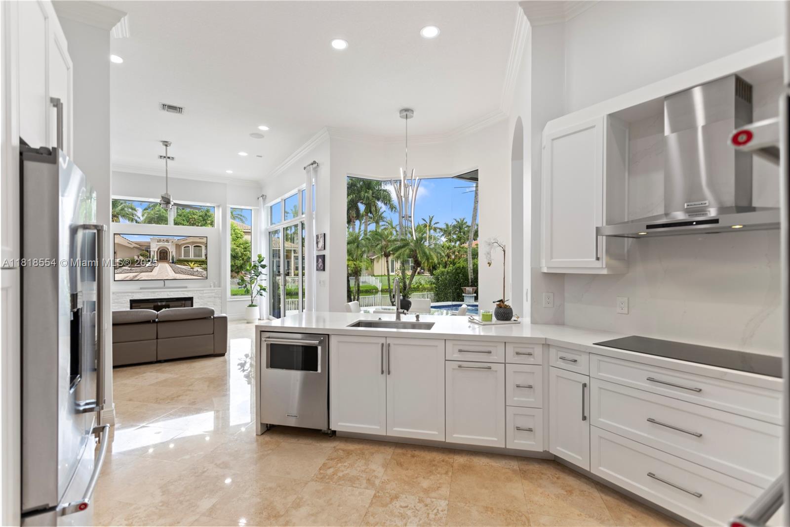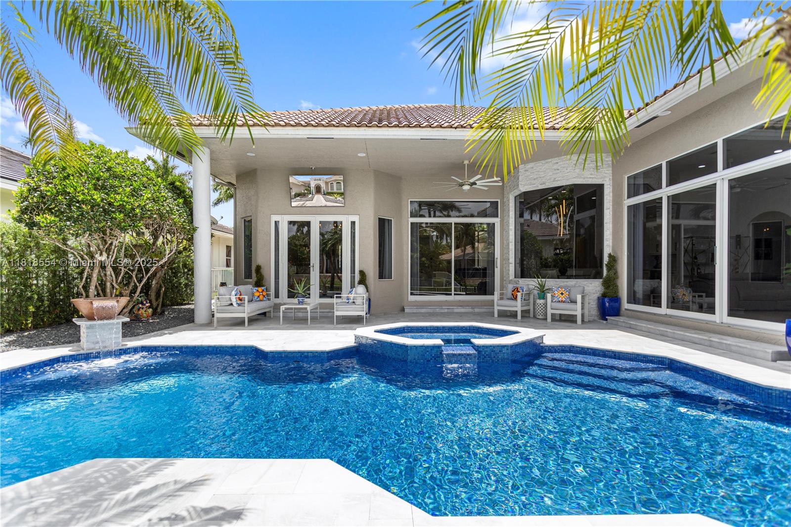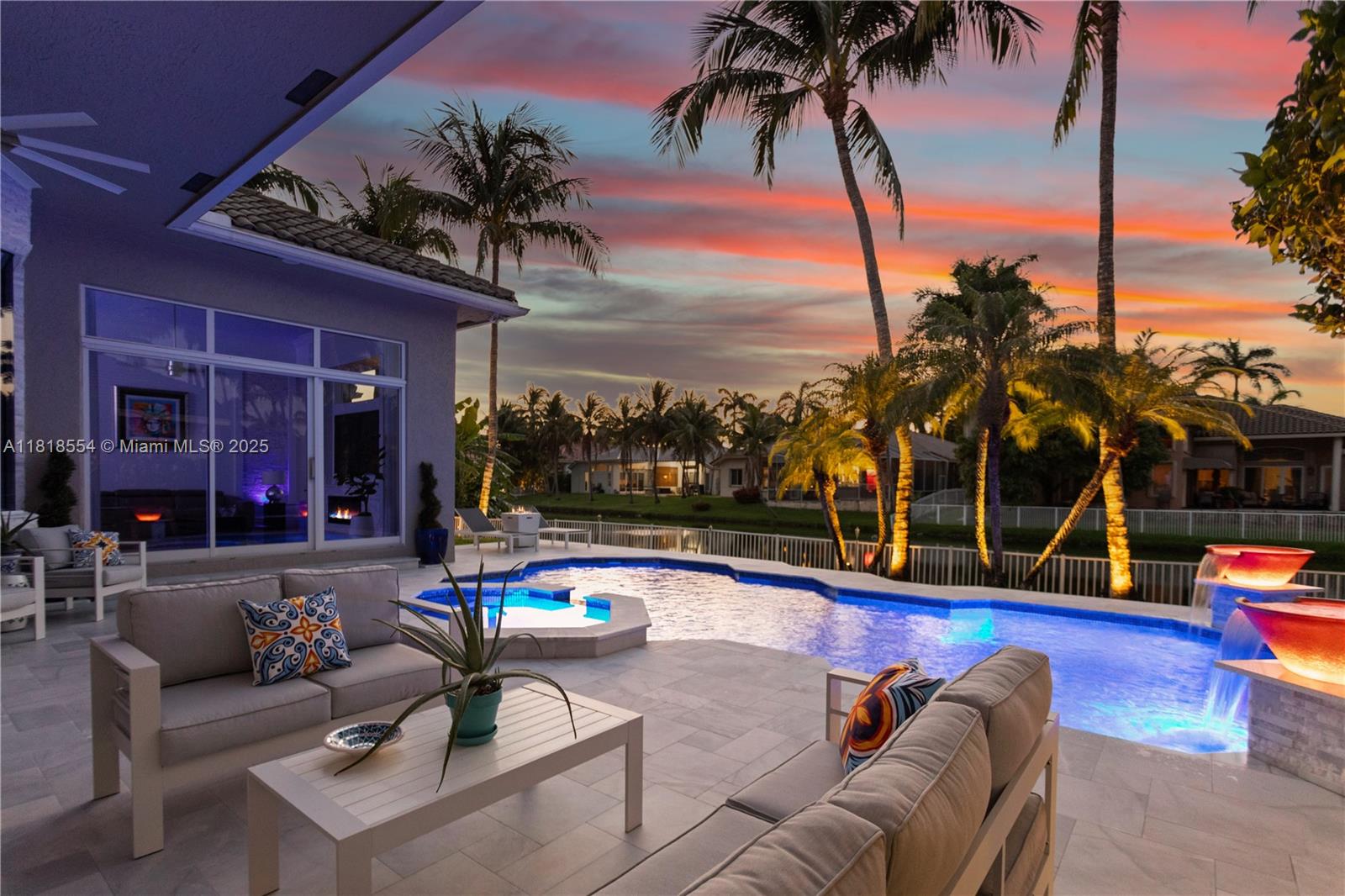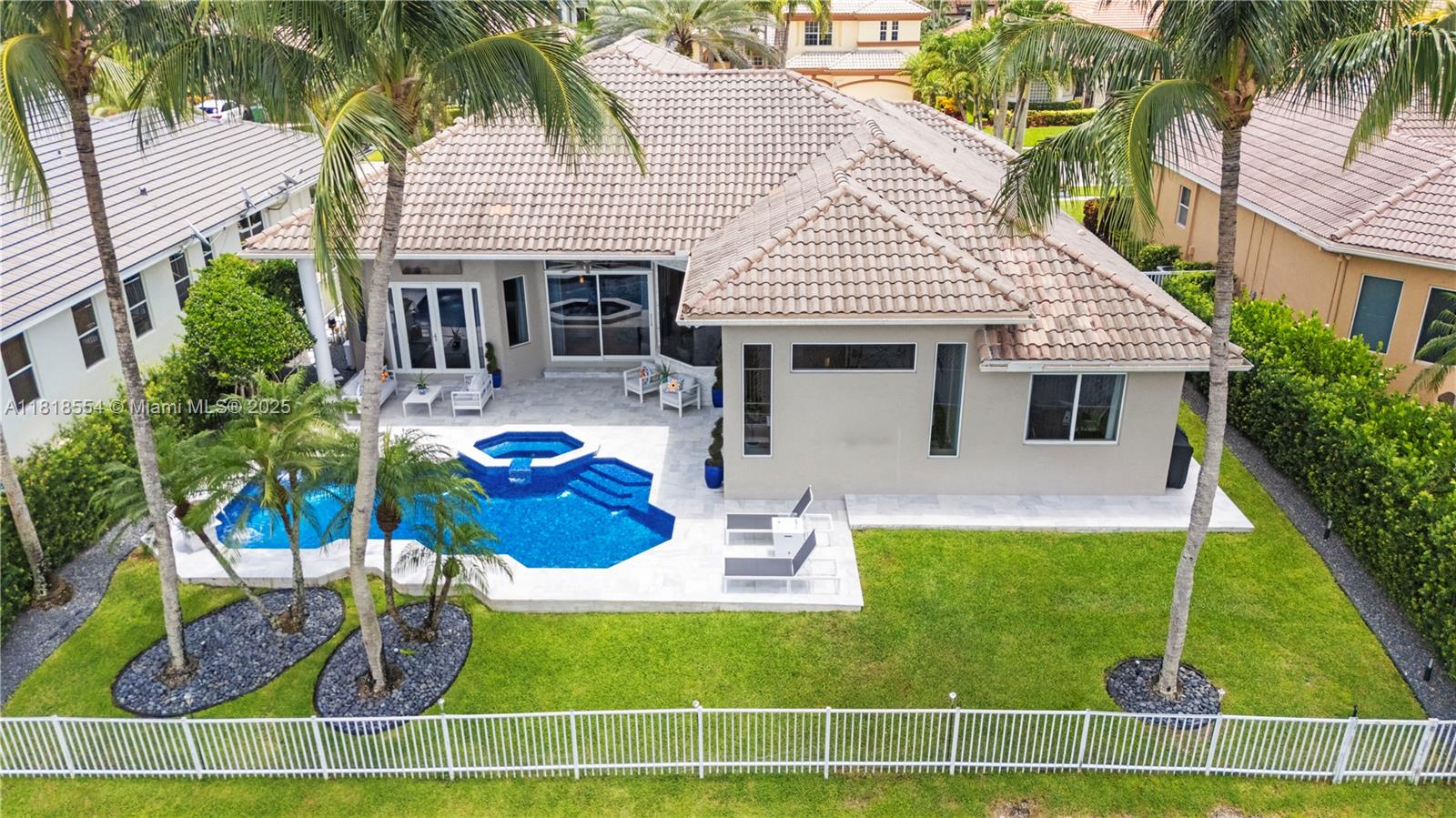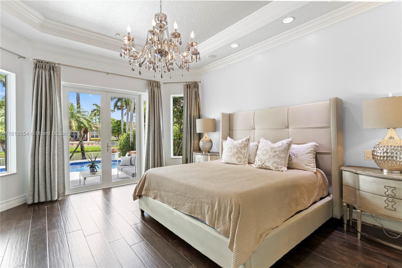 A Tropical Paradise awaits you!! This modernized 4 bed, 3 bath residence with high impact glass and doors boasts 2,762sf of living space designed for comfort and elegance. The customized glass-tile saltwater pool sparkles in the sun while the lavish landscaping, a lake view and access to an array of state of the art clubhouse amenities combine to offer the ultimate lifestyle. Gourmet Kitchen is complete with a built-in Bosch coffee/espresso machine, induction cooktop and 3 ovens. 3 car garage and a circular driveway add convenience and ample parking. This private community offers luxury amenities, including championship tennis courts, pickle ball, fitness center, pool and spa.