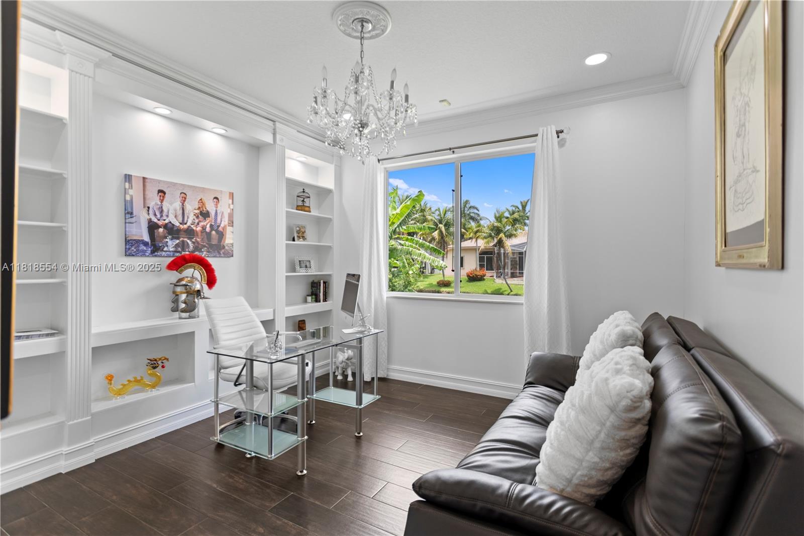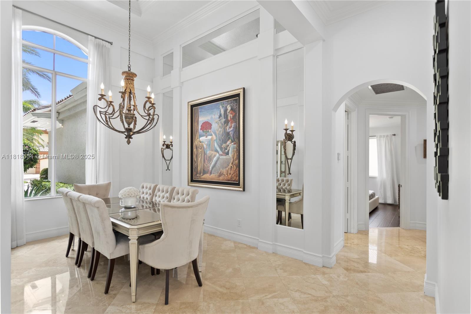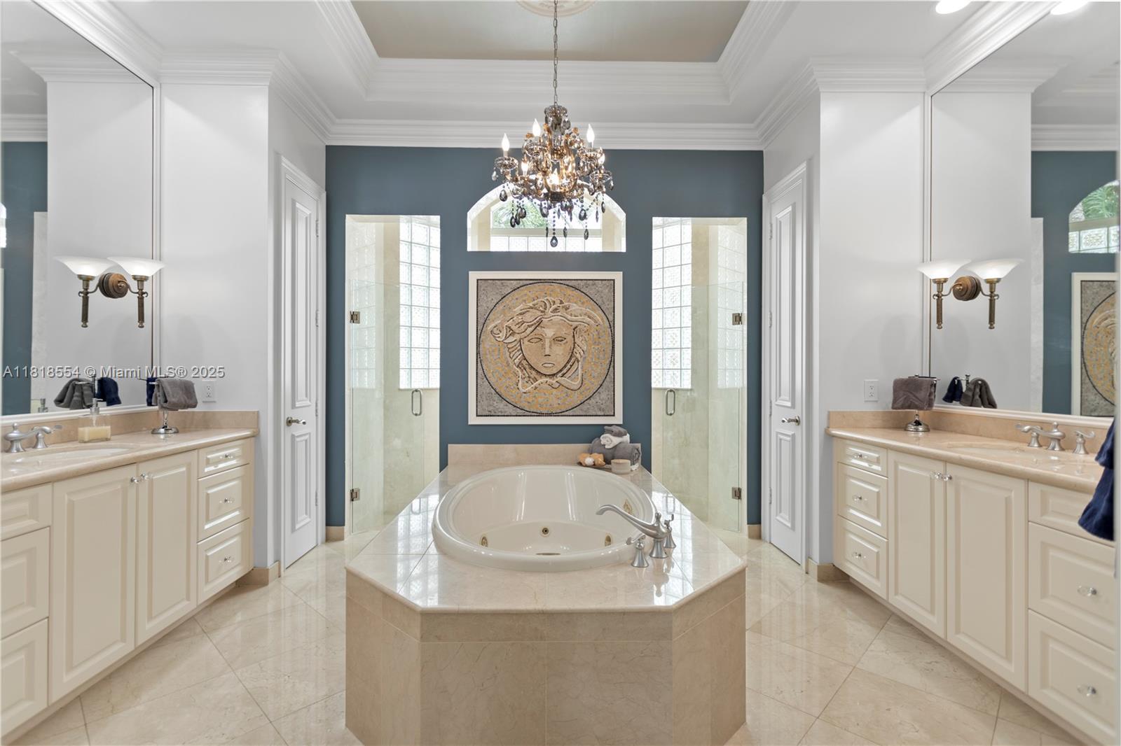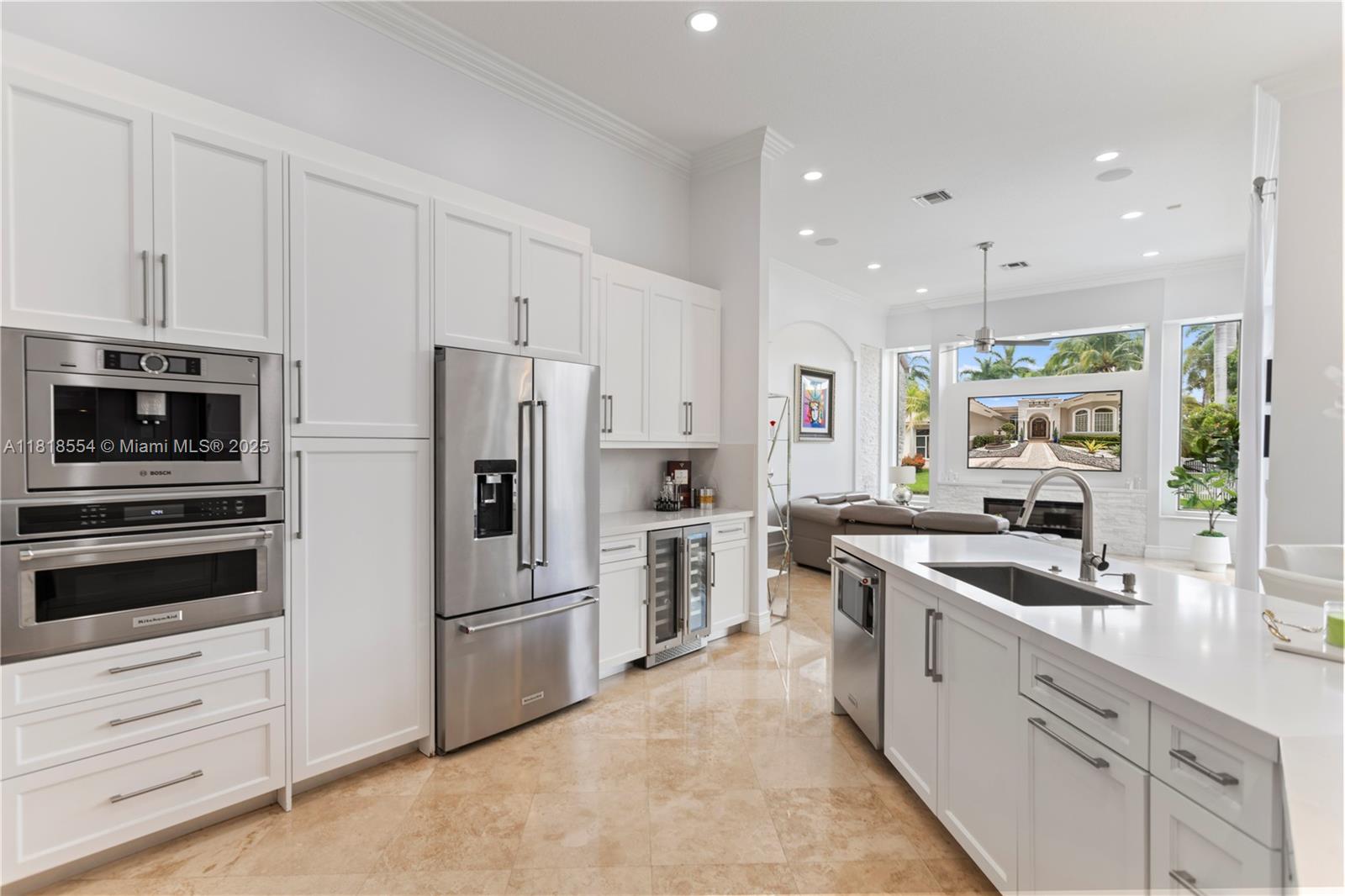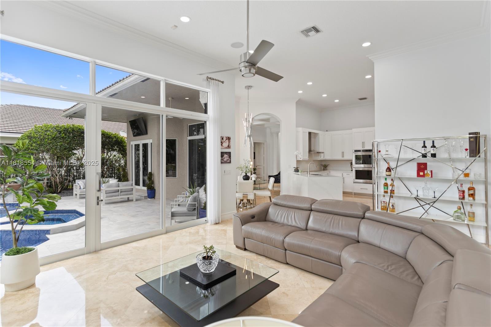 A Tropical Paradise awaits you!! This modernized 4 bed, 3 bath residence with high impact glass and doors boasts 2,762sf of living space designed for comfort and elegance. The customized glass-tile saltwater pool sparkles in the sun while the lavish landscaping, a lake view and access to an array of state of the art clubhouse amenities combine to offer the ultimate lifestyle. Gourmet Kitchen is complete with a built-in Bosch coffee/espresso machine, induction cooktop and 3 ovens. 3 car garage and a circular driveway add convenience and ample parking. This private community offers luxury amenities, including championship tennis courts, pickle ball, fitness center, pool and spa.
