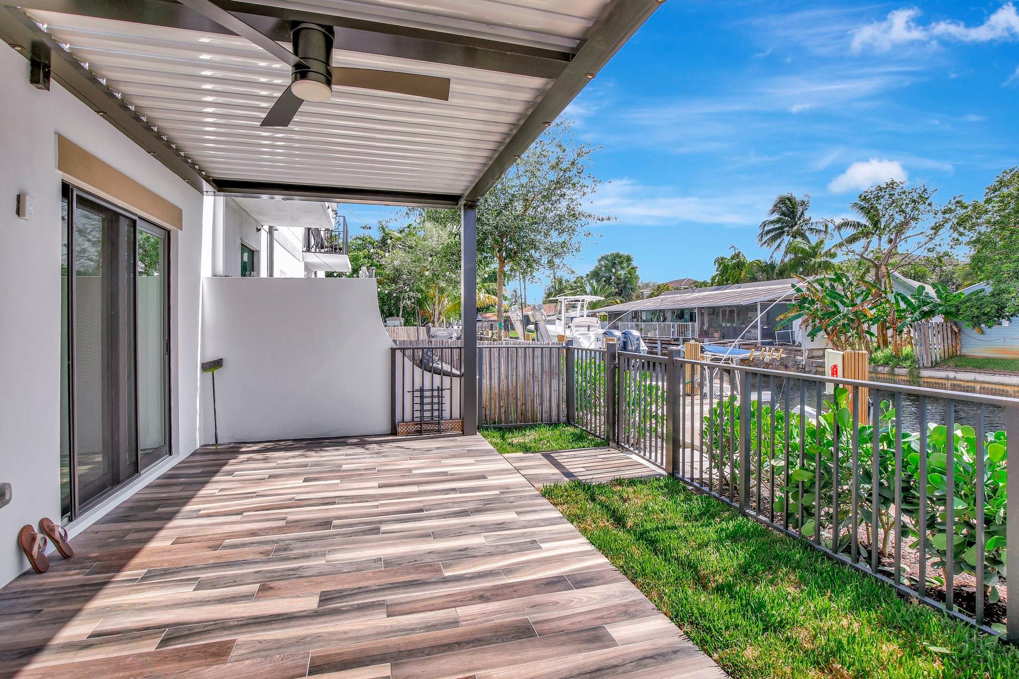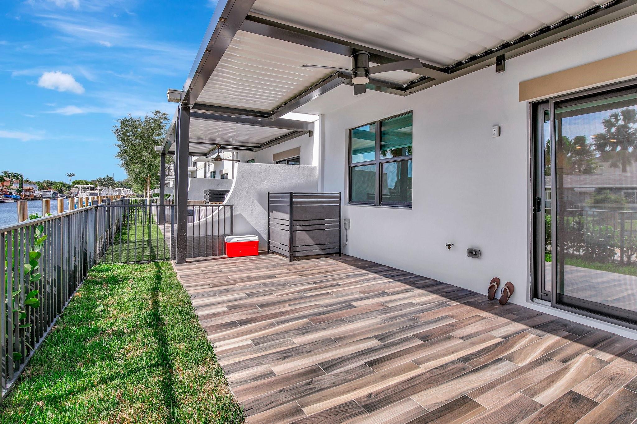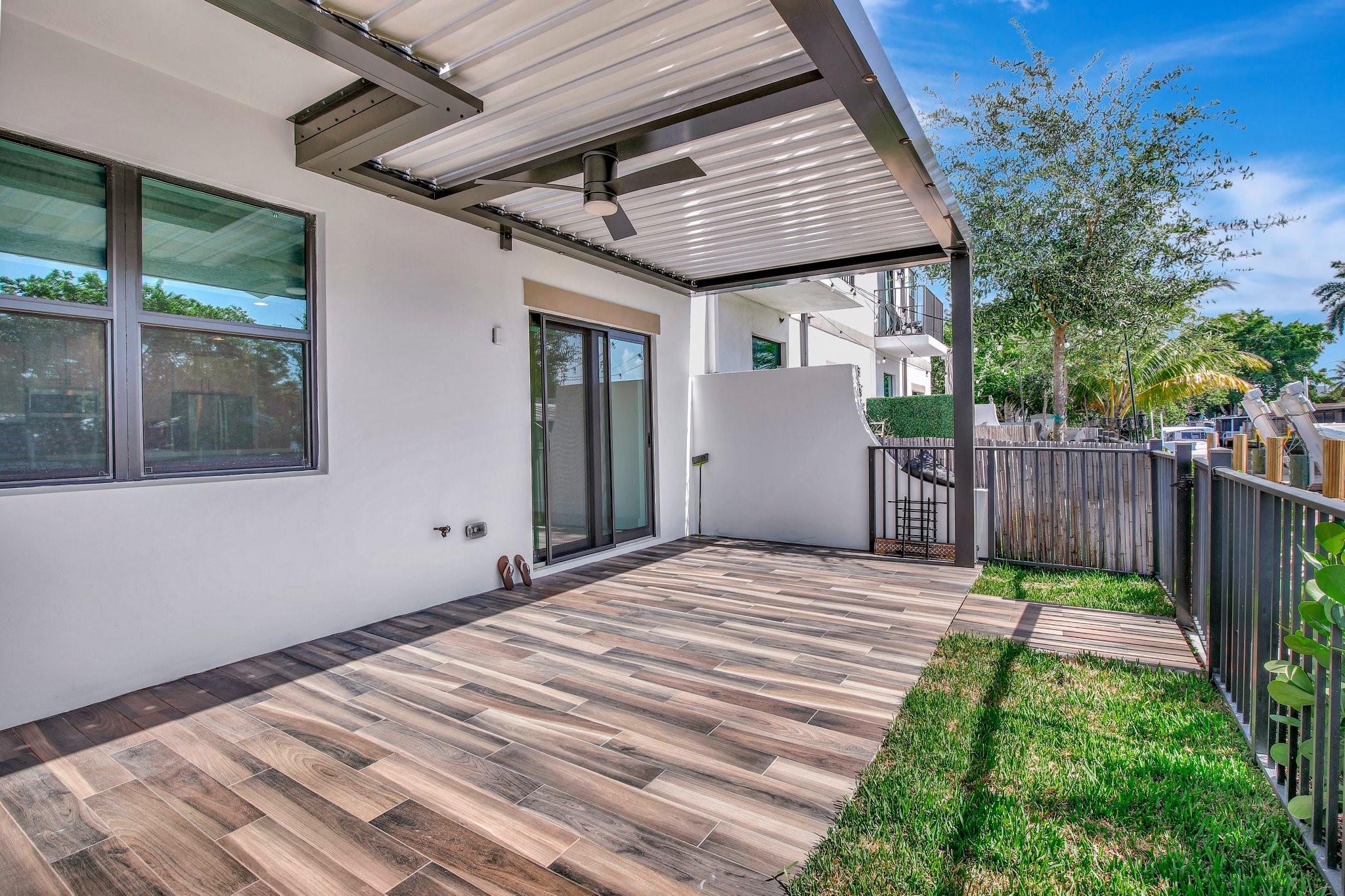 Exceptional and rarely available 3BR/2.5BA fee simple waterfront townhome in Aqua Bella, Dania Beach. Built in 2021 with over $40K in upgrades, including remote-controlled louvered pergola, fenced patio, and custom tile accents. Enjoy direct ocean access from your exclusive-use boat slip with 24' dock (licensed via HOA; not deeded). No fixed bridges—ideal for boaters! Modern kitchen with quartz counters, SS appliances, tile backsplash, and walk-in pantry. Impact windows/doors, wood-look porcelain tile downstairs, and vinyl flooring upstairs. Spacious primary suite with sitting area, canal-view balcony, walk-in closet, and spa bath. Upstairs laundry. Minutes to beach, airport, Dania Pointe, shops, dining & more. HOA includes exterior maintenance & insurance. Move-in ready!