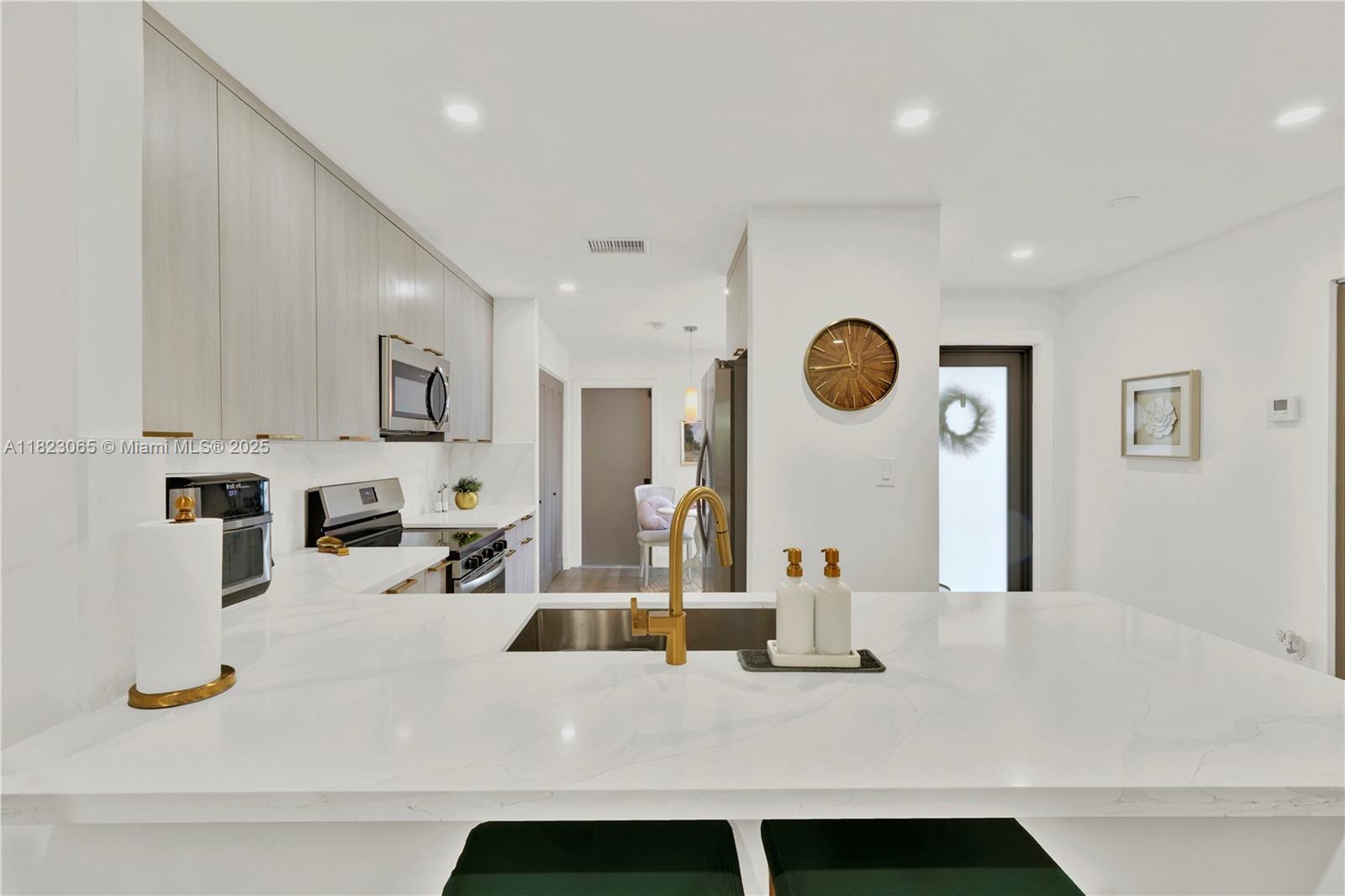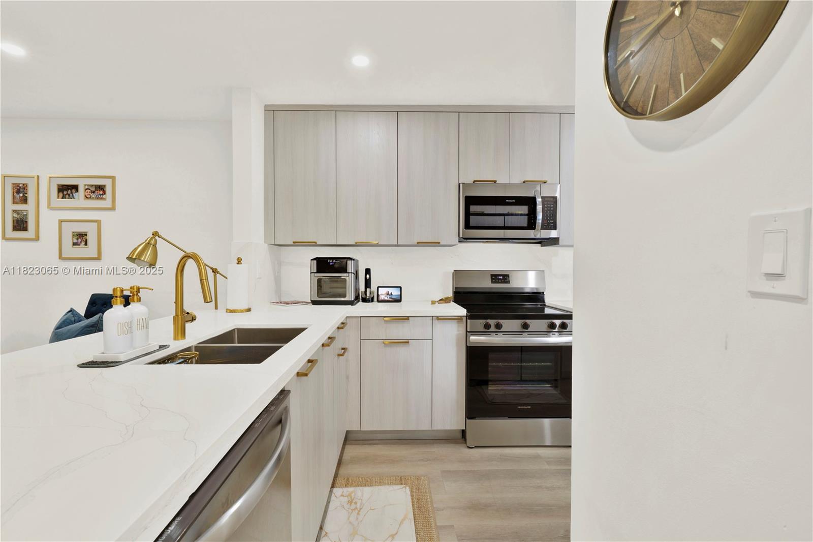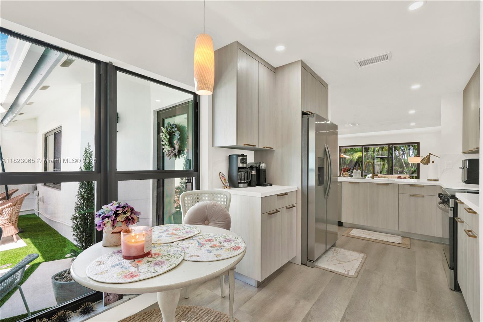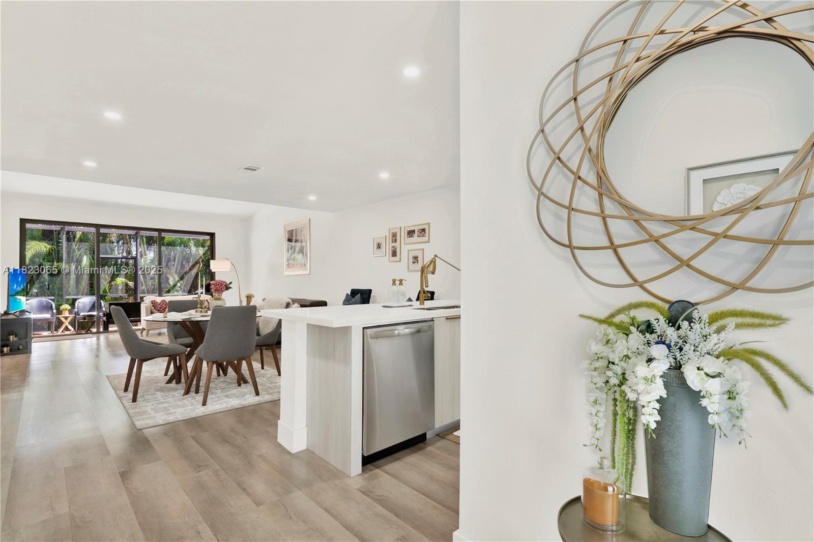 Stunning fully renovated 3-bed, 2-bath townhouse in The Townhouse of Doral Oaks. Features a sleek quartz countertop, stainless steel appliances, modern cabinetry, and a charming French-style breakfast nook. Enjoy custom closets throughout, including a beautiful wood-accent closet wall in the primary bedroom. High-impact windows and sliding doors provide natural light and protection. New roof, remodeled bathrooms, and open living areas with quality finishes. Located in a golf course community with access to Doral Park Country Club amenities: pool, gym, tennis, restaurant, and more. Prime Doral location near top schools, shopping, and dining. Move-in ready!