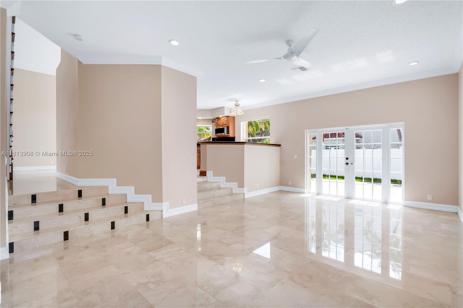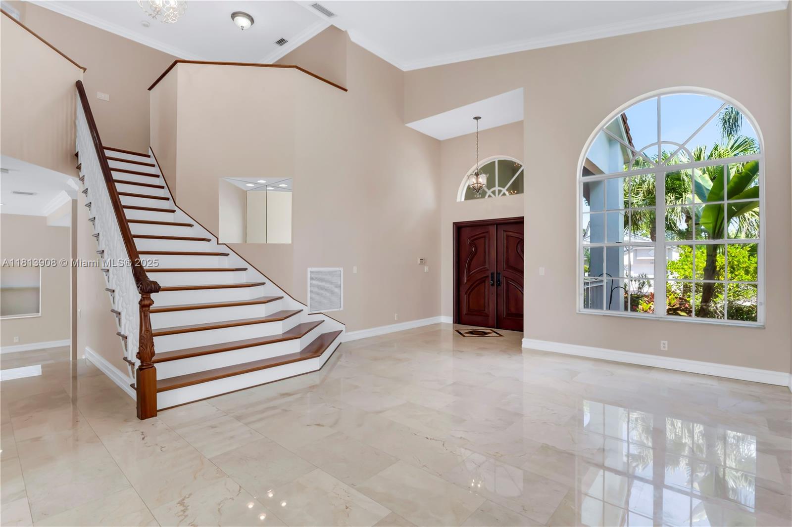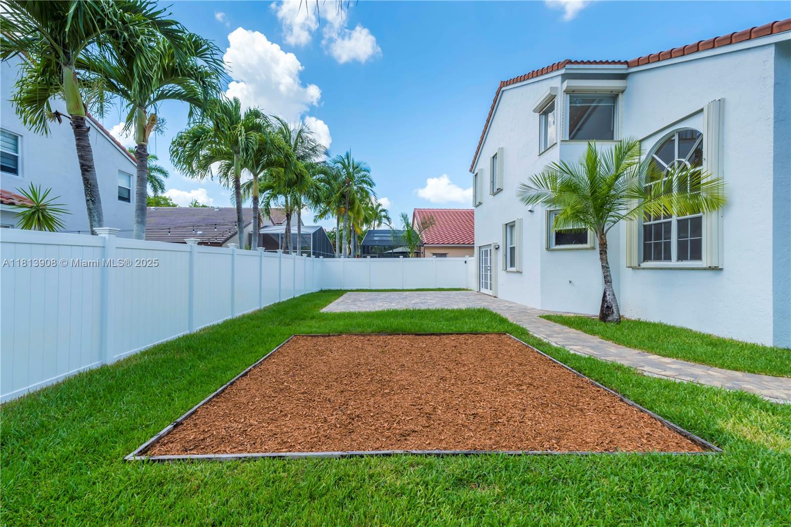 Situated on an oversized corner lot in Chapel Lake Estates, this move-in ready 4-bed, 3-bath home features hurricane-protected windows and doors, soaring 12-ft vaulted ceilings, and marble flooring throughout the first floor. The interior showcases a mahogany staircase with wood flooring, an open floor plan, and abundant natural light. The kitchen includes stainless steel appliances, walk-in pantry, and breakfast nook. The spacious primary suite offers a spa bathroom with jetted tub, dual vanities, and custom walk-in closet. A full downstairs bath with backyard access perfect for a future pool. Enjoy PVC fencing, resurfaced pavers, newer roof, and accordion shutters. Low HOA includes cable, internet, and irrigation. Zoned for A-rated schools near parks, trails, and dog parks.