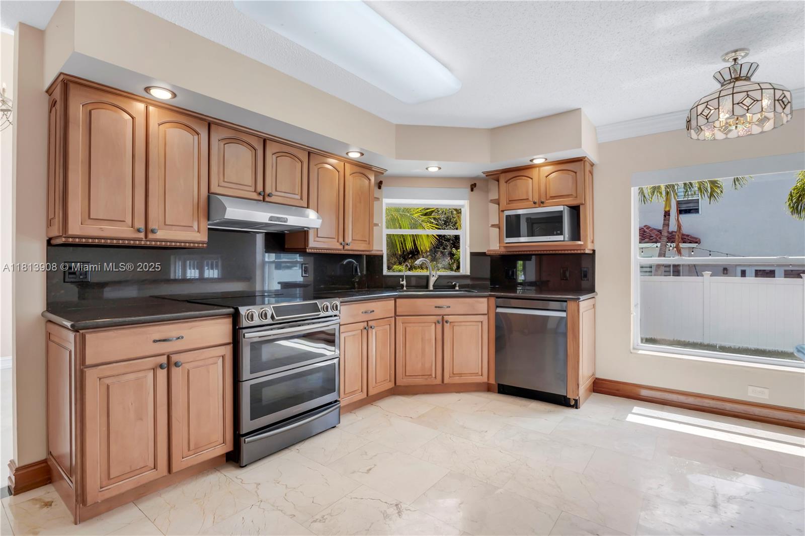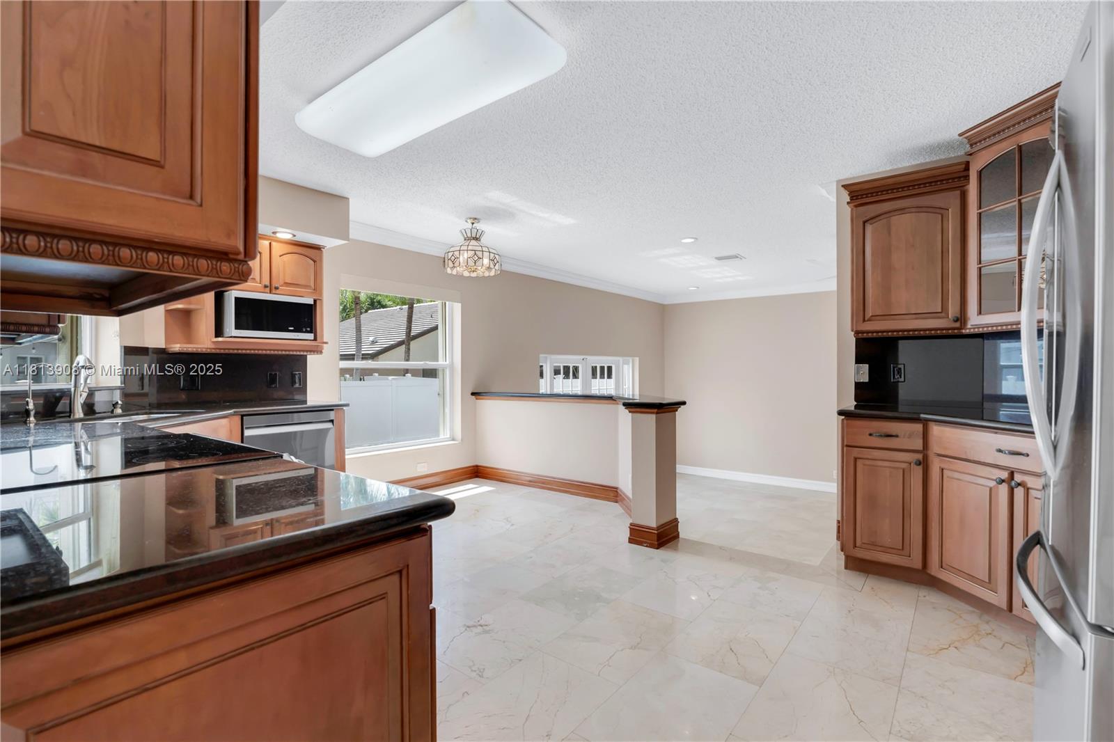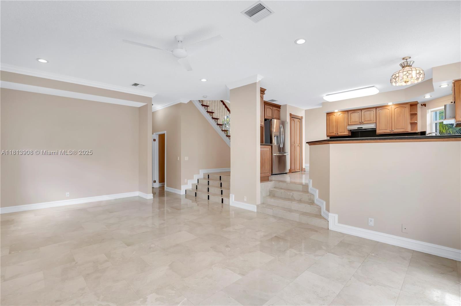 Situated on an oversized corner lot in Chapel Lake Estates, this move-in ready 4-bed, 3-bath home features hurricane-protected windows and doors, soaring 12-ft vaulted ceilings, and marble flooring throughout the first floor. The interior showcases a mahogany staircase with wood flooring, an open floor plan, and abundant natural light. The kitchen includes stainless steel appliances, walk-in pantry, and breakfast nook. The spacious primary suite offers a spa bathroom with jetted tub, dual vanities, and custom walk-in closet. A full downstairs bath with backyard access perfect for a future pool. Enjoy PVC fencing, resurfaced pavers, newer roof, and accordion shutters. Low HOA includes cable, internet, and irrigation. Zoned for A-rated schools near parks, trails, and dog parks.