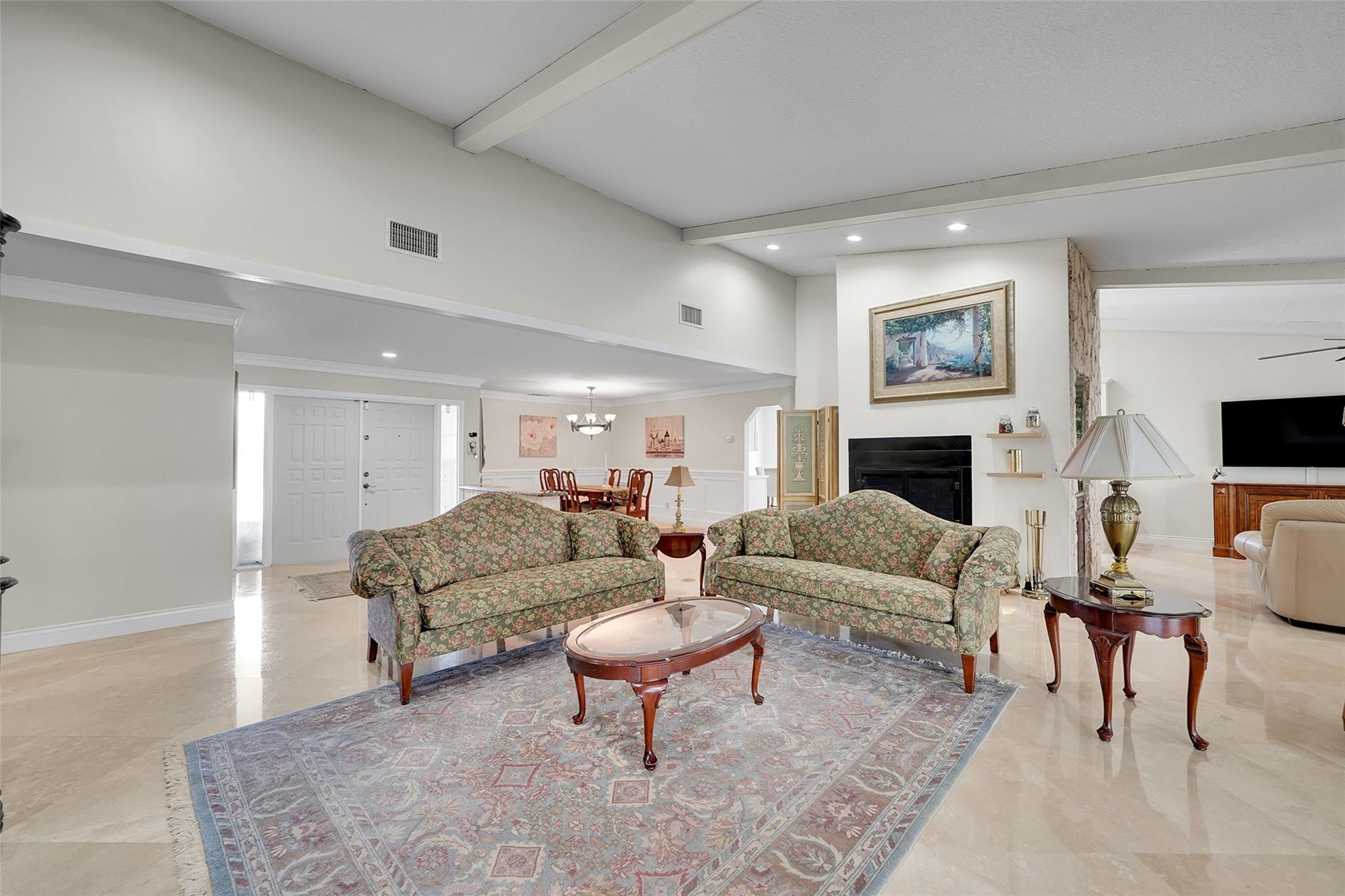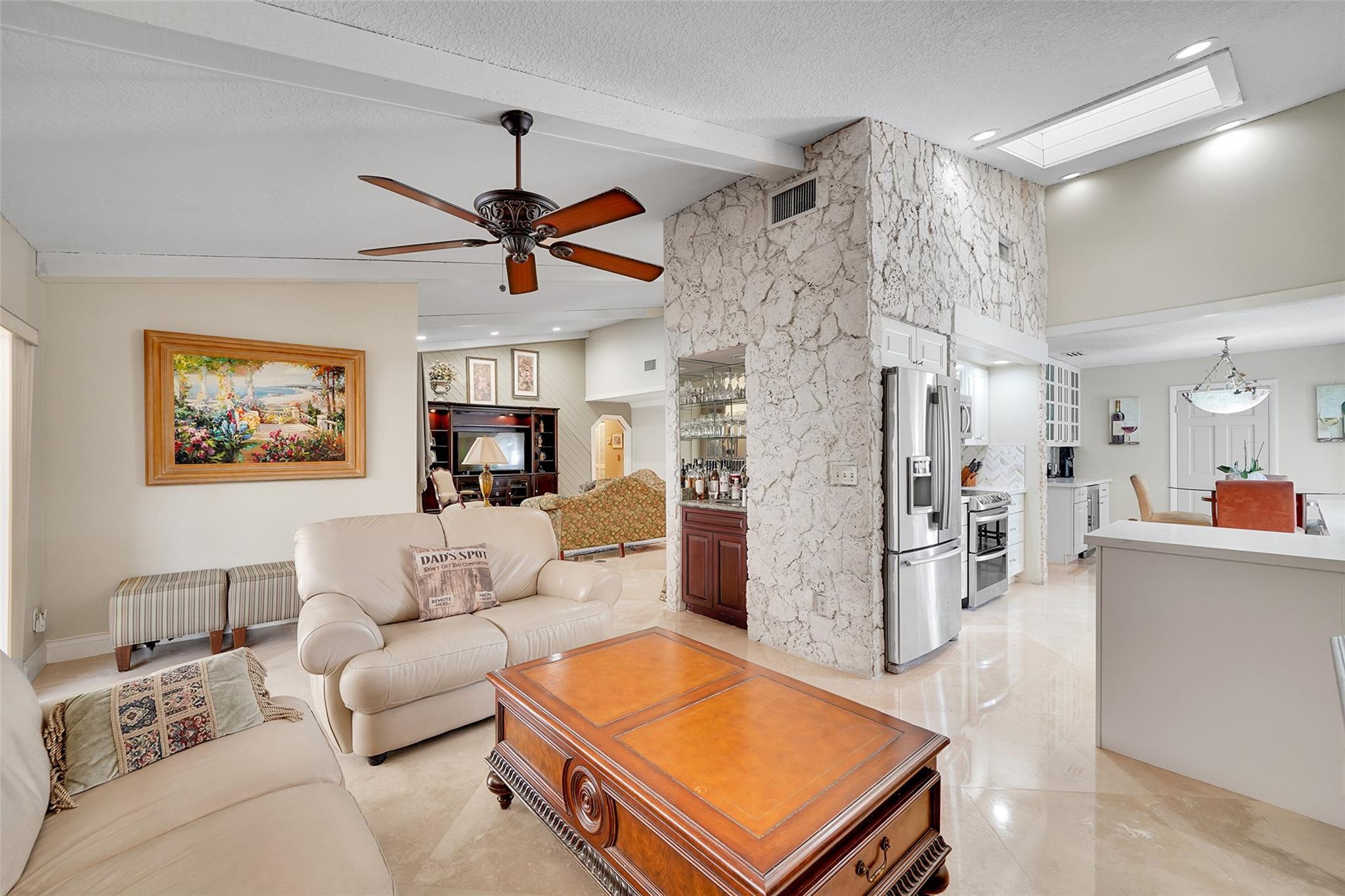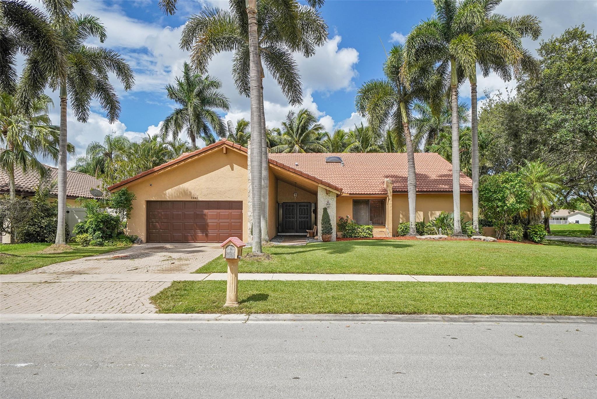 Run to this beautiful gem in the newer section of Jacaranda Lakes. This home is located on a corner lot with gorgeous lake views. It features a newly renovated kitchen with quartz countertops, newer appliances, a dual zone wine color for both red and white wines, travertine marble floors, hurricane protected skylights in the kitchen and bathrooms, newer fireplace, custom wood panels in dining room, Plantation shutters in kitchen, garage tech with cabinets, tiki hut, inground pool within waterfall decent and fiber optic lighting that changes color, artificial grass, and more. Hurry this amazing home has it all! Recently price improved to recent sale comps...