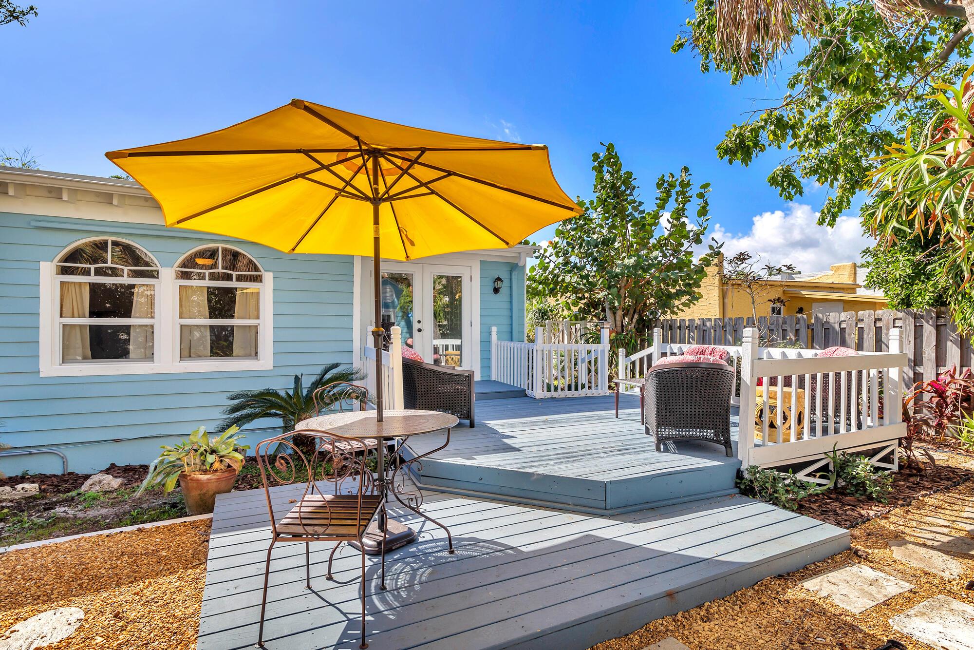 Island style at an amazing price in the south end! This Key West cottage has a British Colonial flair for easy, breezy tropical living. Gleaming original hardwood floors, graceful arches and more give this home that Old Florida 1930s charm. It has an open kitchen and a full-sized washer and gas dryer. The property has a gas tankless water heater for energy efficiency. There is an elegant front gate as well as a lovely gate to the backyard. A spacious rear deck overlooks the backyard which is complete with a finished and air-conditioned cabana that would make a great home office. The neighborhoods south of downtown are some of the most sought-after real estate around right now and this home represents an opportunity to get east of Dixie at a reasonable price.