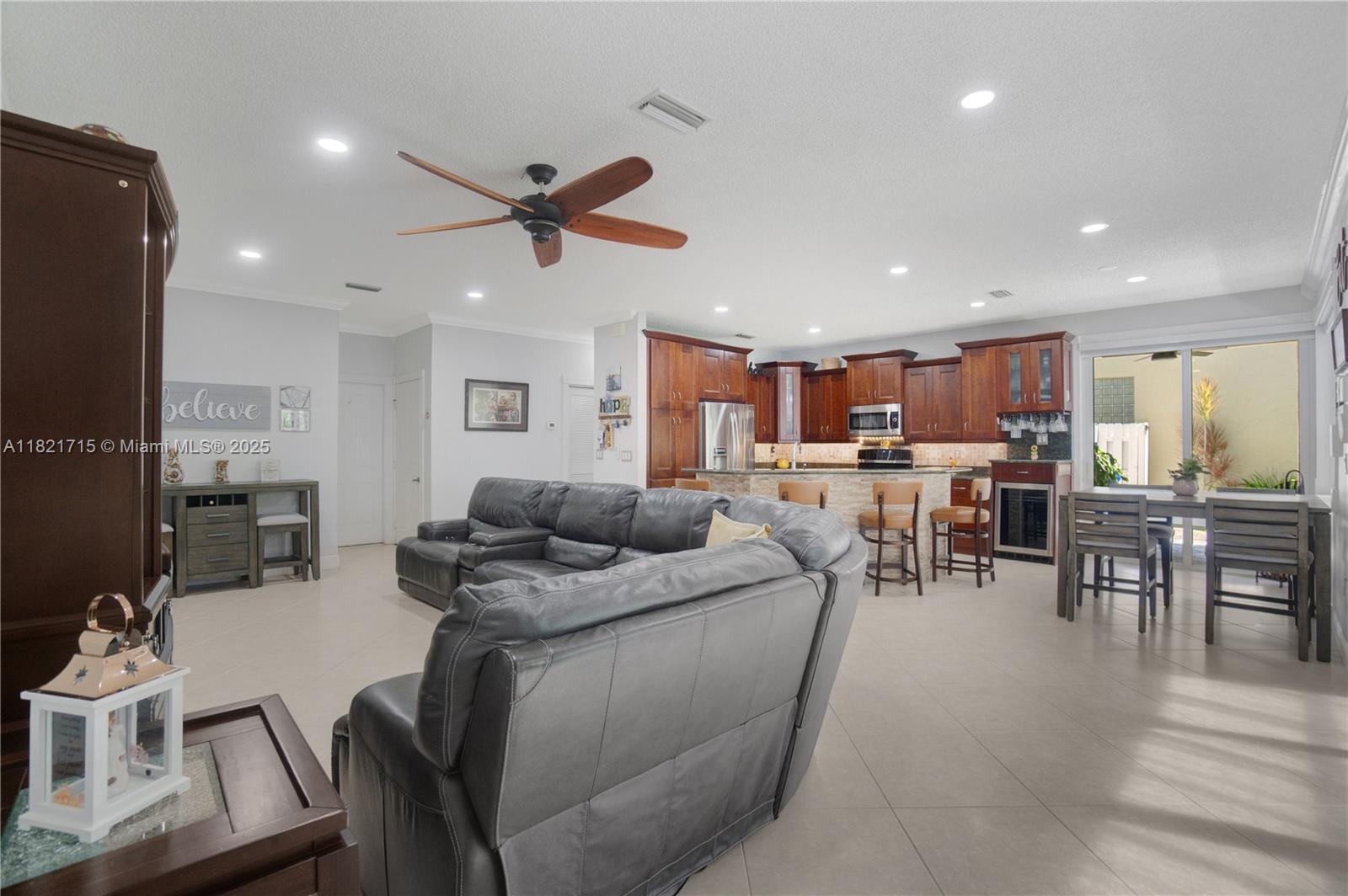 Stunning 4 BD/ 2.5 BA, live in luxury with 2880 sqft under AC. New Impact windows and doors. Outdoor Oasis, grand pergola with a custom-made bar perfect for entertainment. Magnificent high ceilings with chandeliers, gourmet kitchen with wood cabinets, SS appliances, wine fridge and open layout to a massive family room. Primary suite retreat features seating area, generous walk-in closet, dual vanities in beautifully renovated bath. Engineered wood floors upstairs, tile downstairs. Prime location! Classic Landings, a gated community with easy access to I-75, Pines Blvd, Shops of Pembroke Gardens. Great schools. Community Park, tennis, soccer, basketball, baseball! HOA includes internet, cable and 4 community pools and tot lots. Style, Space & Comfort. Second floor made of concrete