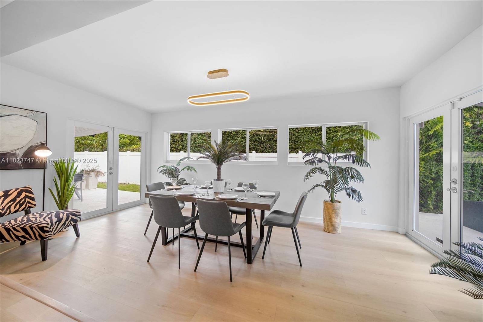 MUST SEE! If you're looking for one of the largest Biscayne Park 4-bedroom pool homes available, check this out (Bitcoin accepted)! Beautifully updated 4 bed-3.5 bath midcentury pool home ~3,000 SF of interiors on a large 11,585 SF lot. Great open flow plan, three living areas, dining room, and eat-in open island kitchen, plush multiple lush entertainment gardens. Four spacious bedrooms (two ensuites) including primary with majestic spa-like double-vanity bath, freestanding tub, and a massive shower with 16 power jets and dual rainfall shower heads. Great features: impact windows-doors, private powder room, huge 20’x40’ pool, multiple patios, mini golf, and outdoor moonlight movie screen. You’ll feel like you’re living in “paradise” in this dreamy Biscayne Park tropical resort-style home!