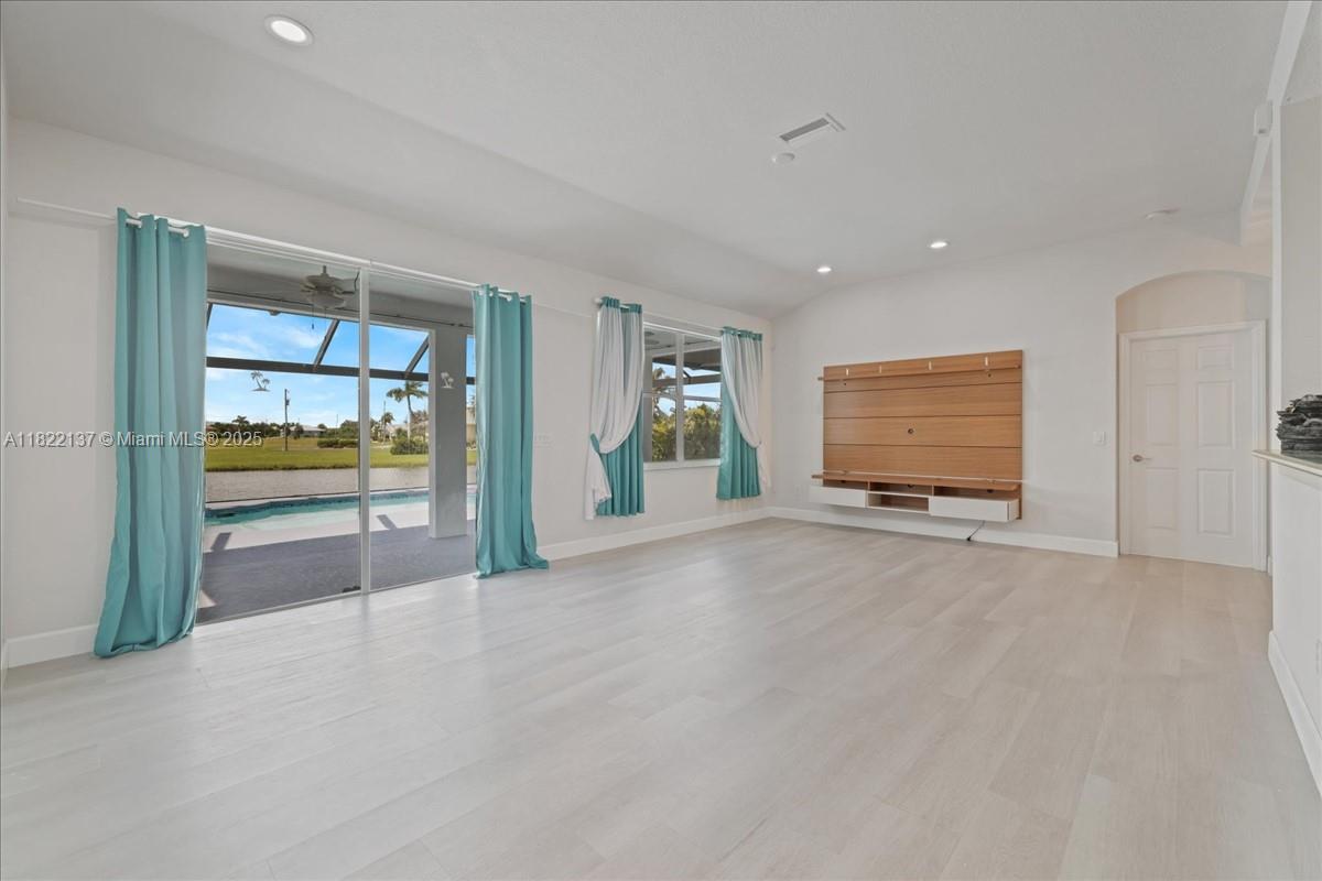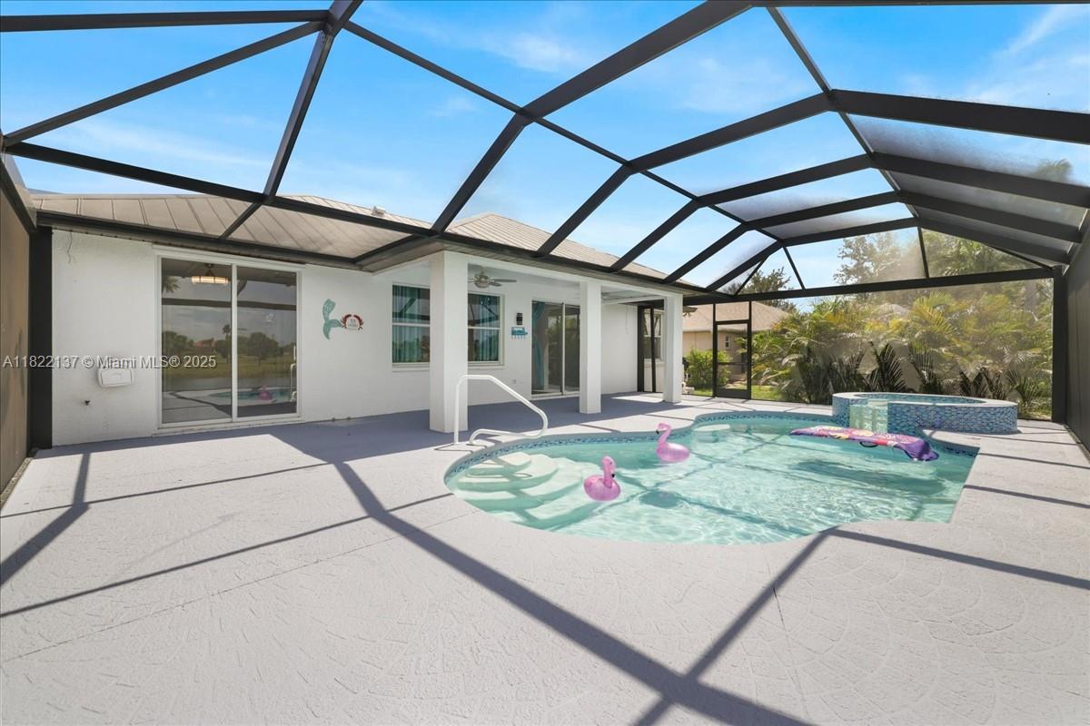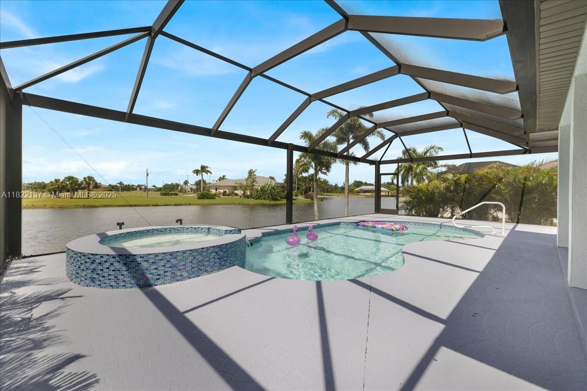 New Granite Countertops throughout! This lakefront gem offers stunning views from the living room, lanai, owner’s suite, & guest room. Enjoy a pool, spa, & a metal roof with a recent 4-point & wind mitigation report. Life-proof luxury vinyl flooring in the living room, kitchen, & owner’s suite. Relax on the covered lanai with serene wildlife views. The sprinkler system draws from the lake. The owner’s suite features sliders to the pool & a beautifully upgraded bath with a tiled walk-in shower and double sinks. Golf cart to Burnt Store Marina for dining, or enjoy the nearby park & 27-hole golf course. Upgrades: Granite Countertops 2025, Dishwasher 2022 , A/C 2022, flooring 2024, pool resurfacing/tile, & full interior/exterior paint 2022. Watch the virtual tour!