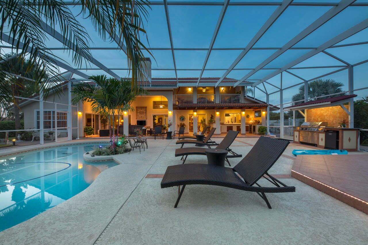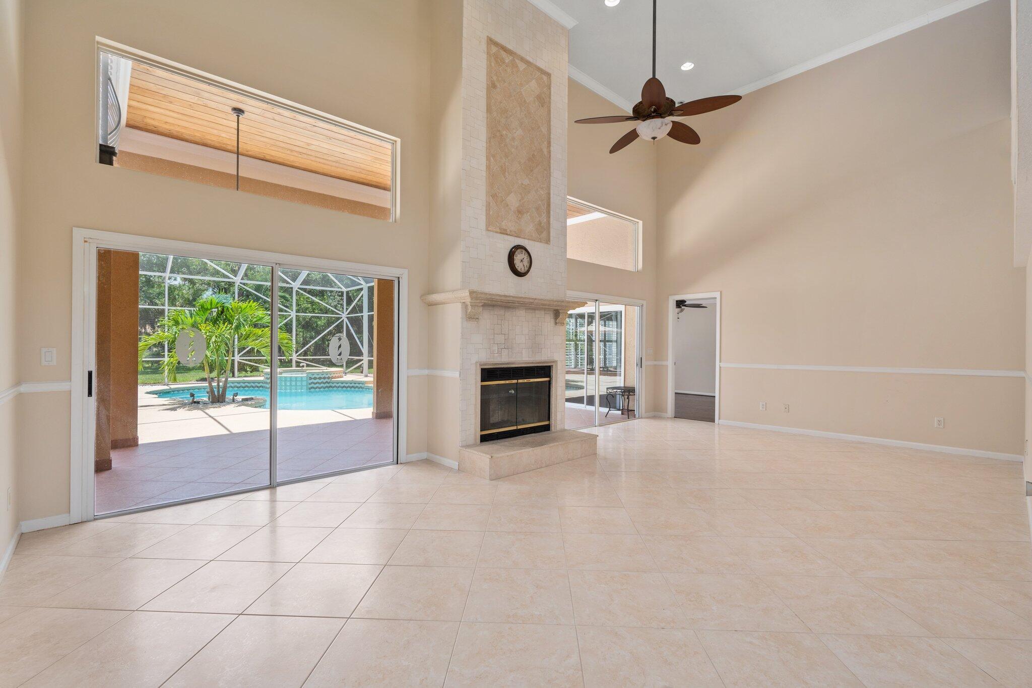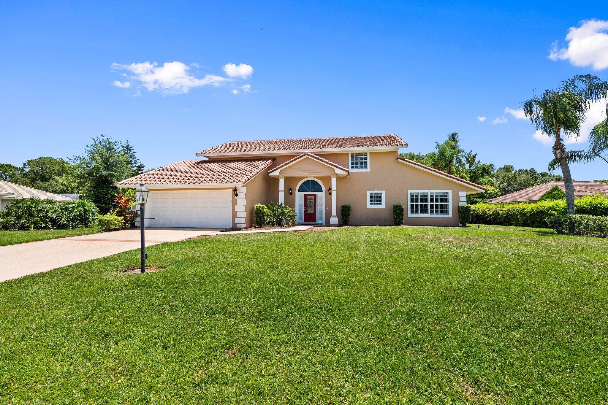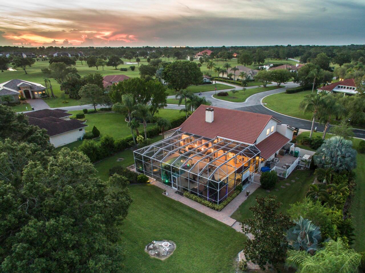 Tucked away on a serene half acre canal front homesite inside Meadowood's guard gated Golf and Country Club, this custom 3 bed, 3 bath home is moments from Vero Beach, Hutchinson Island, and key travel routes. Step inside into an expansive great room where soaring two story ceilings, a striking catwalk landing, and real fireplace create an inviting focal point. Formal dining framed by plantation shutters flows easily into the kitchen, outfitted with granite counters, stainless appliances, a double oven, center island cooktop, and a convenient pass through to the lanai. Whole-house generator (2018), an insulated attic, fresh interior paint, new roof (2023), new A/C (2023), and (2019) water heater. Ample storage and well-placed closets throughout the home provides extra organization. Two