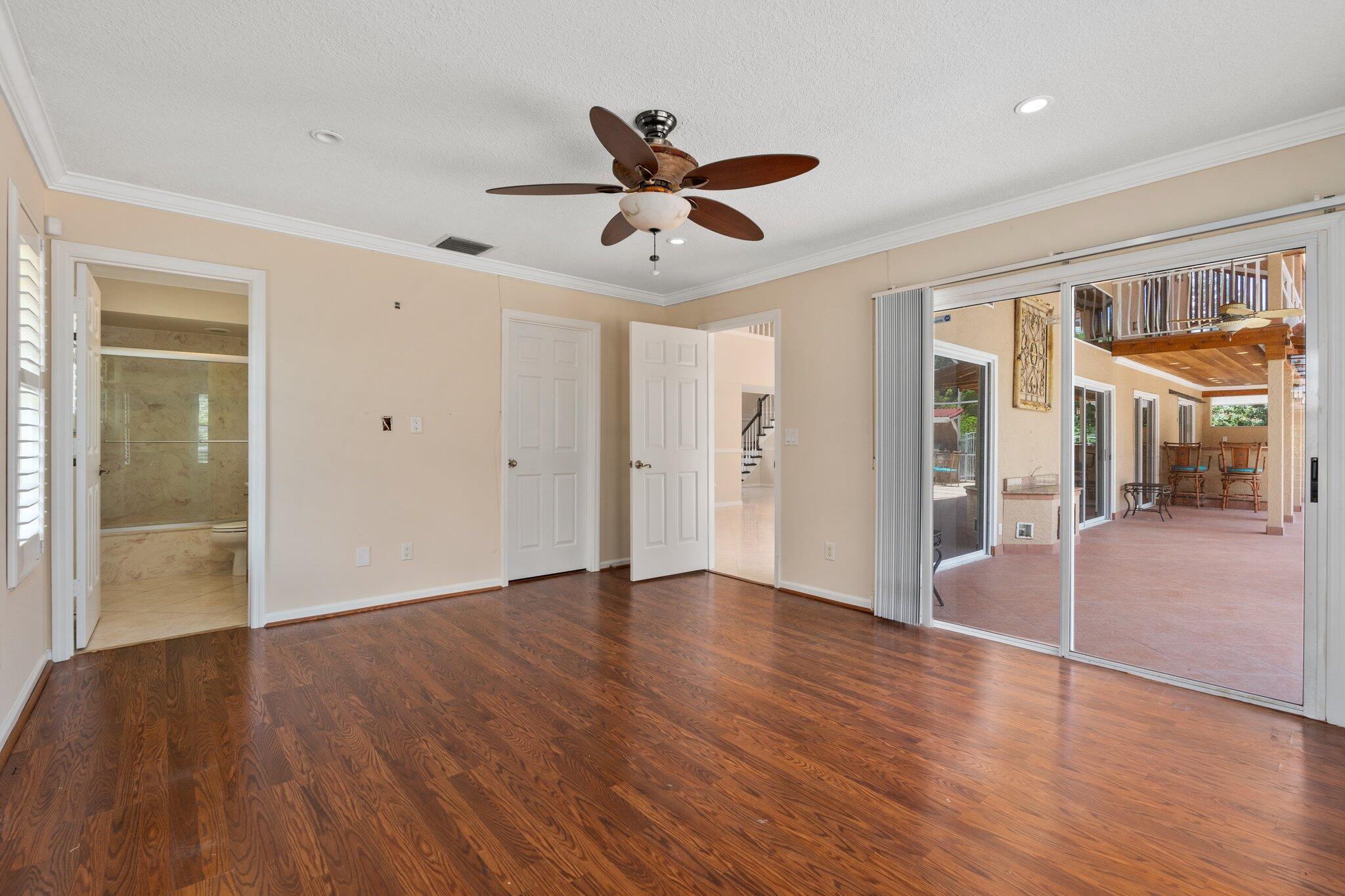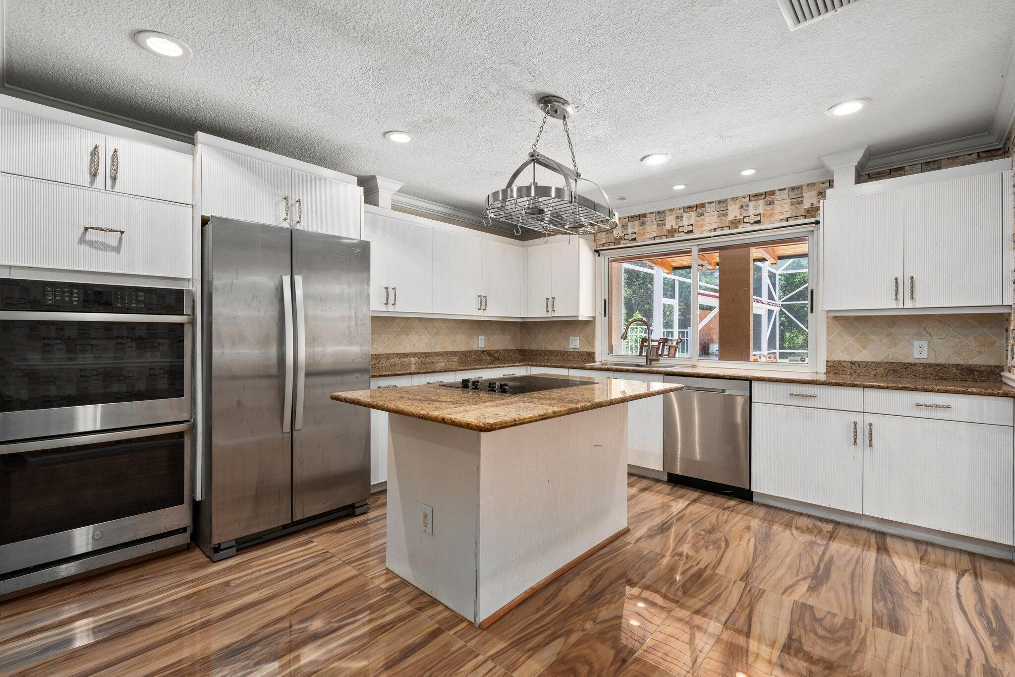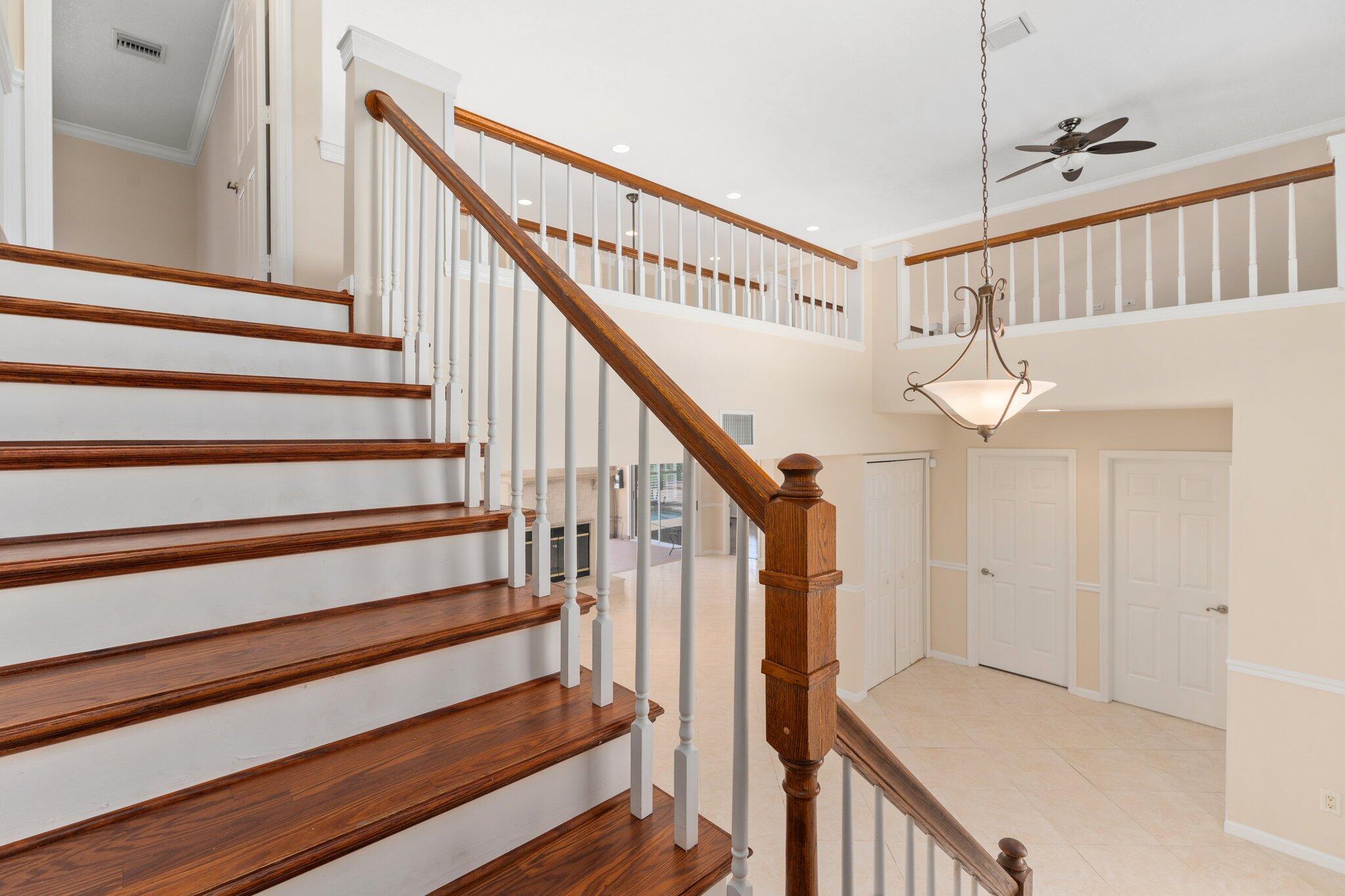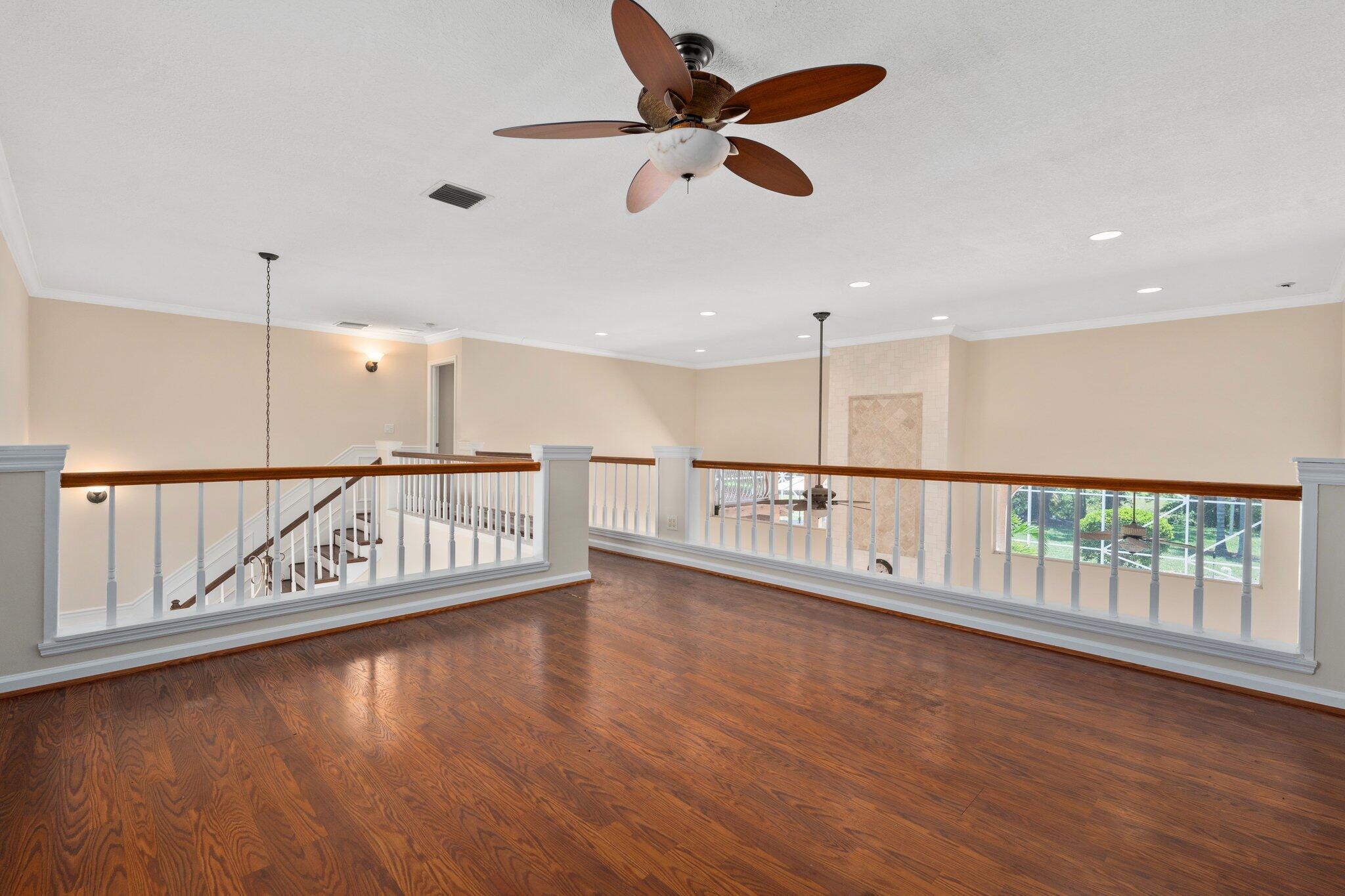 Tucked away on a serene half acre canal front homesite inside Meadowood's guard gated Golf and Country Club, this custom 3 bed, 3 bath home is moments from Vero Beach, Hutchinson Island, and key travel routes. Step inside into an expansive great room where soaring two story ceilings, a striking catwalk landing, and real fireplace create an inviting focal point. Formal dining framed by plantation shutters flows easily into the kitchen, outfitted with granite counters, stainless appliances, a double oven, center island cooktop, and a convenient pass through to the lanai. Whole-house generator (2018), an insulated attic, fresh interior paint, new roof (2023), new A/C (2023), and (2019) water heater. Ample storage and well-placed closets throughout the home provides extra organization. Two