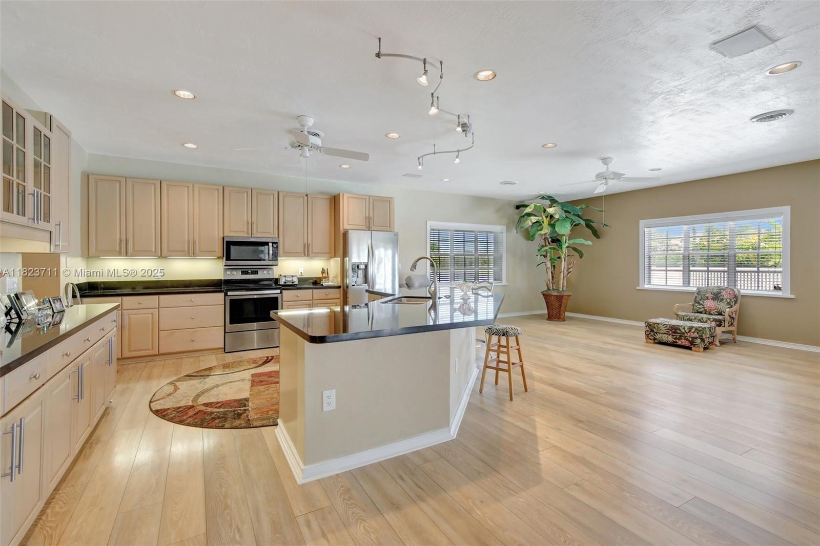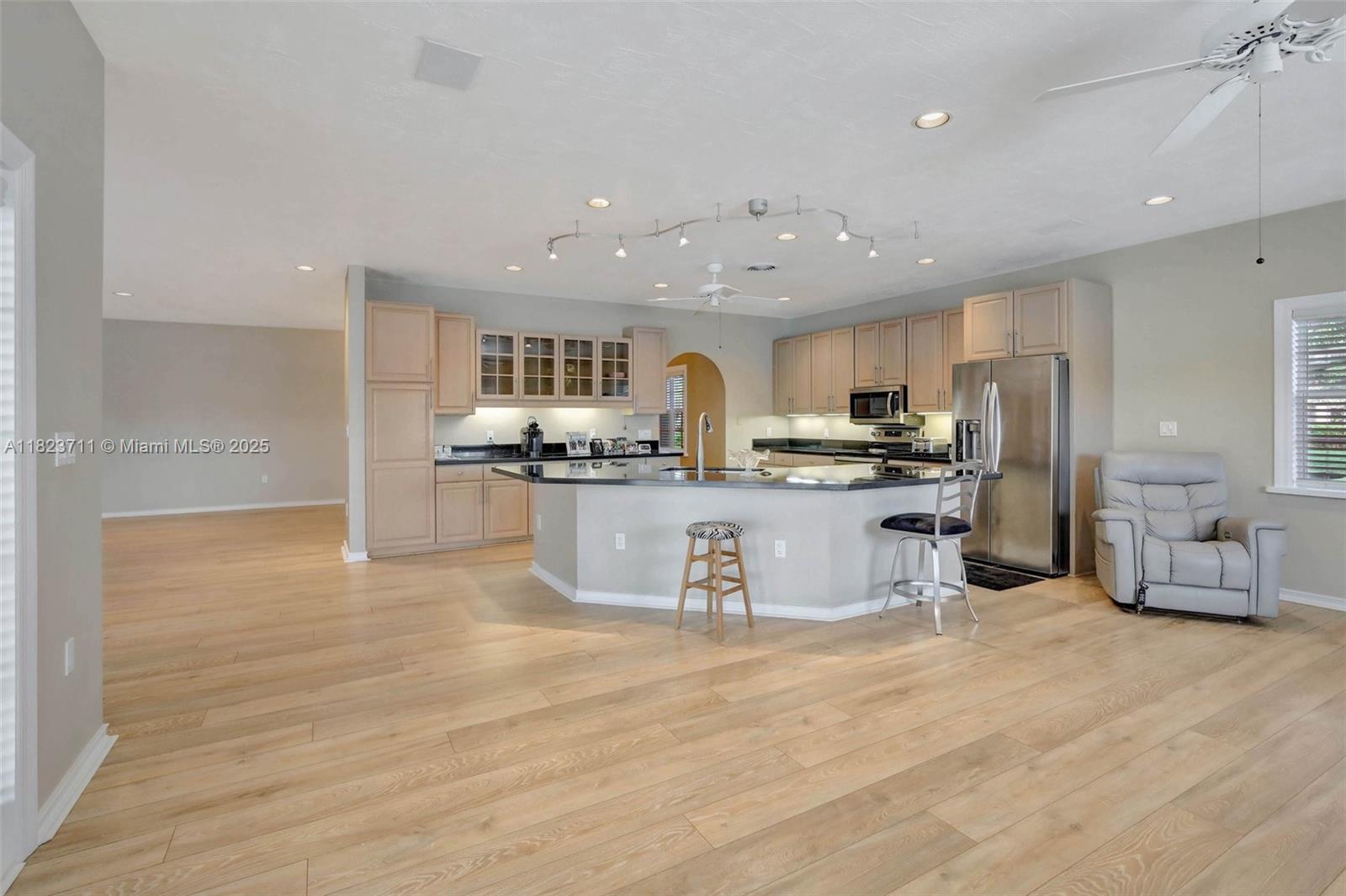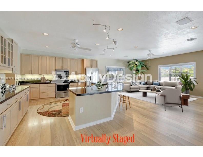 Welcome to this beautiful lakefront property located in the highly desired Trails of Pembroke Pines. This property features expansive lake views throughout the entire South side of the 37,634 sqft lot. The property features a fantastic open layout including 3 bedrooms, 2 bathrooms and tons of seamless living space through the dining room, family room and kitchen for the entire family to enjoy. The screened-in patio leads to the beautiful pool area with plenty of room for entertaining alongside the breathtaking 180 degree lake view. Additional features include a 1,000 sqft 3 car garage with oversized commercial doors and 10.5 ft ceilings, separate laundry room, a huge concrete driveway and plenty of space for all of your toys or hobbies. Limited livestock can also be kept on the property.