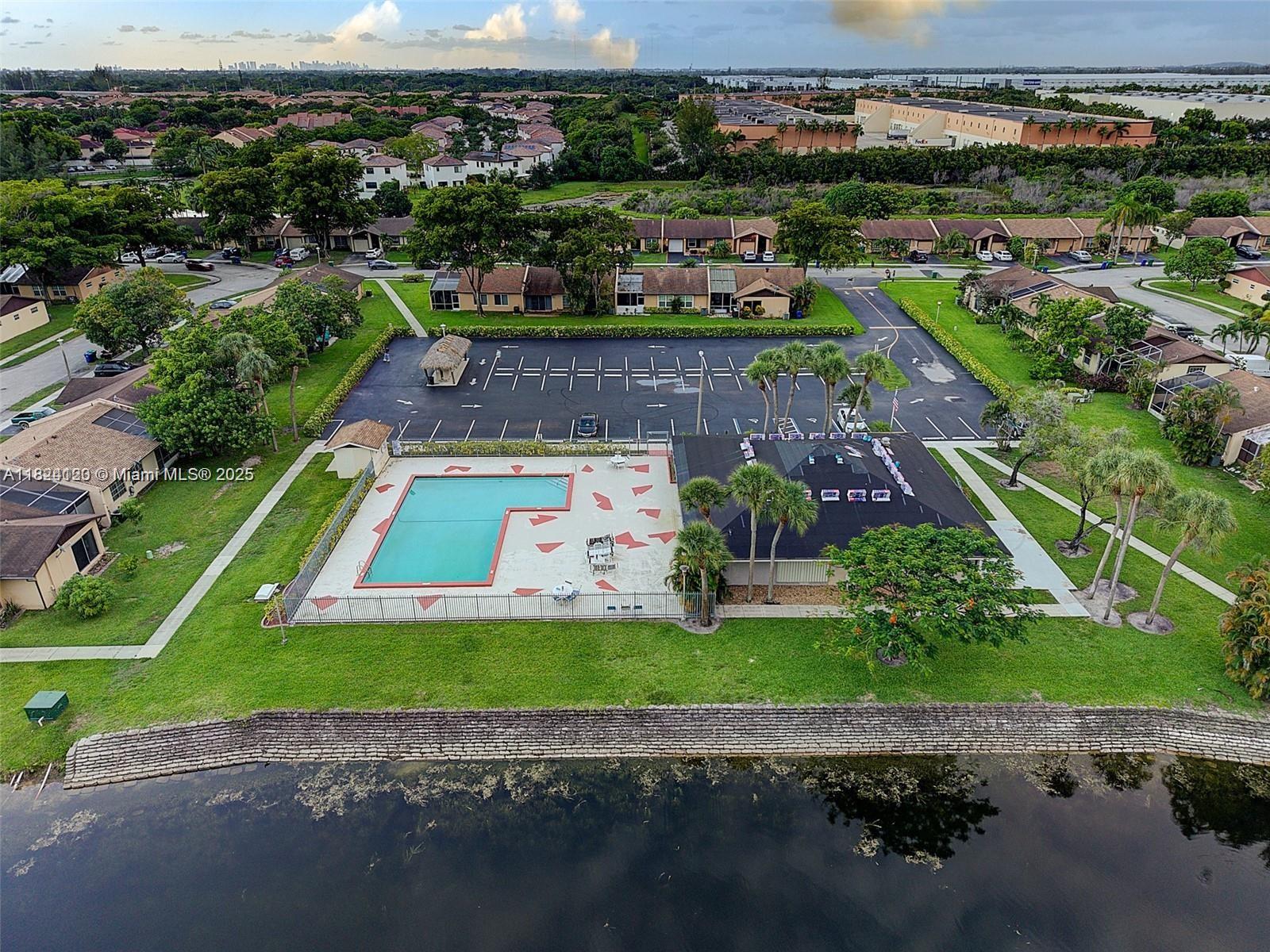 One-story level Single-Family Home in a Lakefront Villa – Move-in Ready & Packed with Upgrades! Discover the perfect blend of comfort, style, and waterfront serenity in The Meadows of Miramar. This bright and airy 2-bedroom, 2-bath home has been thoughtfully upgraded with hurricane-impact-resistant windows and doors, plus an aluminum-covered patio terrace with a built-in pull-down 120" movie screen. In 2022, a new high-efficiency hybrid heat pump was installed, and all piping was replaced. nestled in a quiet, friendly community with a very low HOA, this home delivers the perfect balance of tranquility and neighborly independence. With a backyard that waits for you to arrive, unwind by the water and embrace the charm of lakeside living Home, ideal for intimate gatherings & family fun.